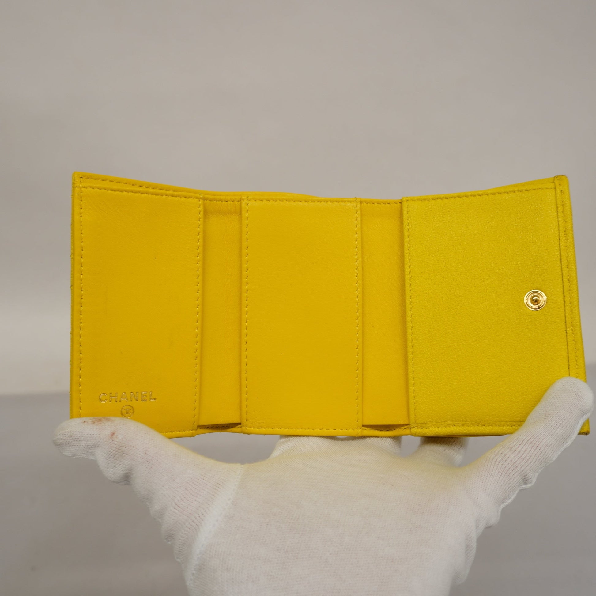 ChanelAuth Boy Tri-fold Wallet Boy V Stitch Gold Hardware Women's