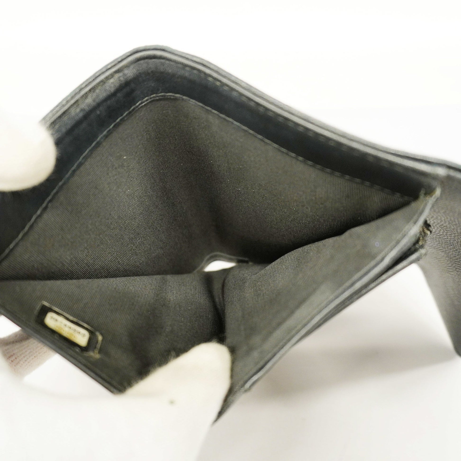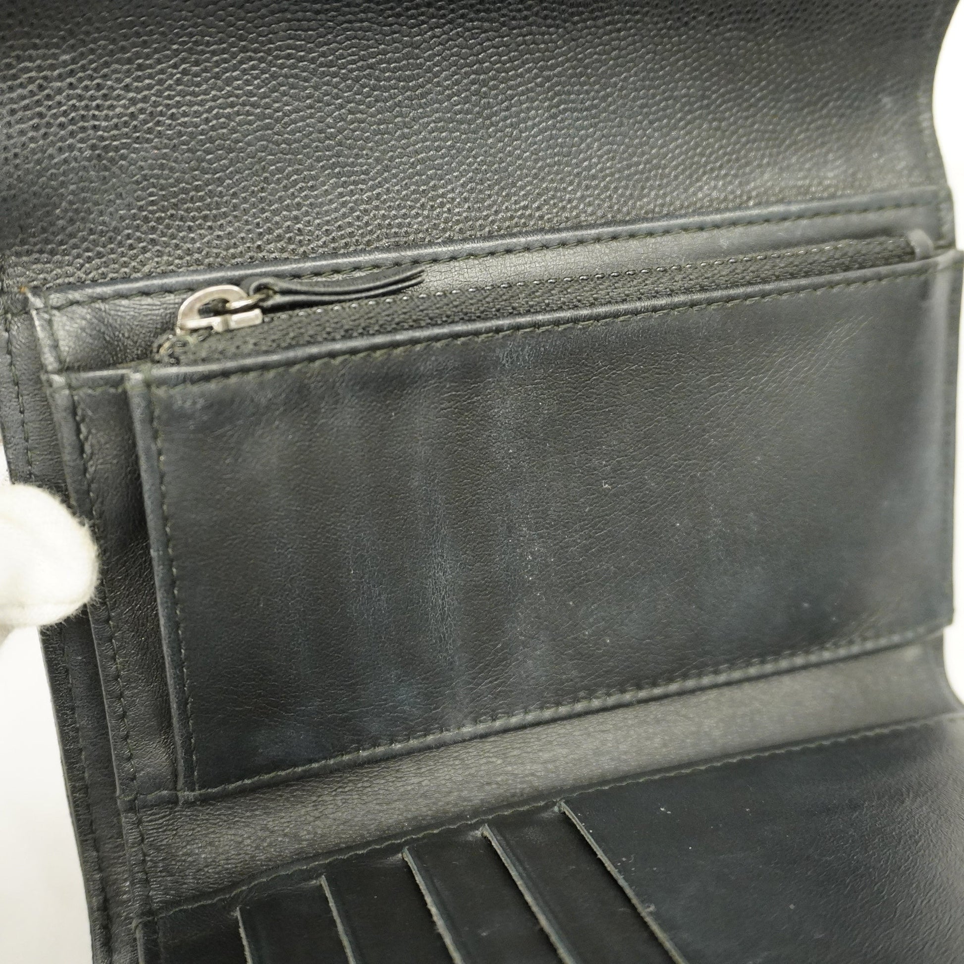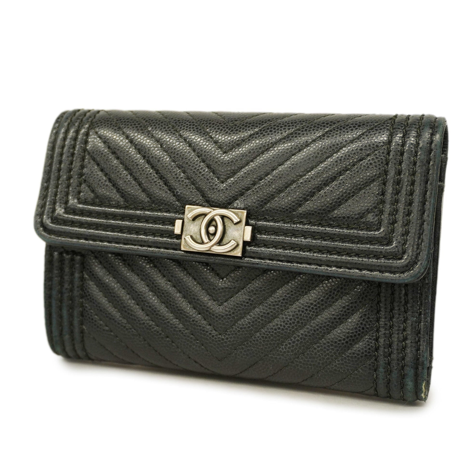 ChanelAuth Boy Tri-fold Wallet Silver Metal Fittings Women's Caviar