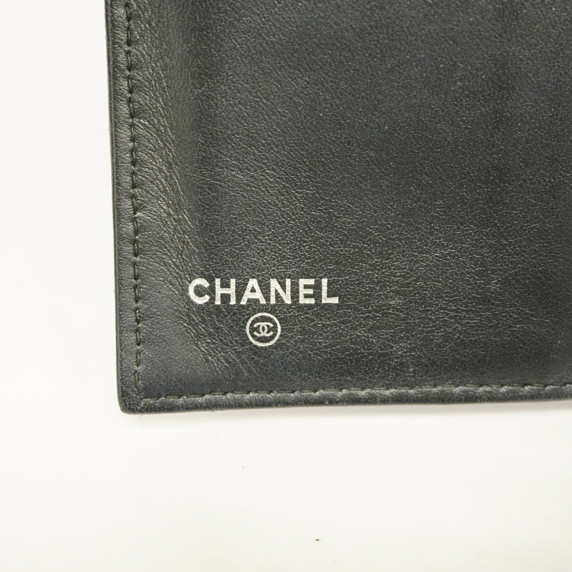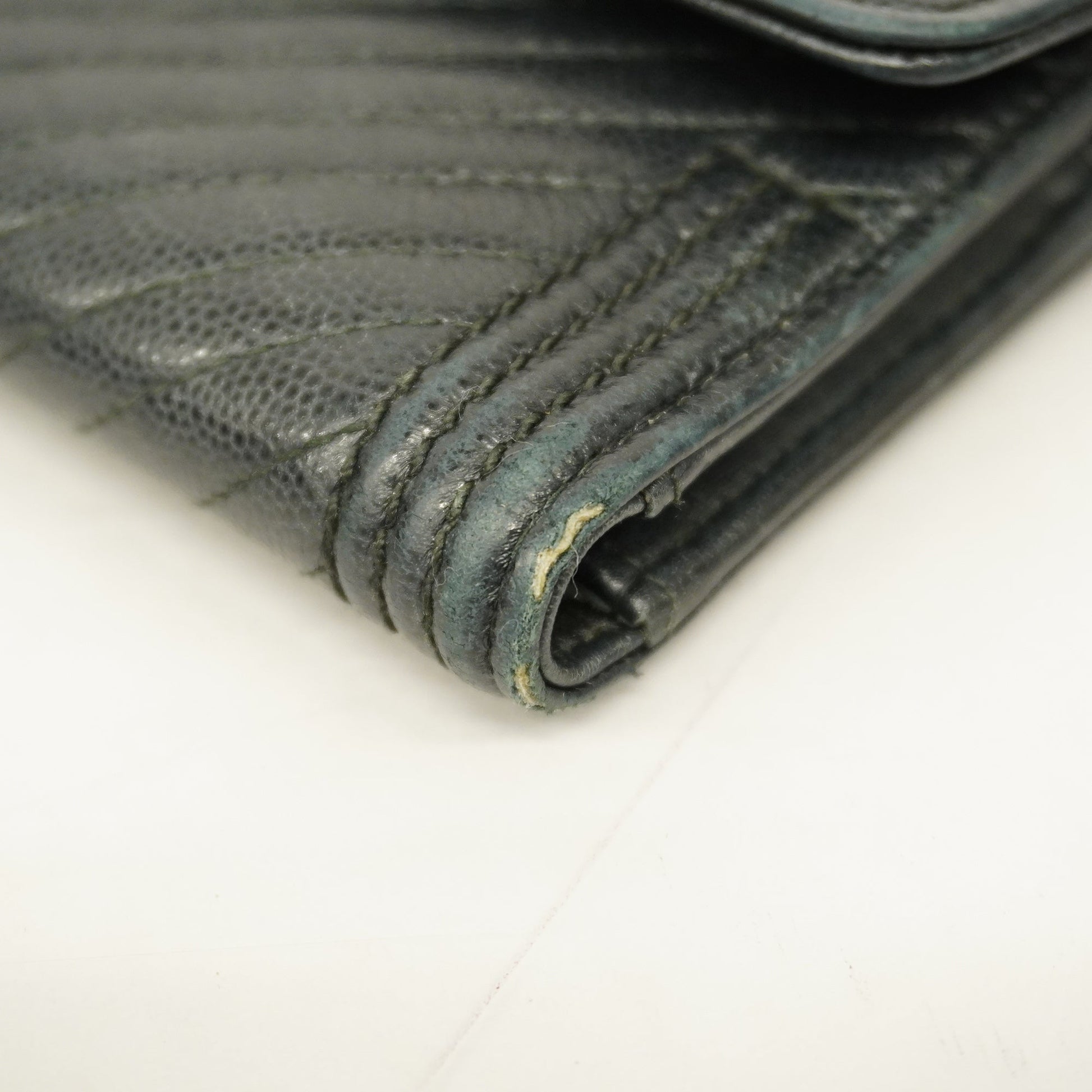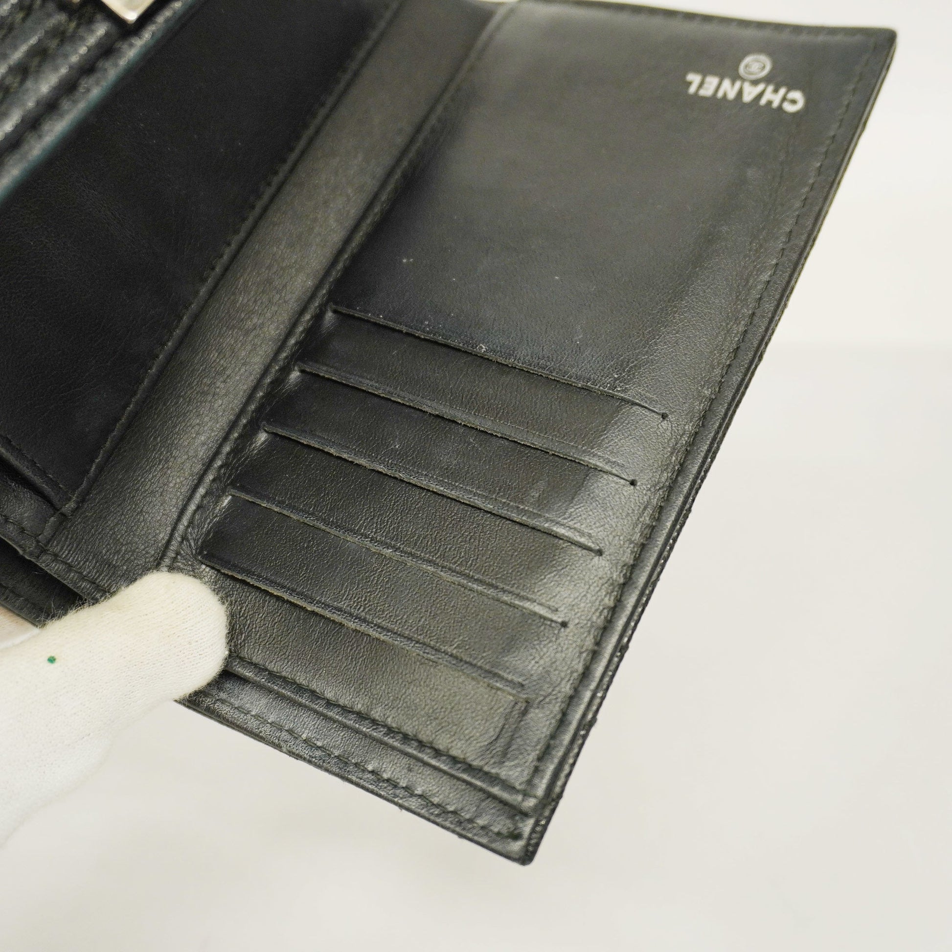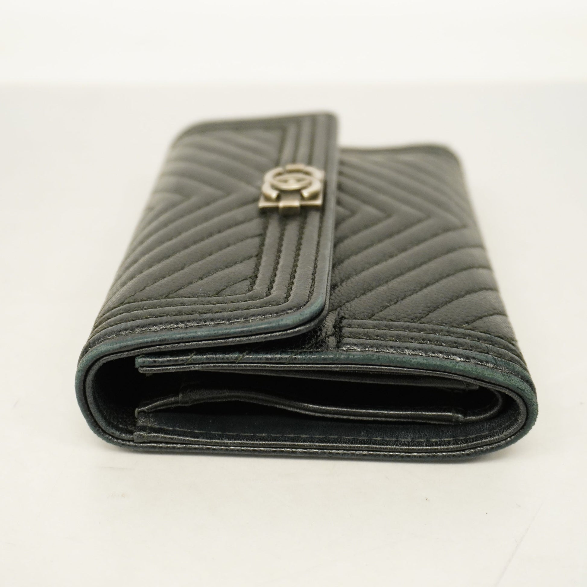 ChanelAuth Boy Tri-fold Wallet Silver Metal Fittings Women's Caviar