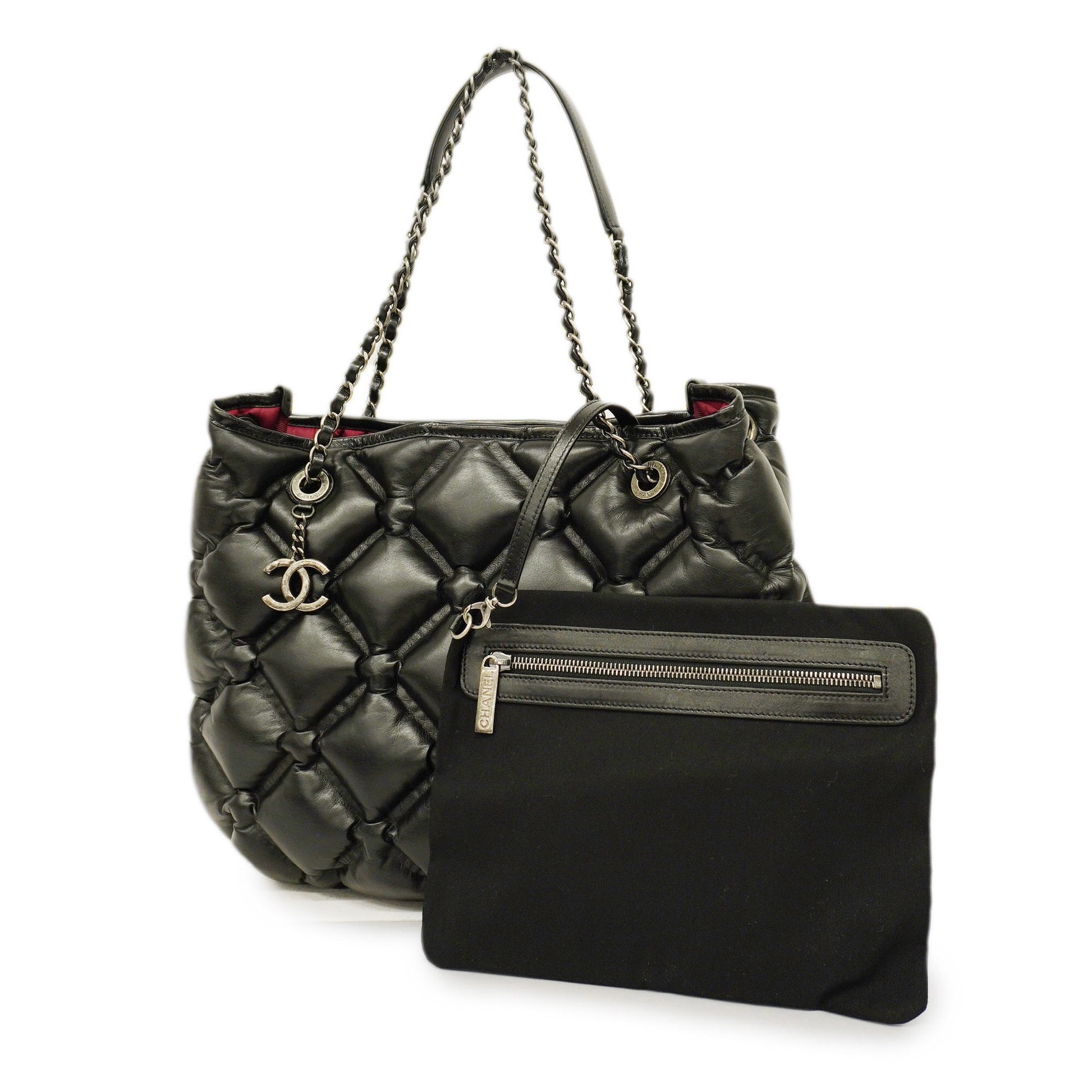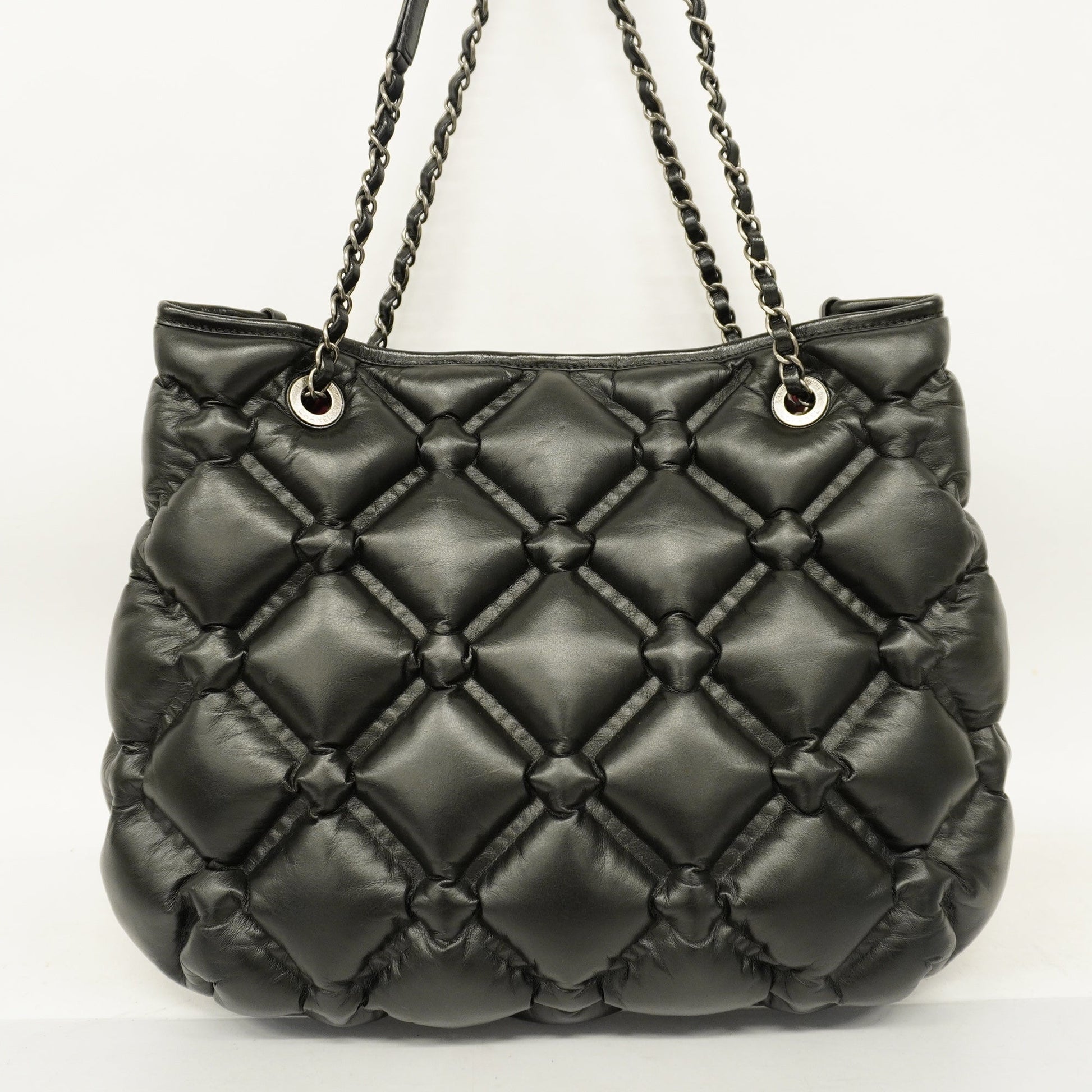 Auth Chanel Bubble Quilt Chain Shoulder Women's Leather Shoulder Bag Black