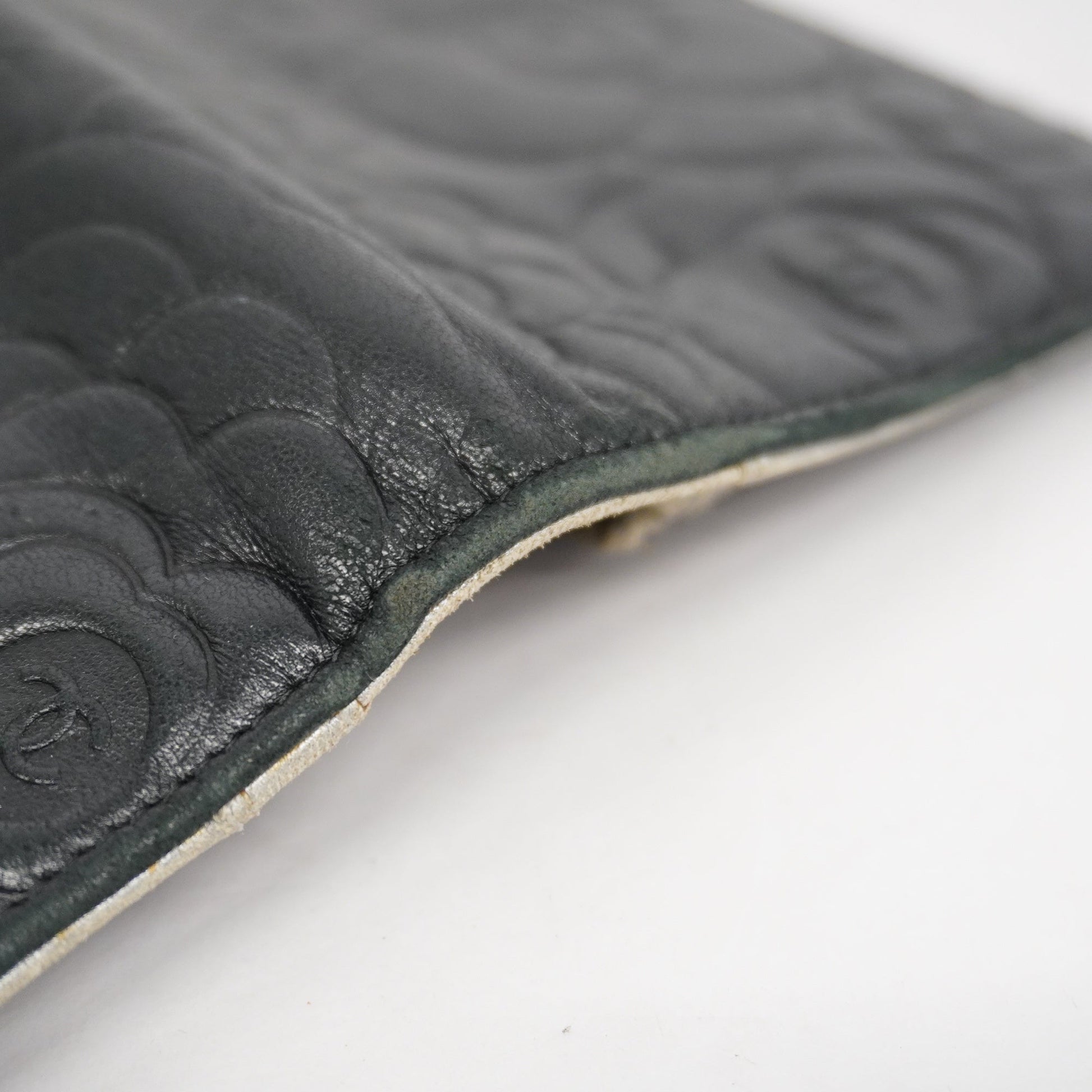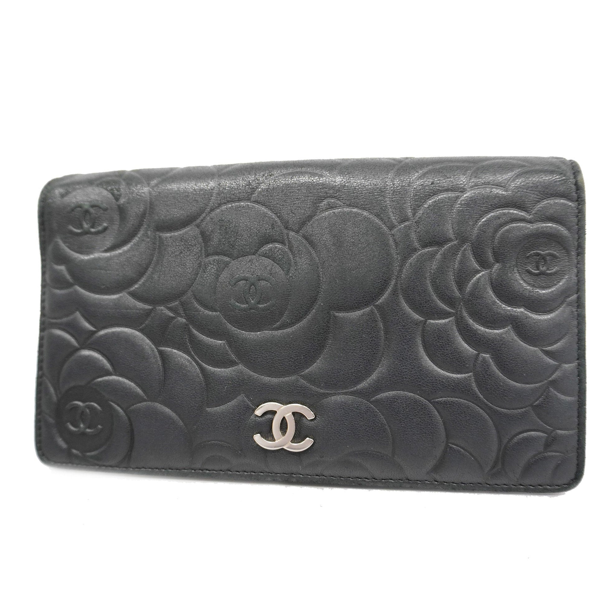 Auth Chanel Camellia Bi-fold Long Wallet With Silver Metal Women's Lambskin