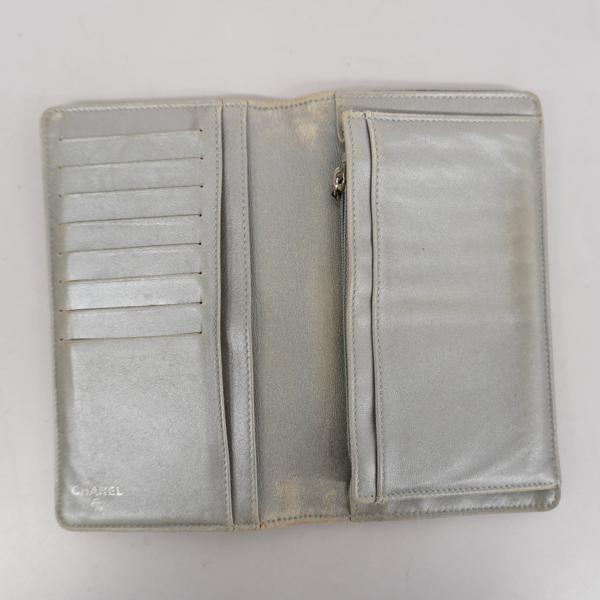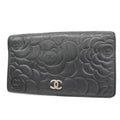 ChanelAuth Camellia Bi-fold Long Wallet With Silver Metal Women's Lambskin