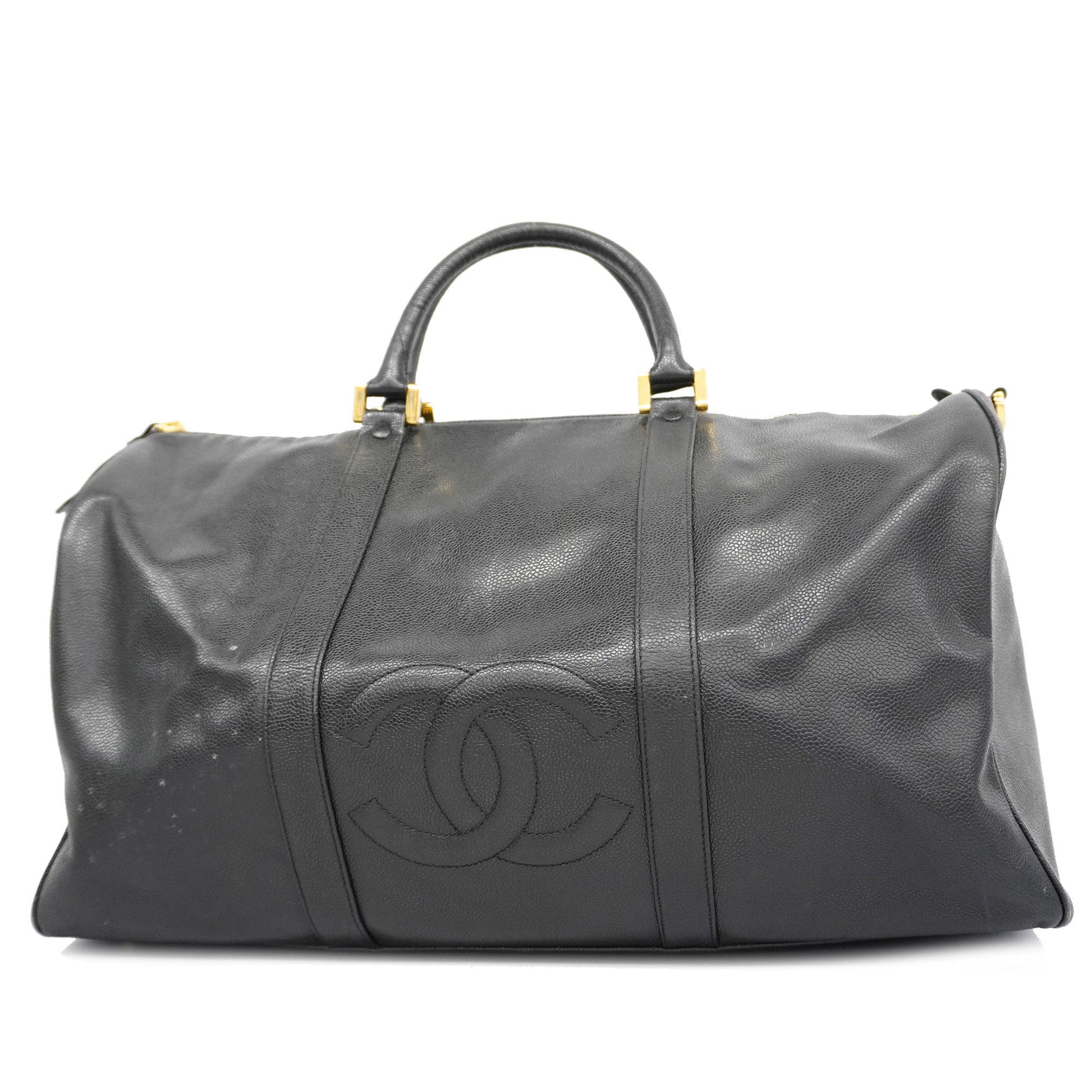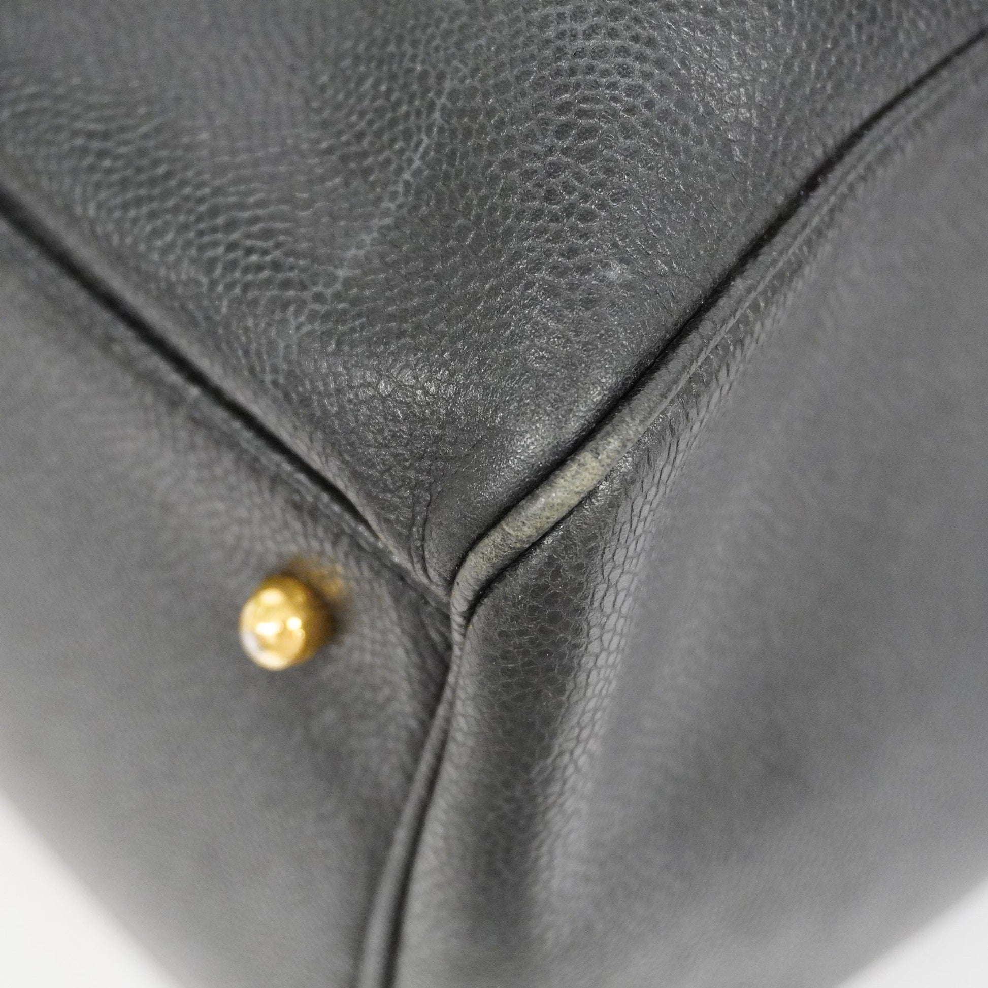 Auth Chanel Caviar Skin Women's Caviar Leather Boston Bag Black