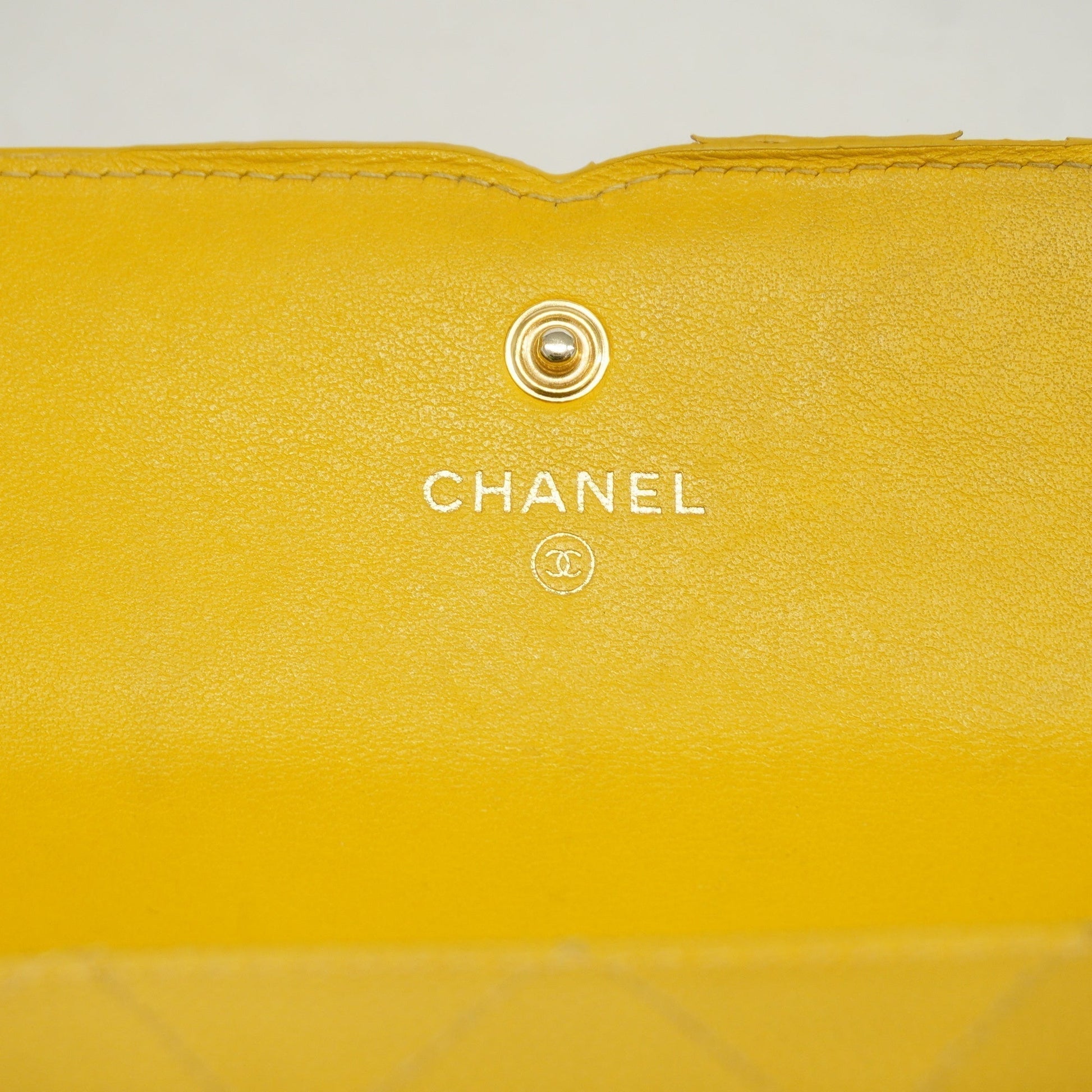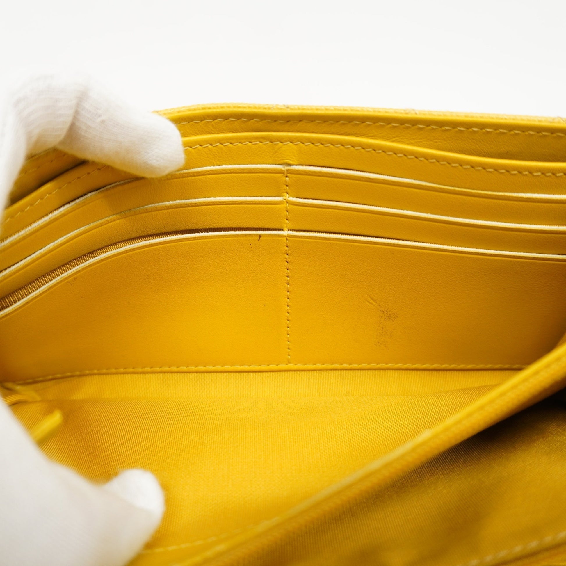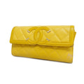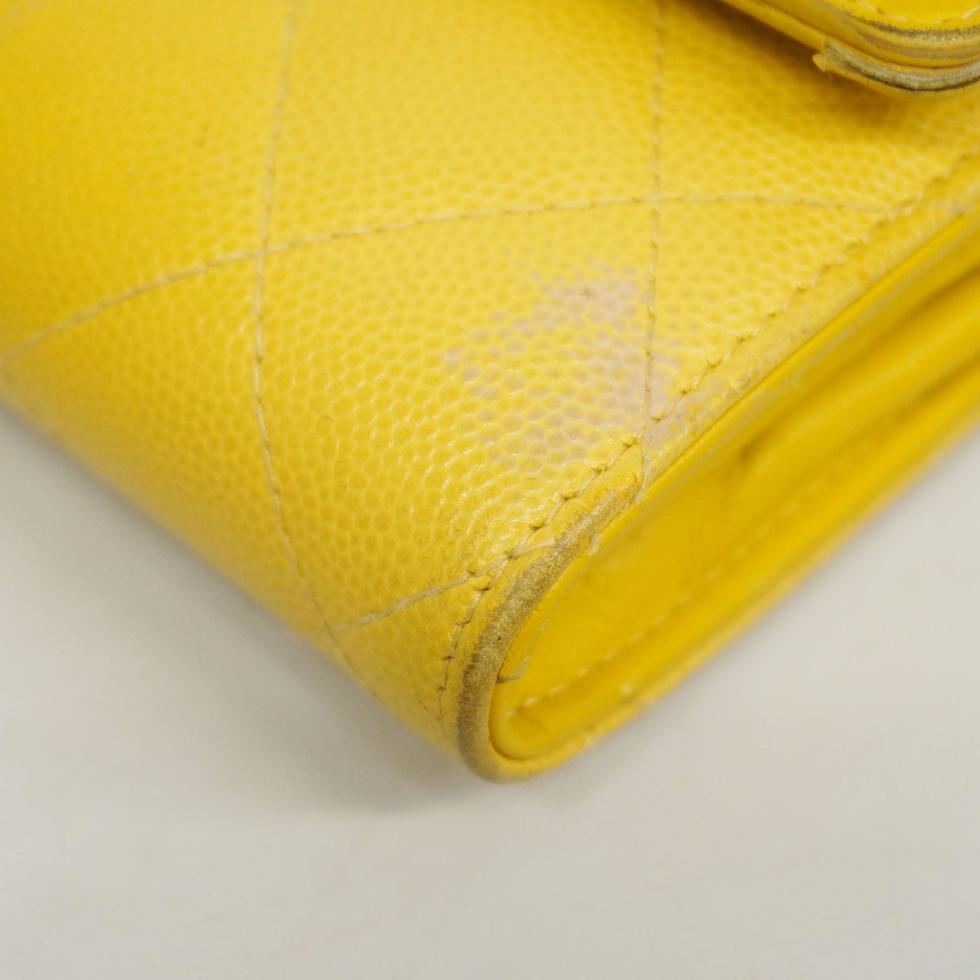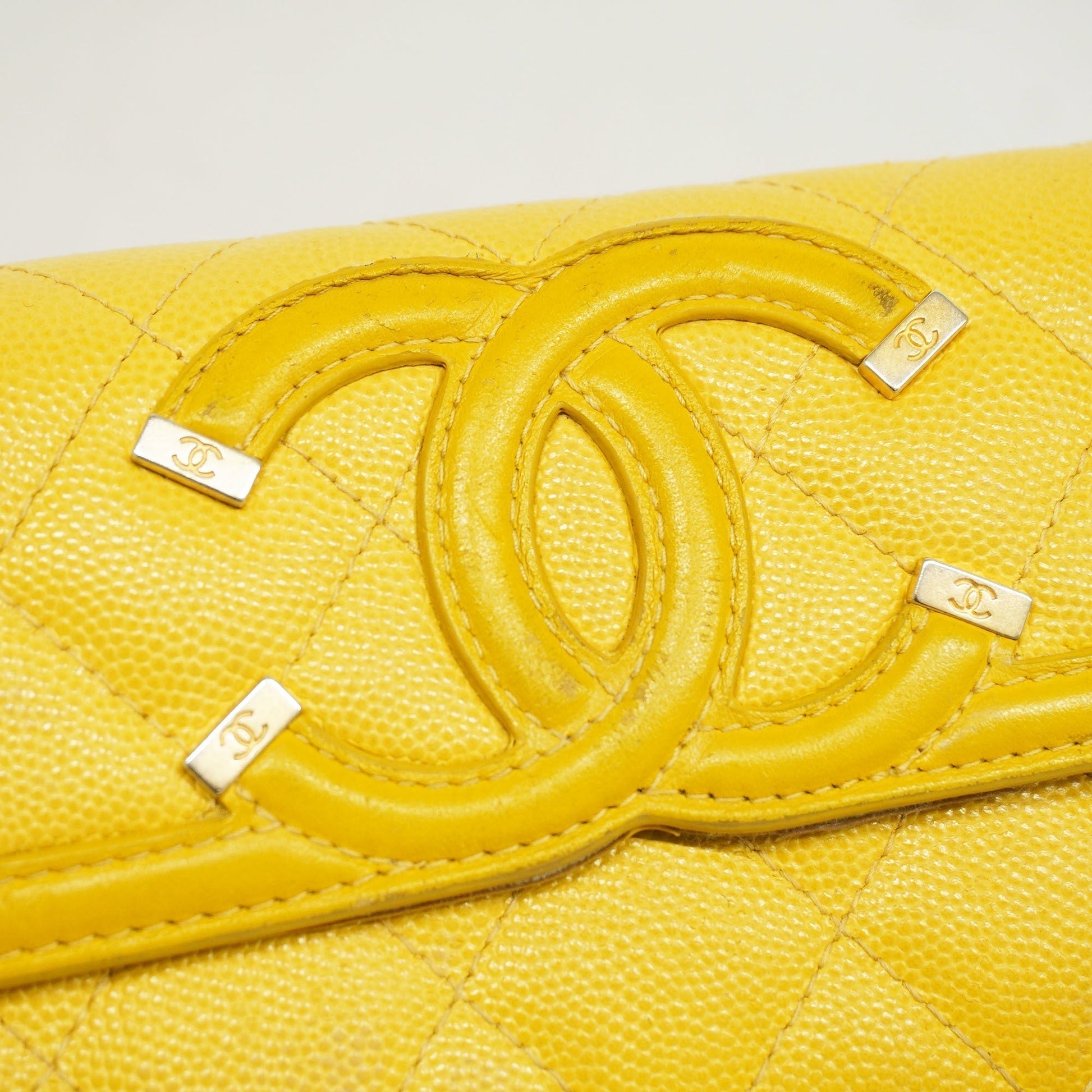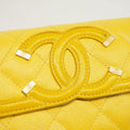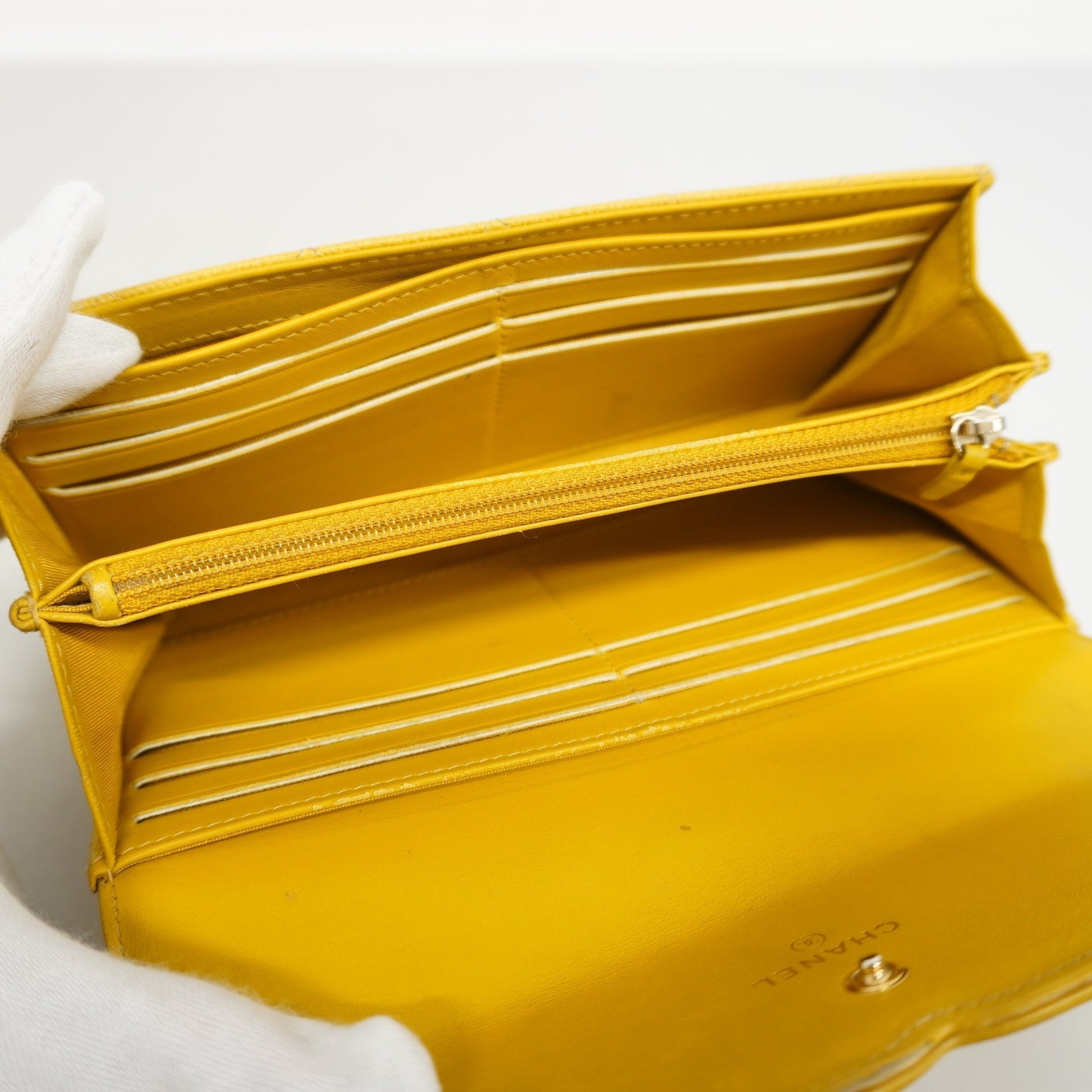 ChanelAuth CC Filigree Gold Hardware Women's Caviar Leather Long Wallet Yellow