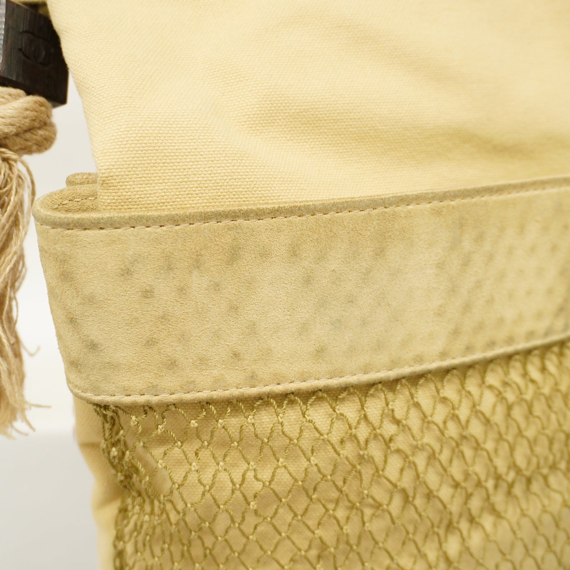 Auth Chanel Chain Shoulder Women's Canvas Shoulder Bag Beige