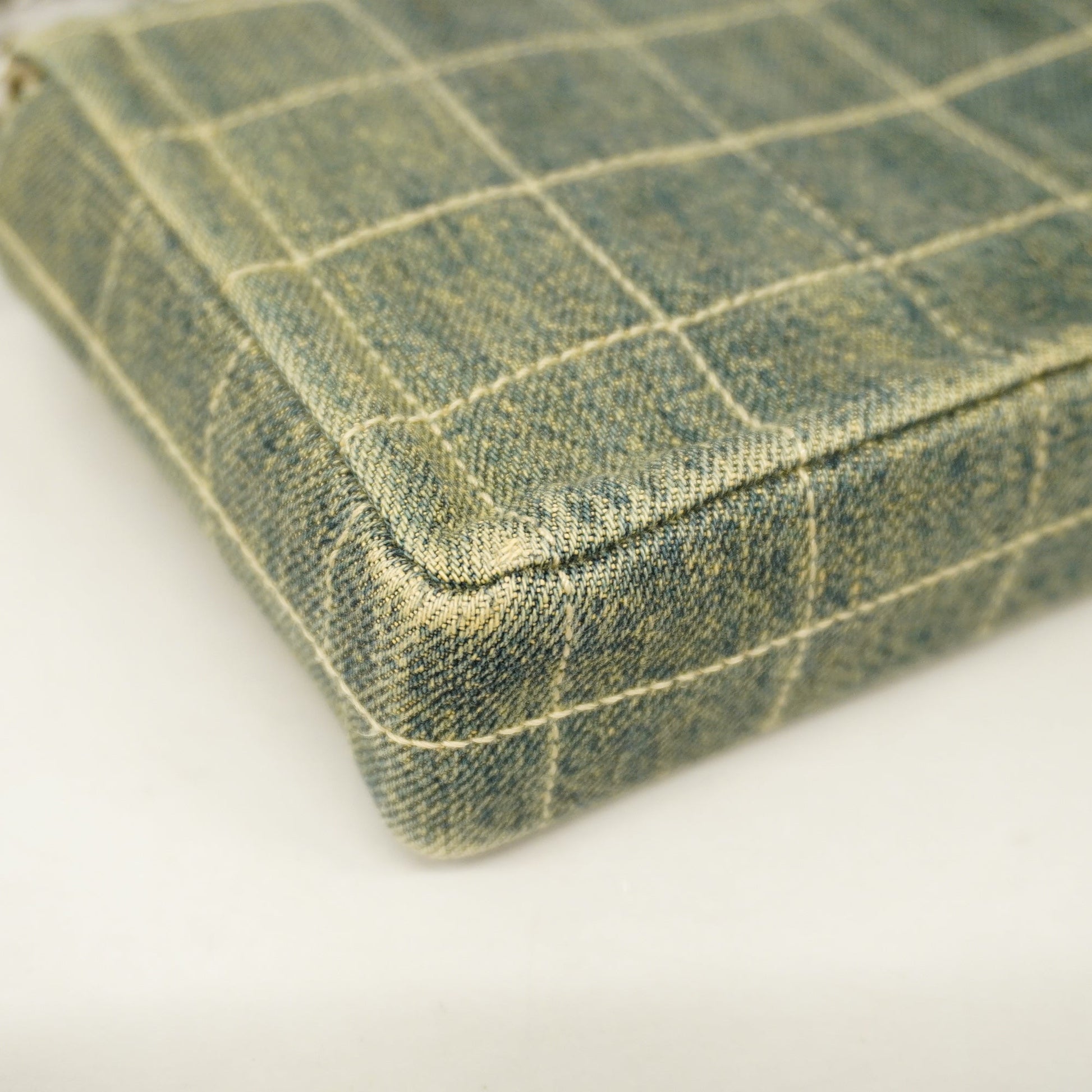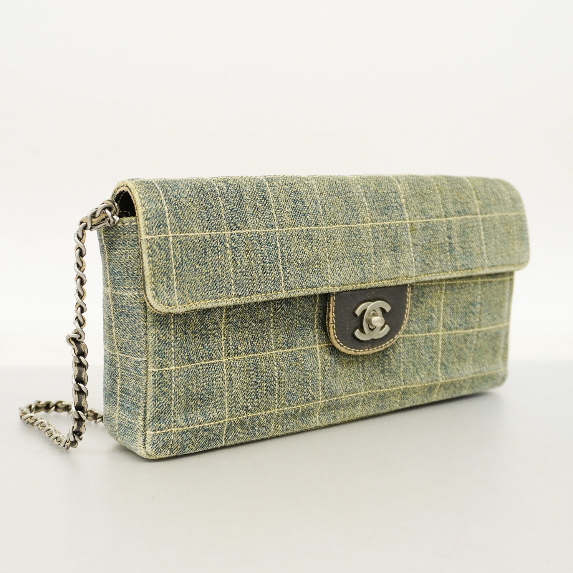 Auth Chanel Chocolate Bar Chain Shoulder Women's Denim Shoulder Bag Blue