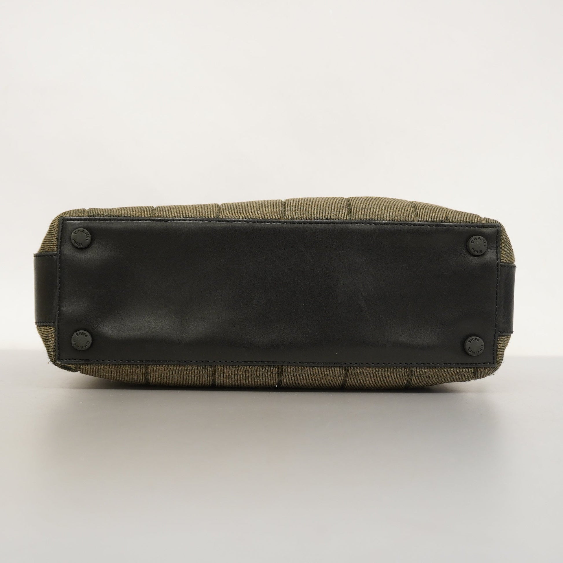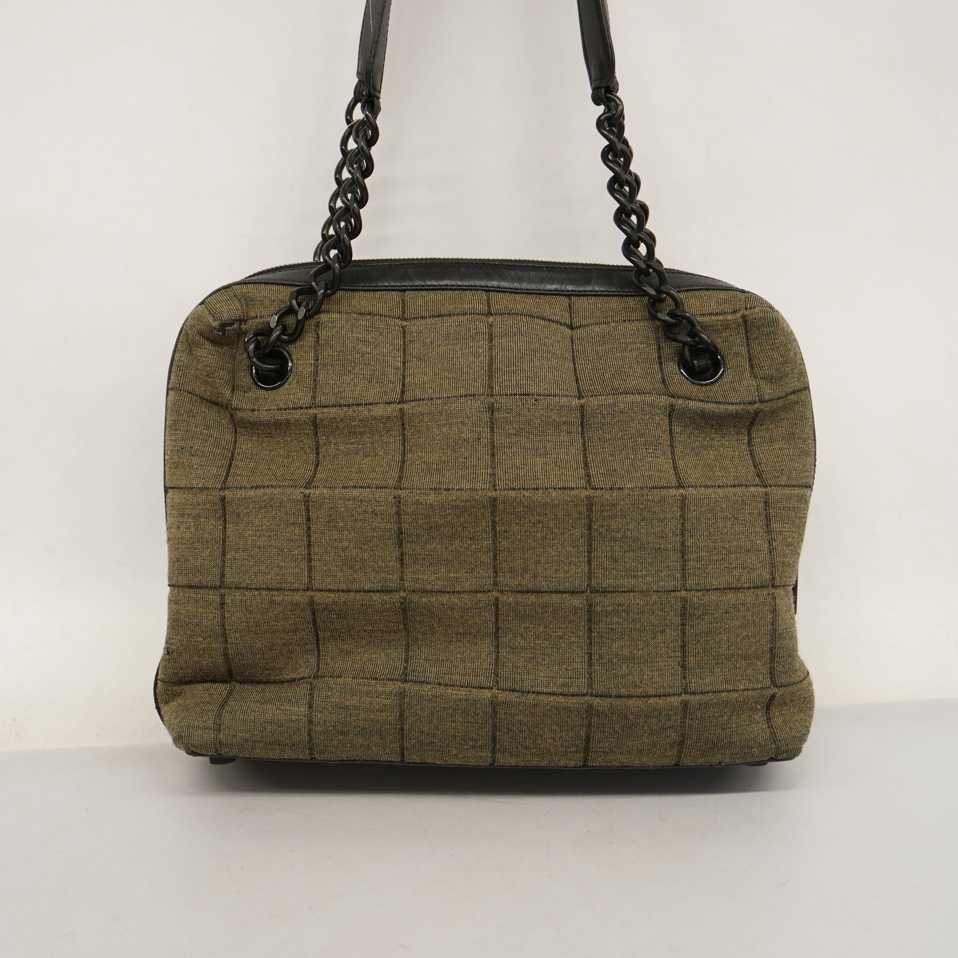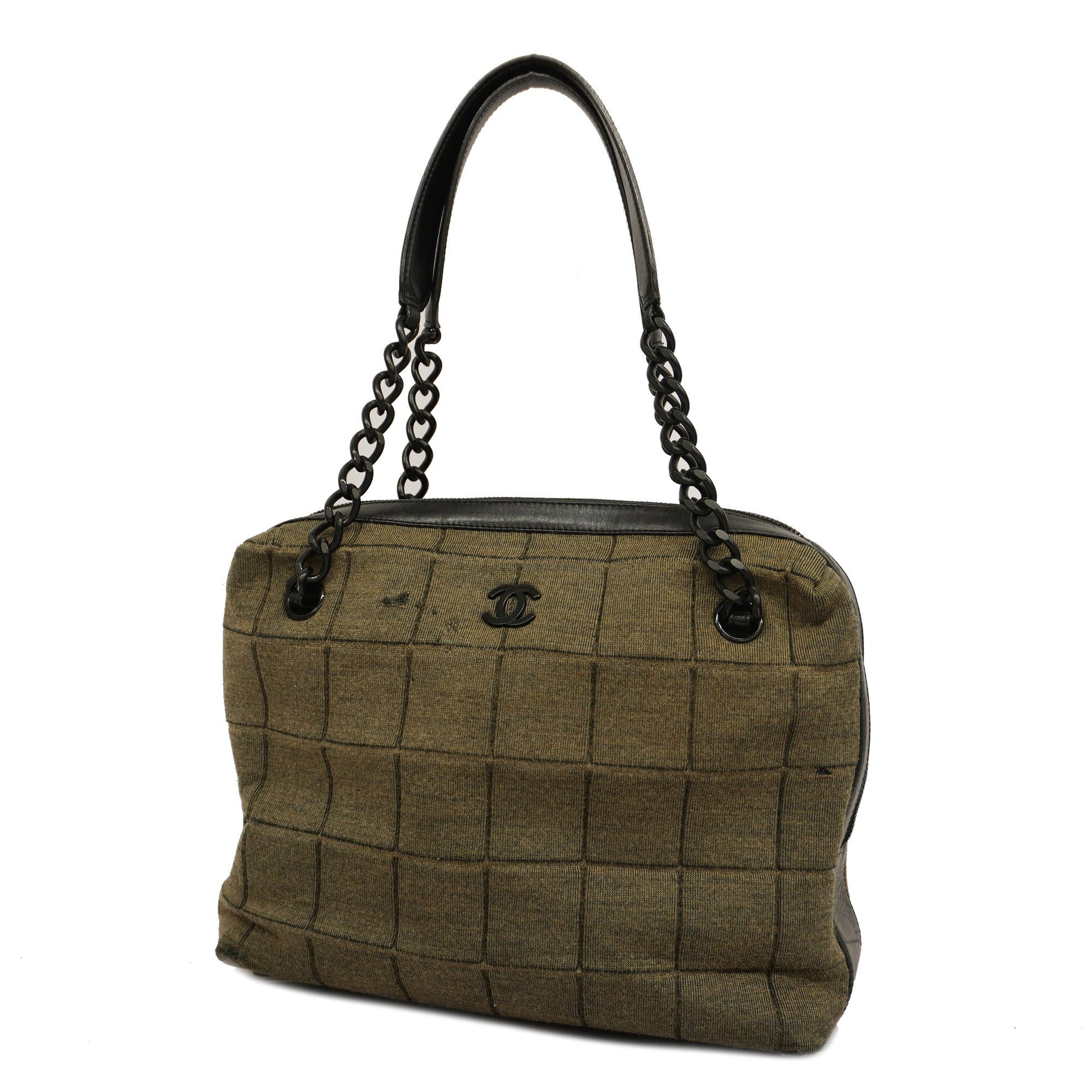 Auth Chanel Chocolate Bar HandBag Women's Cotton,Leather Black,Khaki