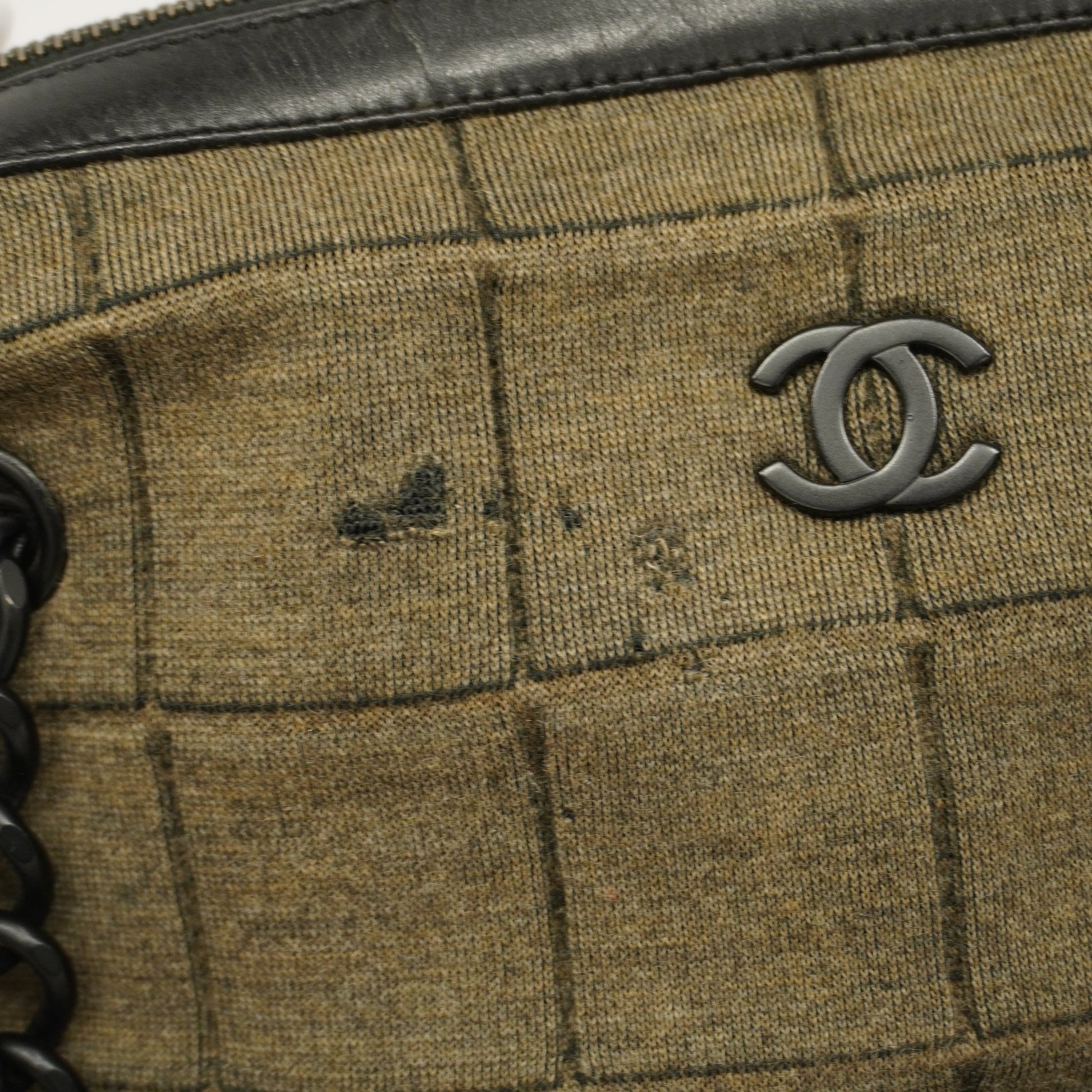 ChanelAuth Chocolate Bar HandBag Women's Cotton,Leather Black,Khaki