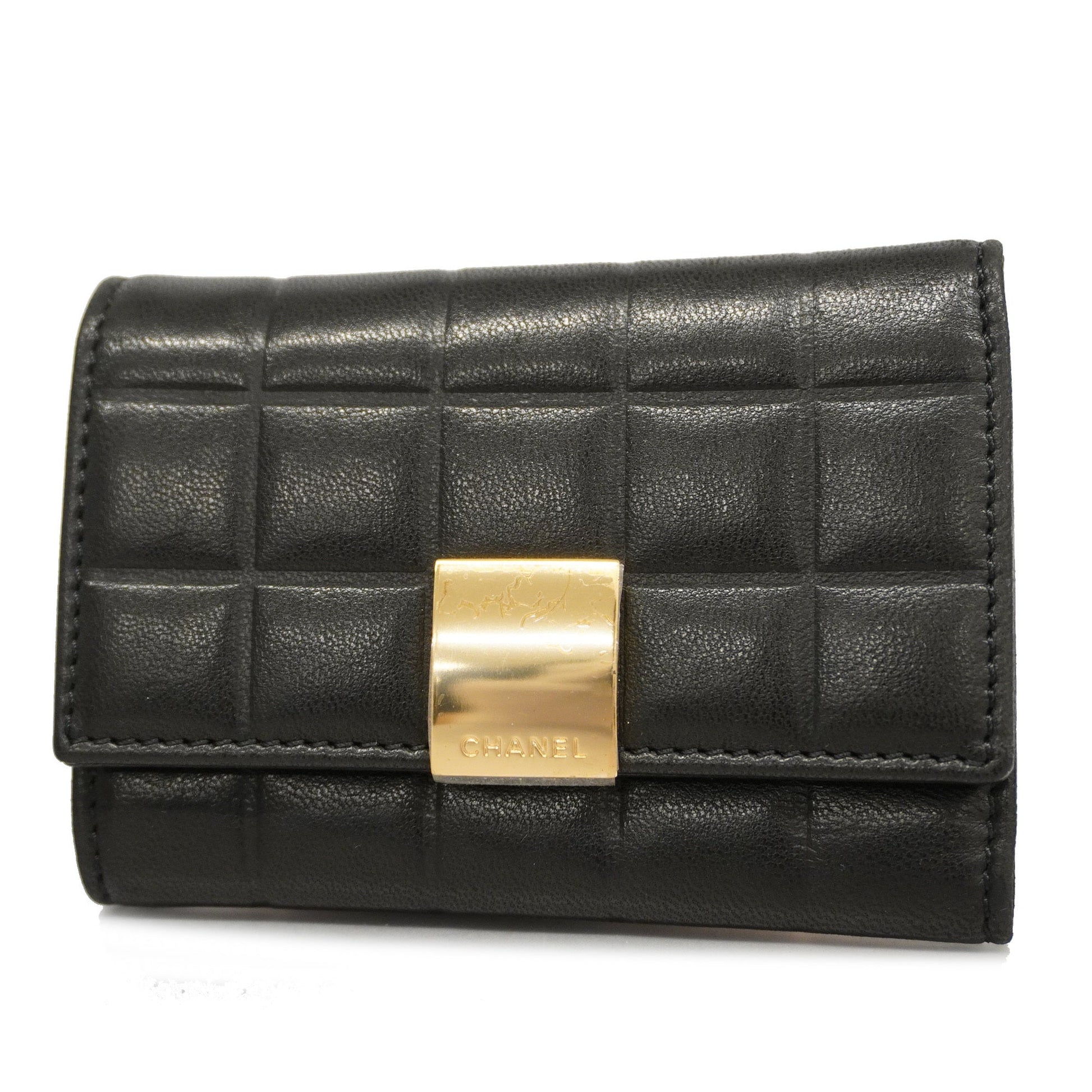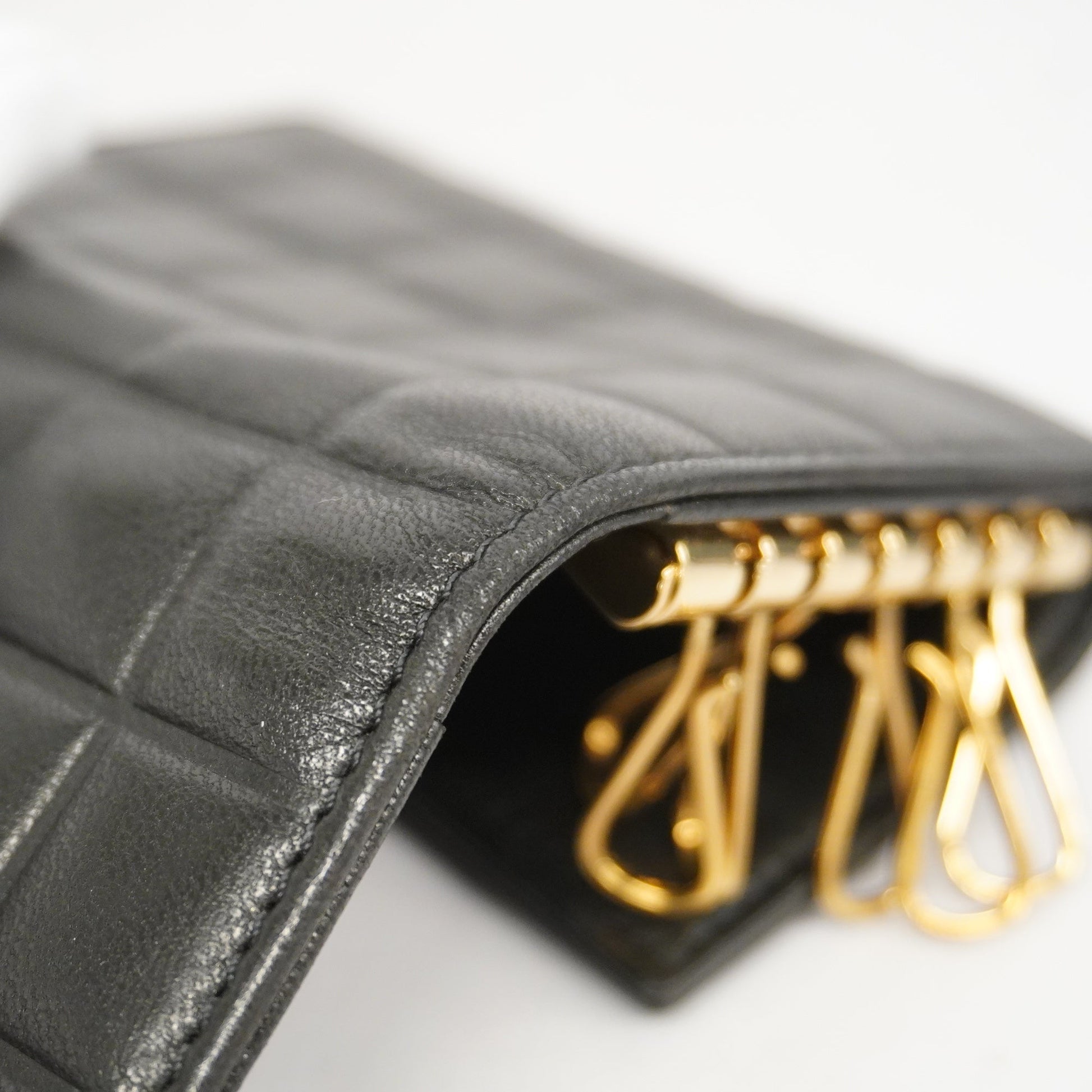Auth Chanel Chocolate Bar Key Case Gold Hardware Women's Leather Key Case Black