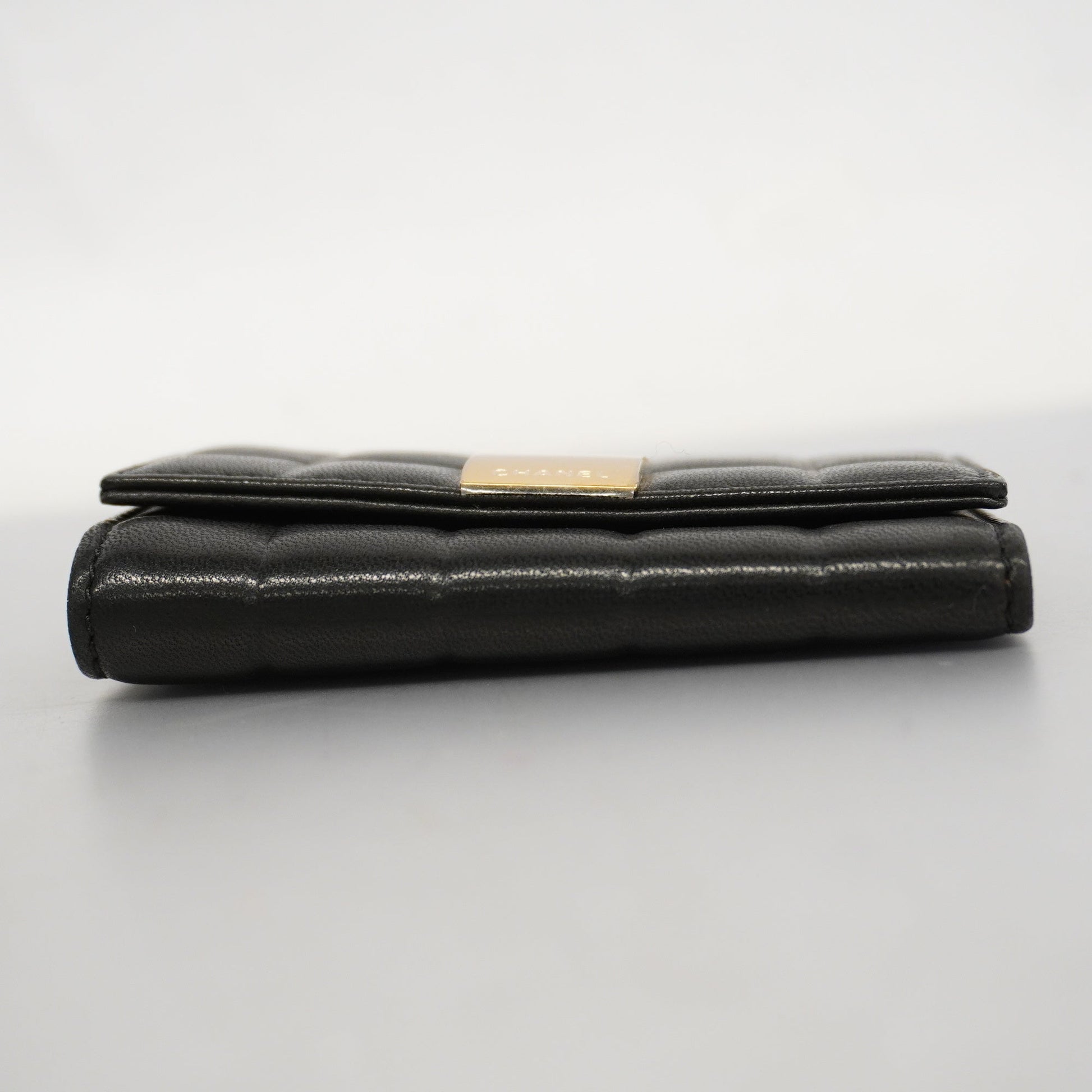 ChanelAuth Chocolate Bar Key Case Gold Hardware Women's Leather Key Case Black