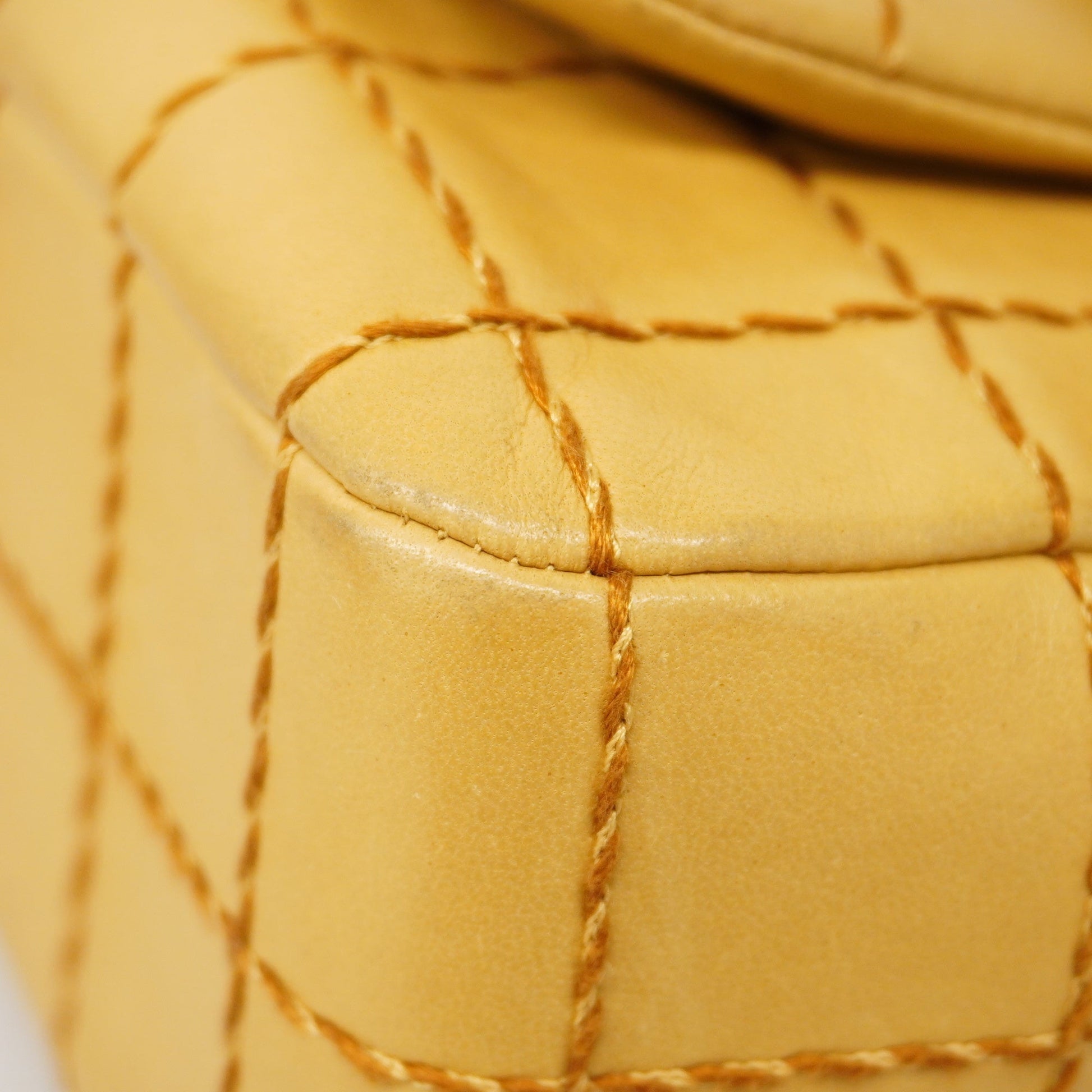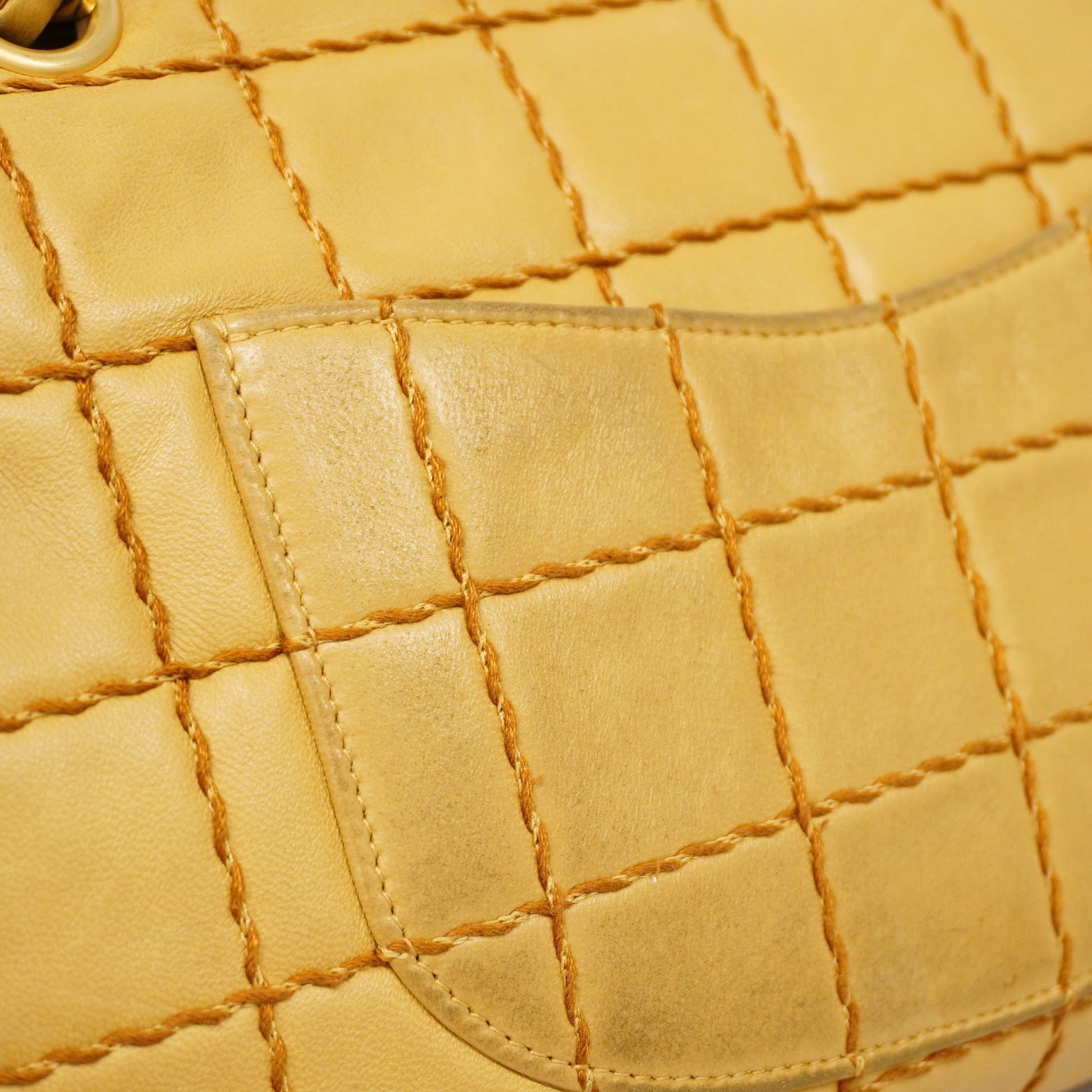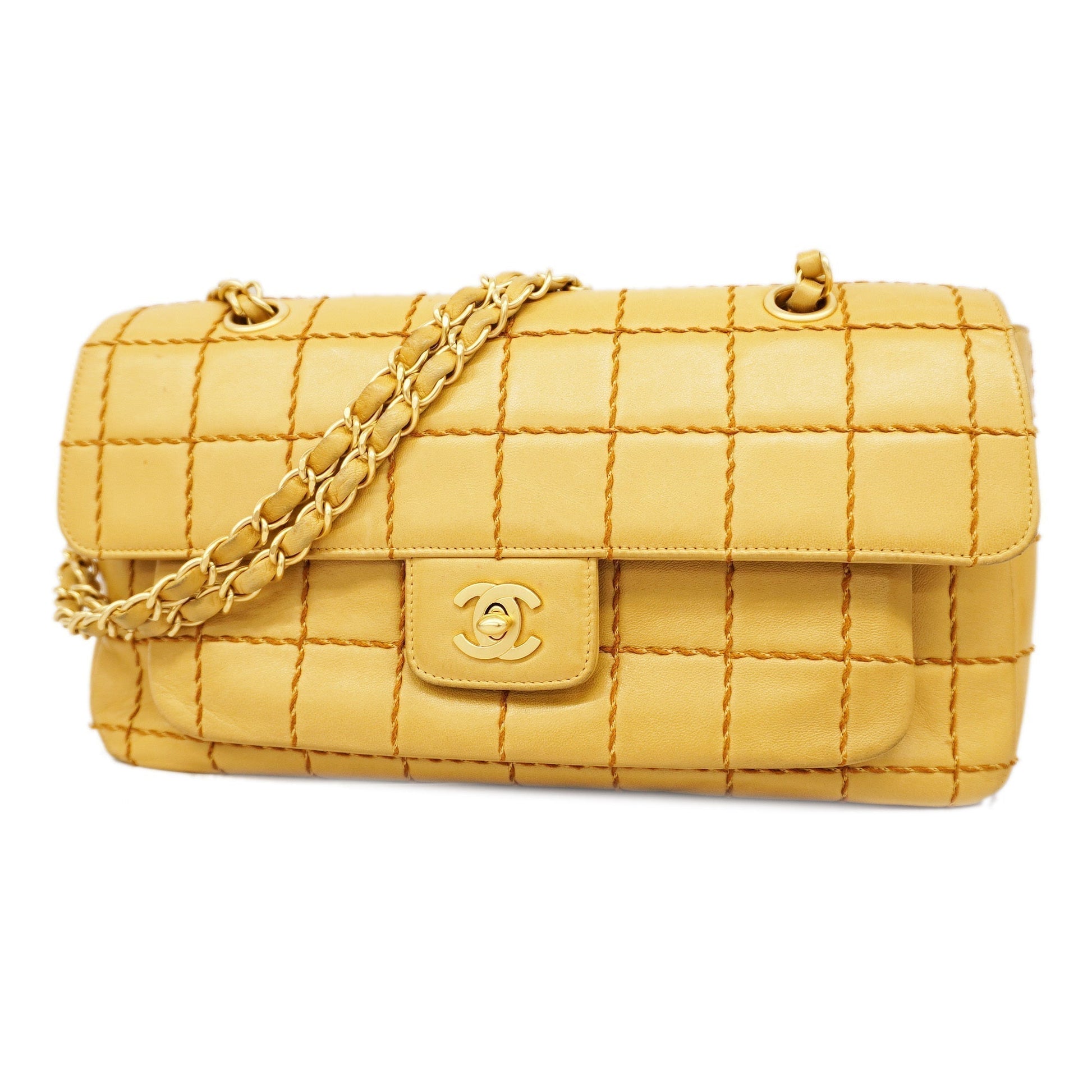 ChanelAuth Chocolate Bar Shoulder Bag Wild Stitch W Chain Women's Bag Beige