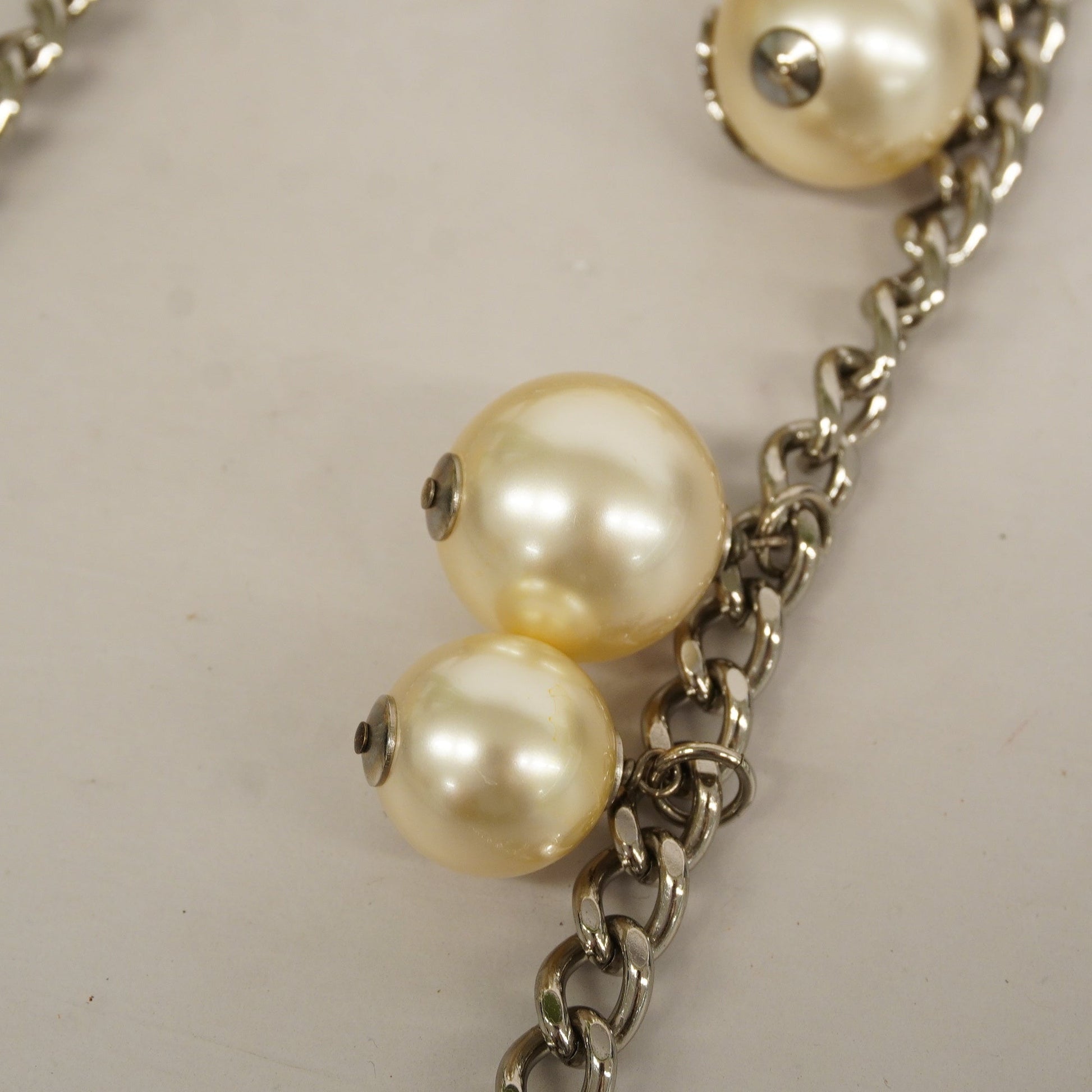 Auth Chanel Ephemer Chain Shoulder Women's Nylon Tote Bag White
