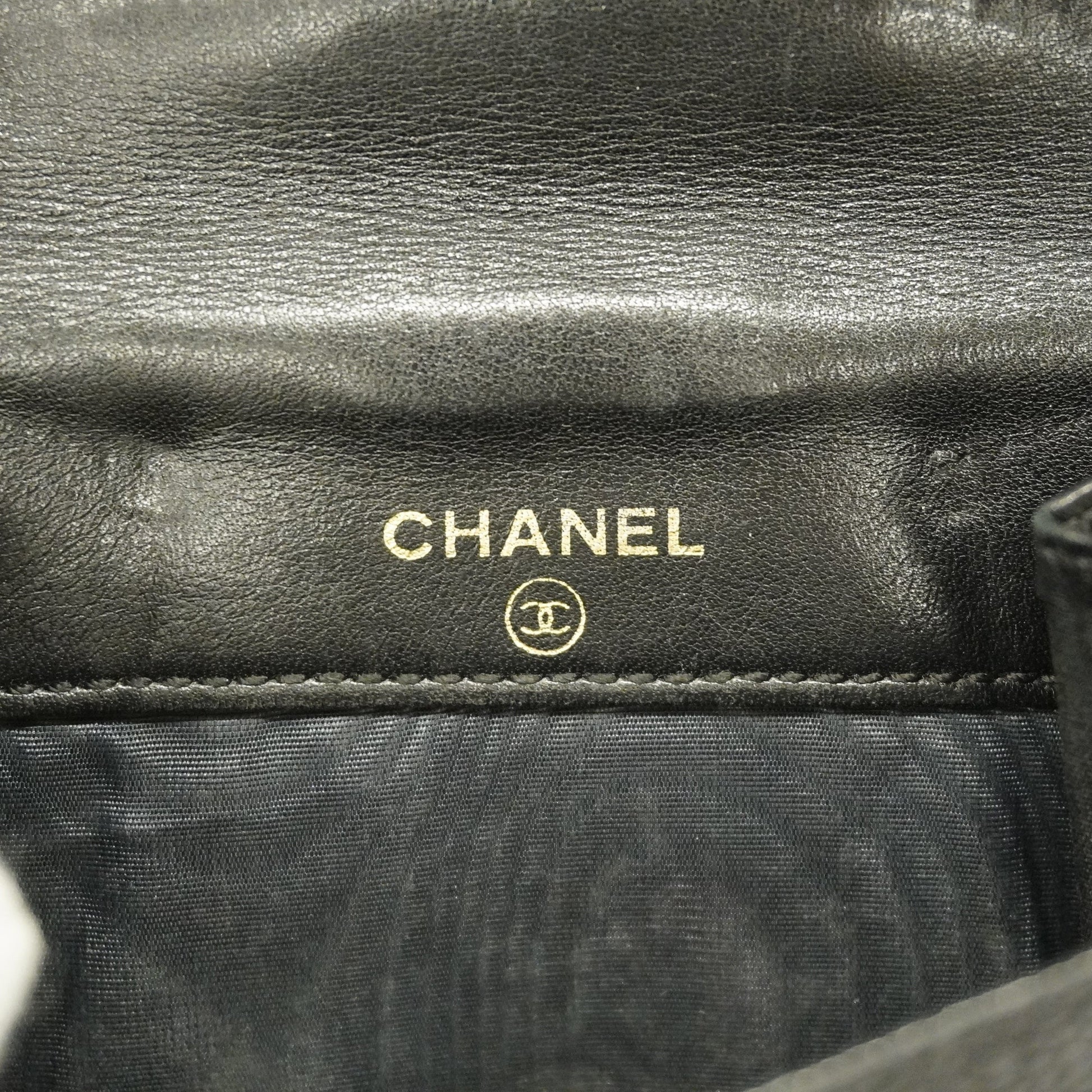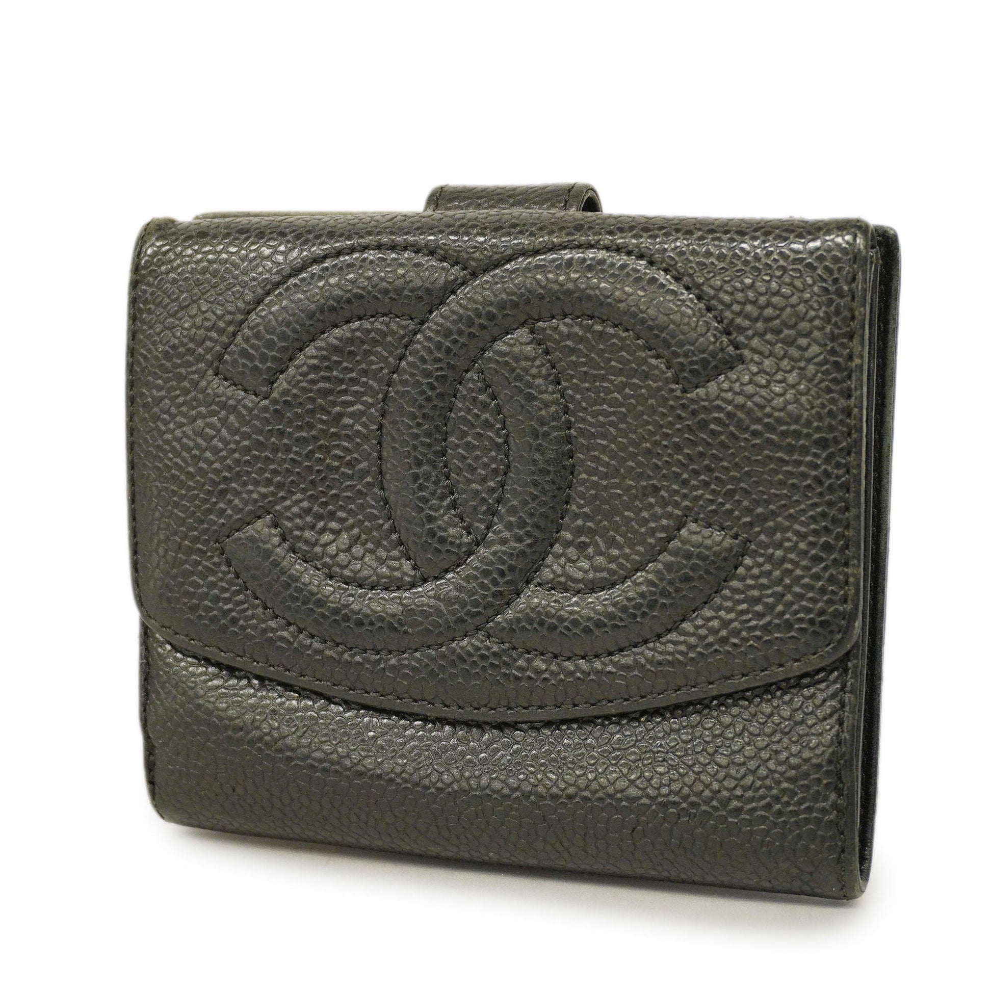 ChanelAuth Gold Hardware Women's Caviar Leather Long Wallet [bi-fold] Black