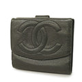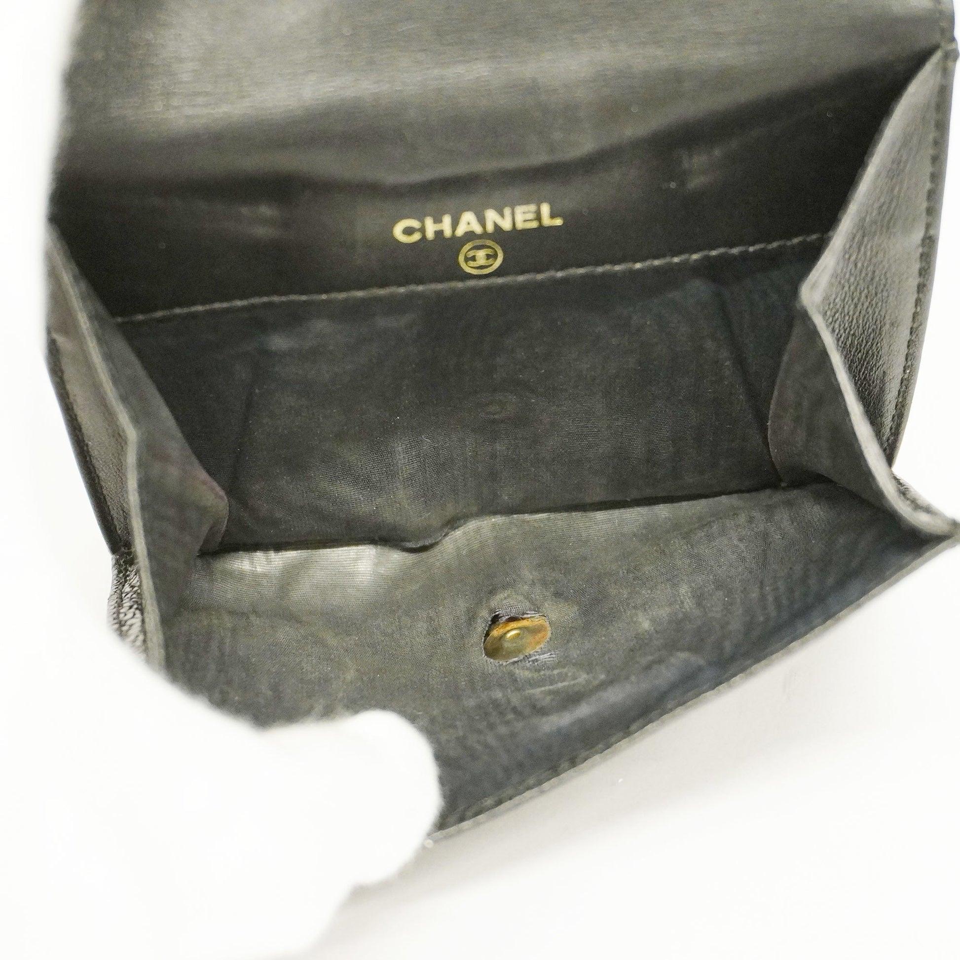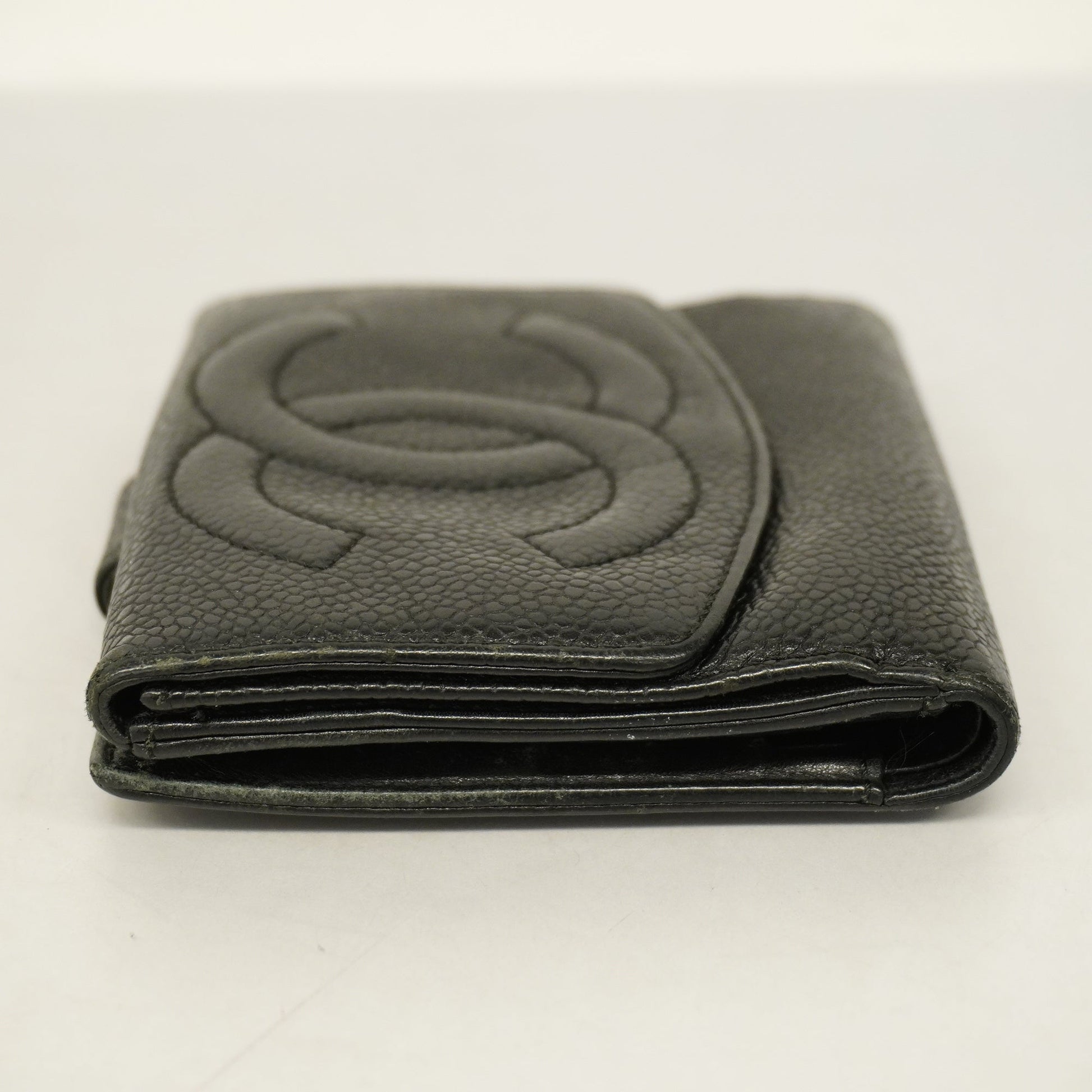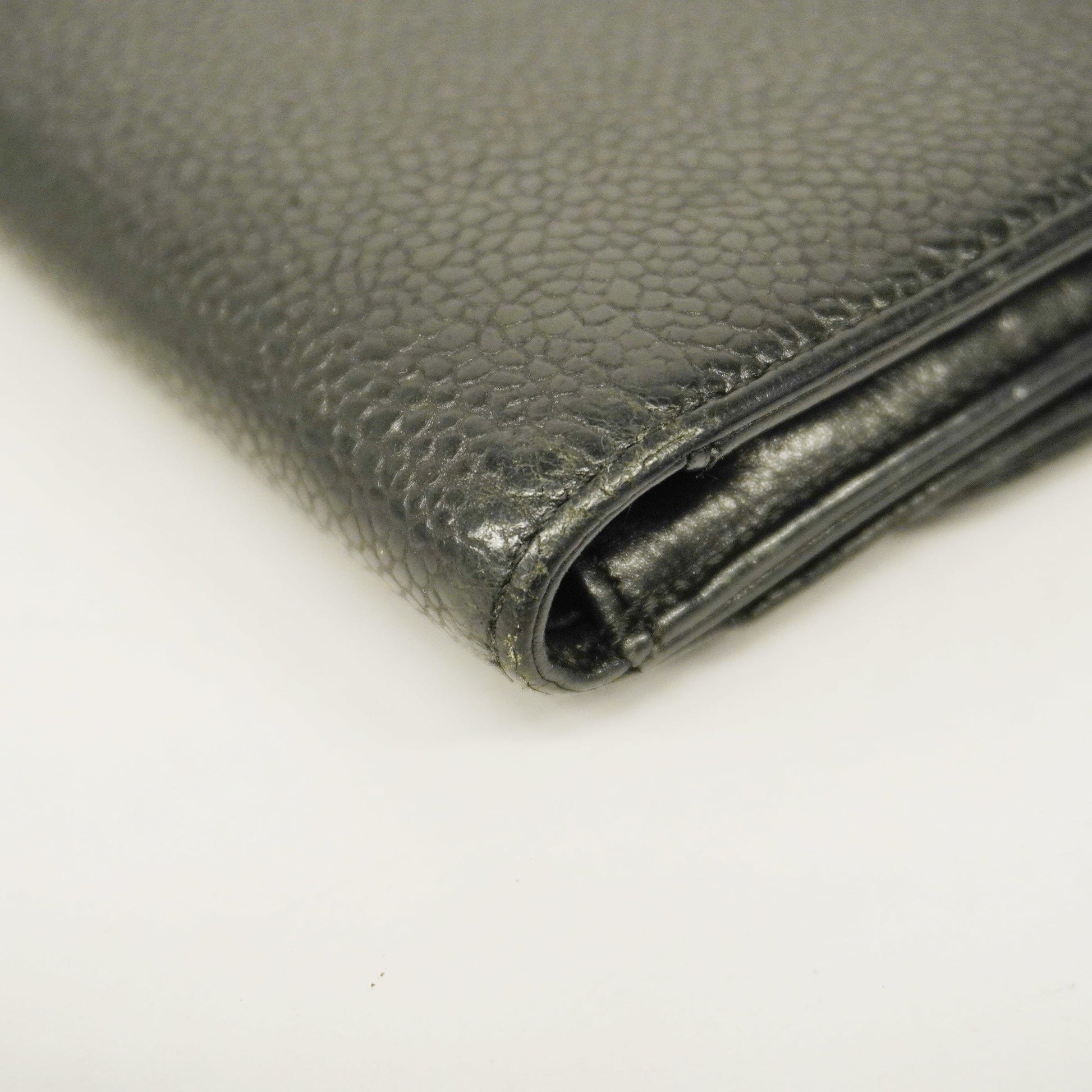 Auth Chanel Gold Hardware Women's Caviar Leather Long Wallet (bi-fold) Black