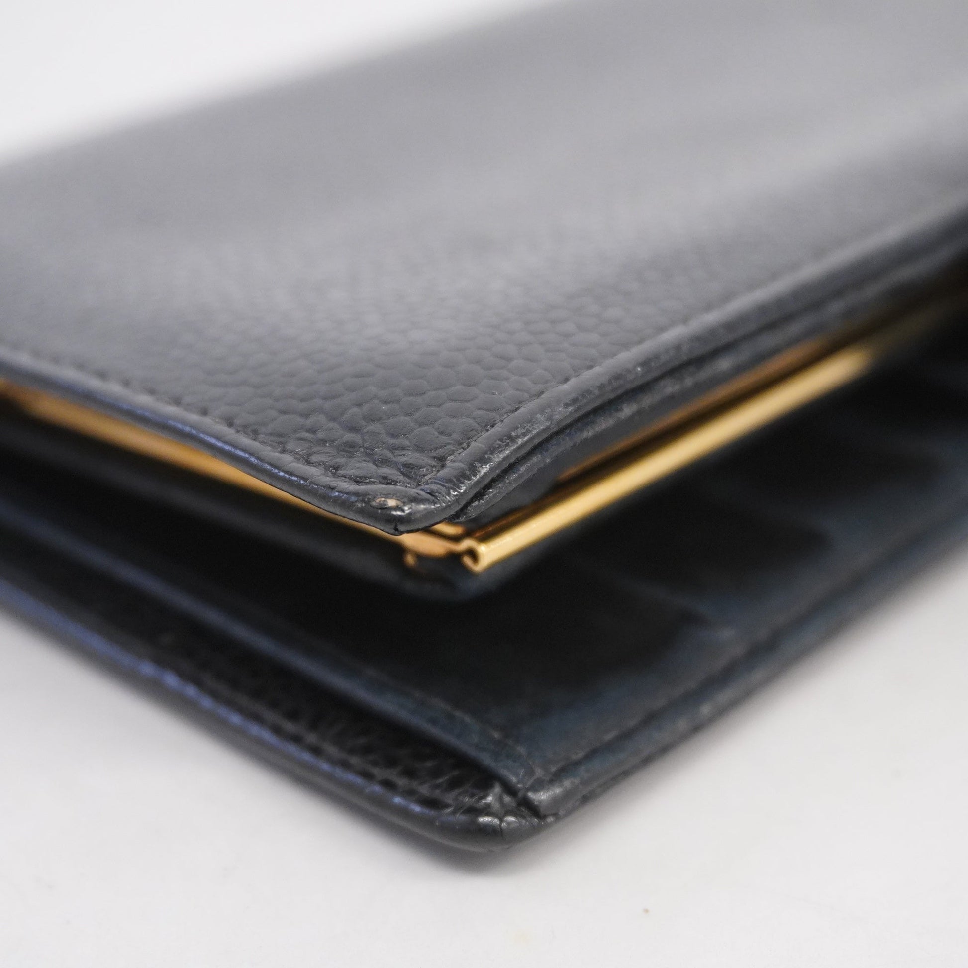 ChanelAuth Gold Hardware Women's Caviar Leather Long Wallet Black