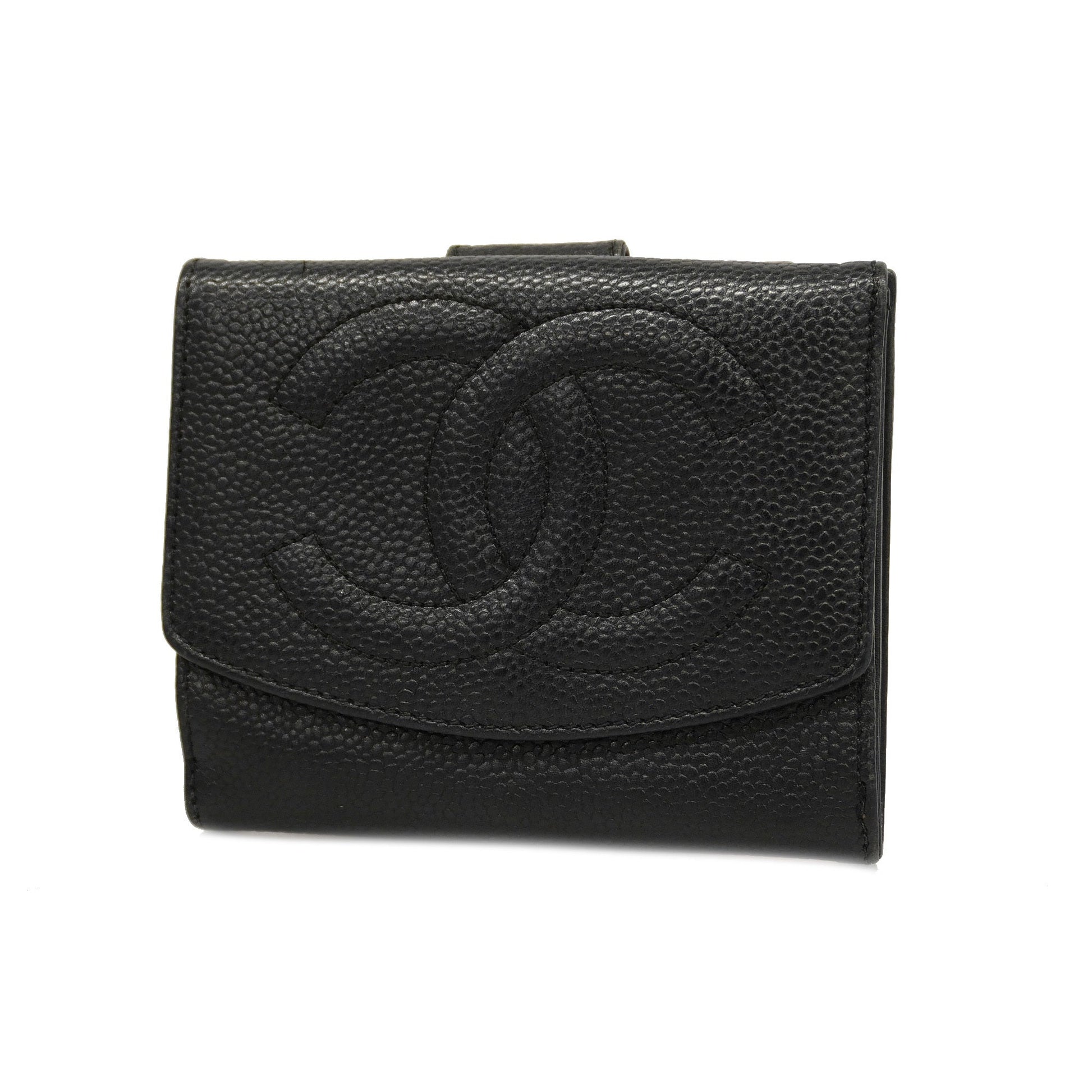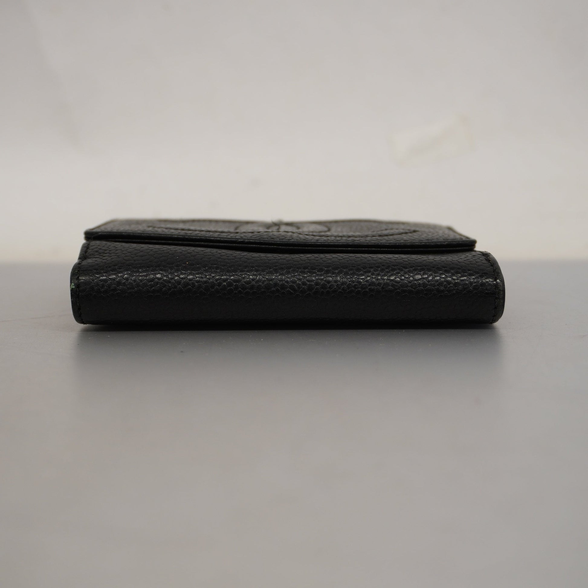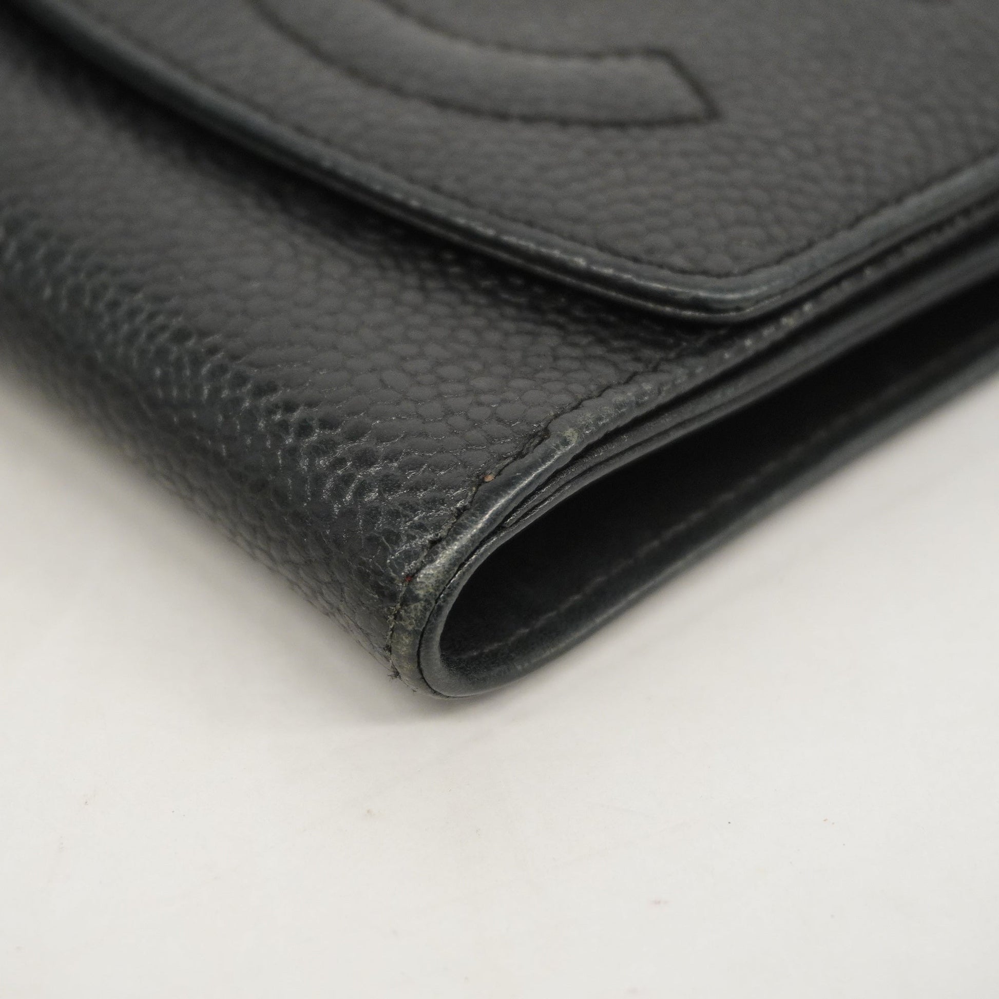 ChanelAuth Gold Hardware Women's Caviar Leather Wallet [bi-fold] Black