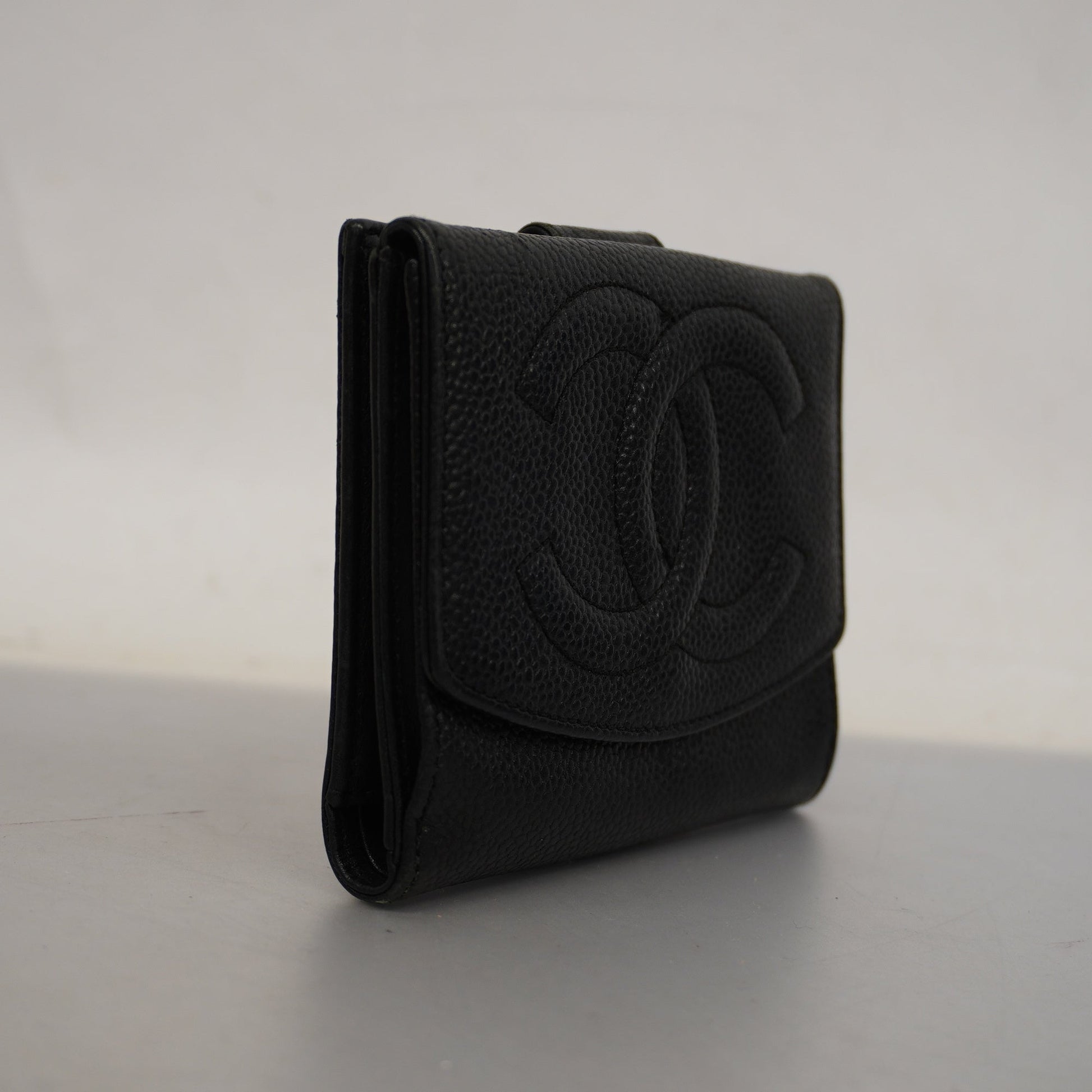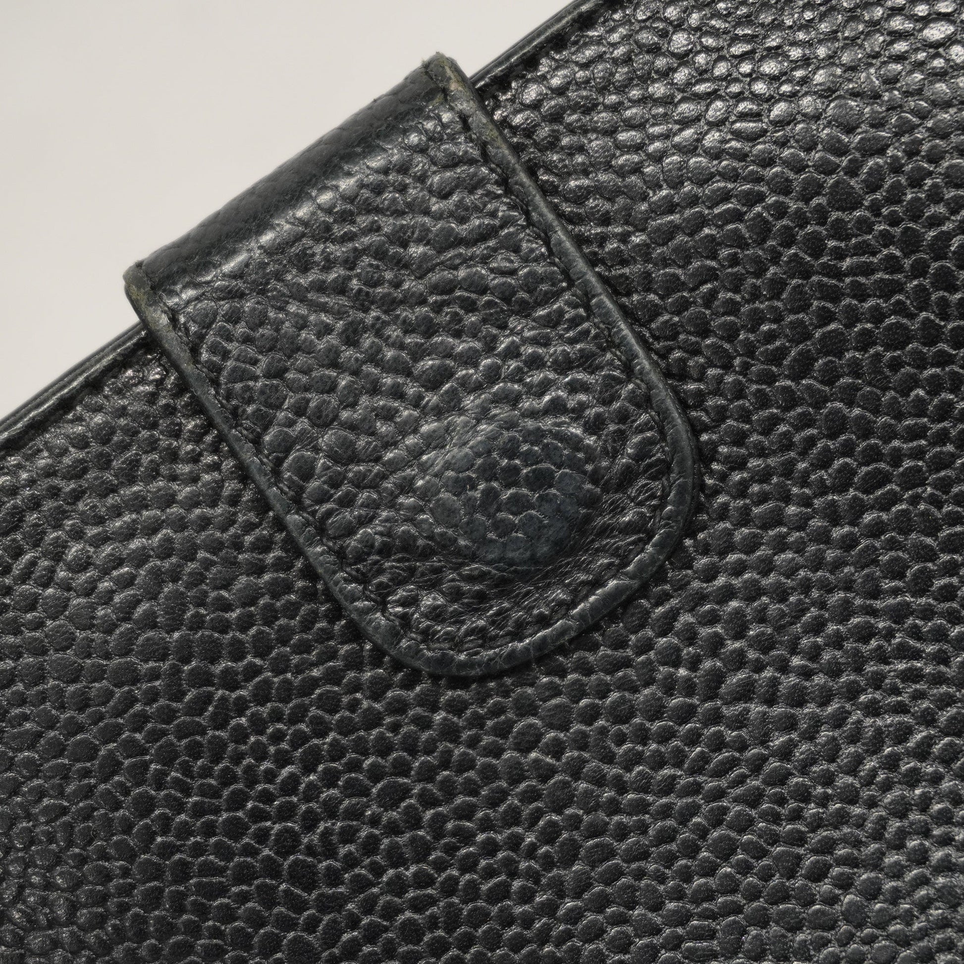 Auth Chanel Gold Hardware Women's Caviar Leather Wallet (bi-fold) Black