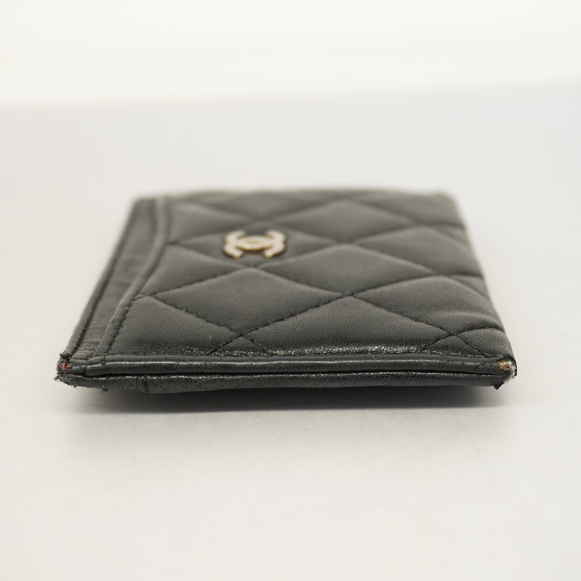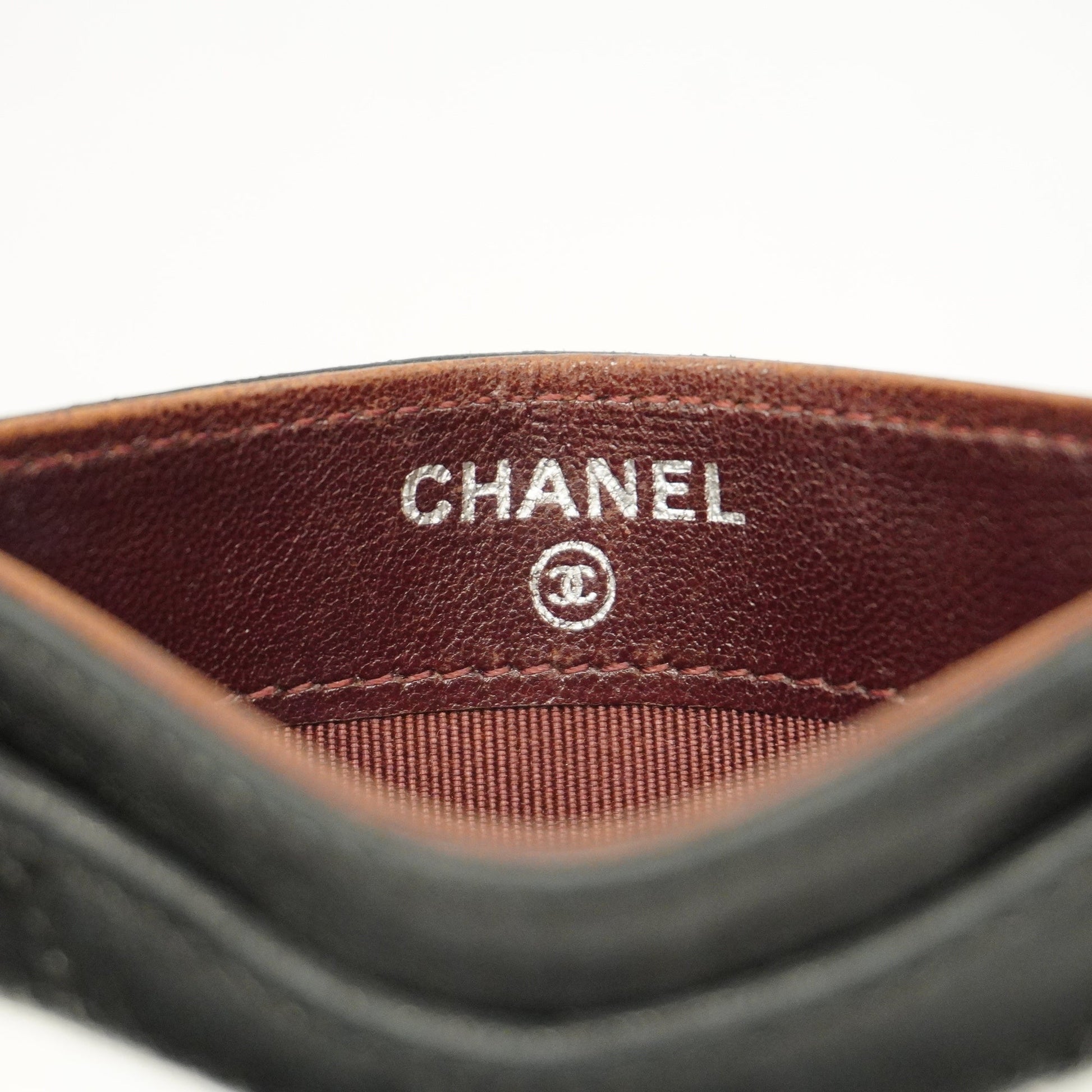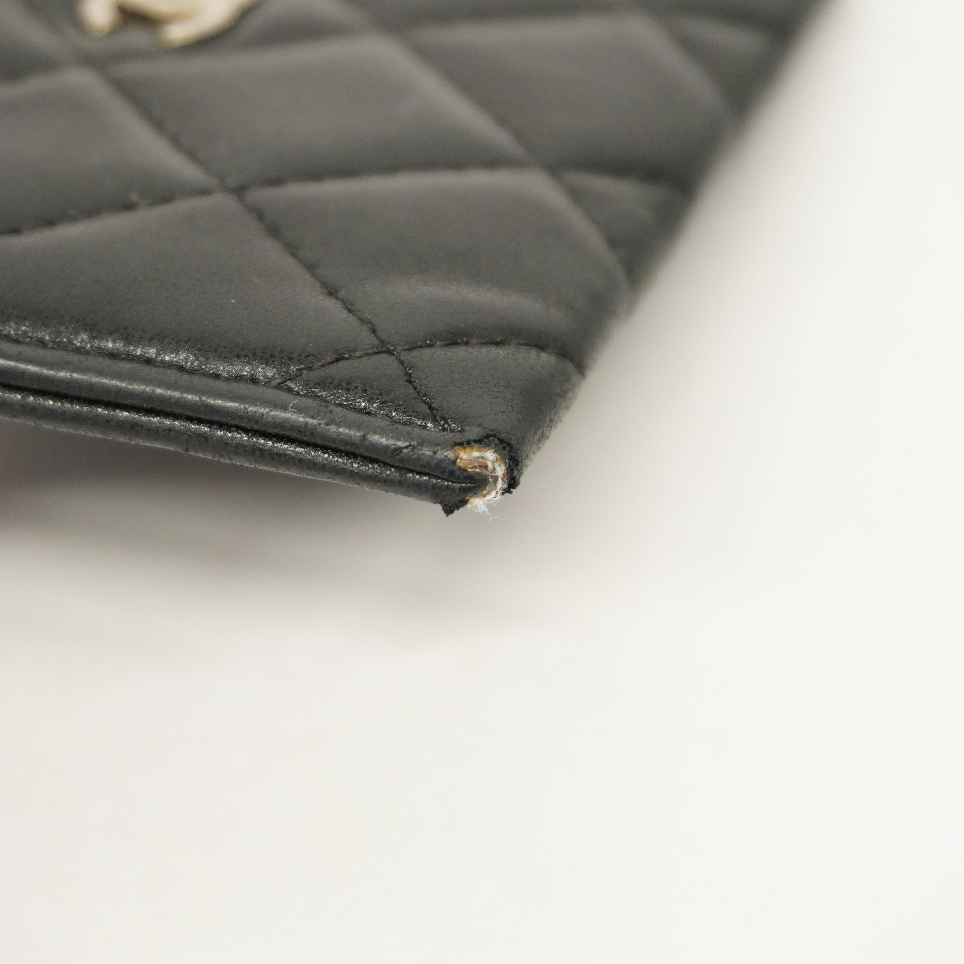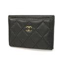 ChanelAuth Matelasse Card Case Silver Hardware Leather Card Case Black