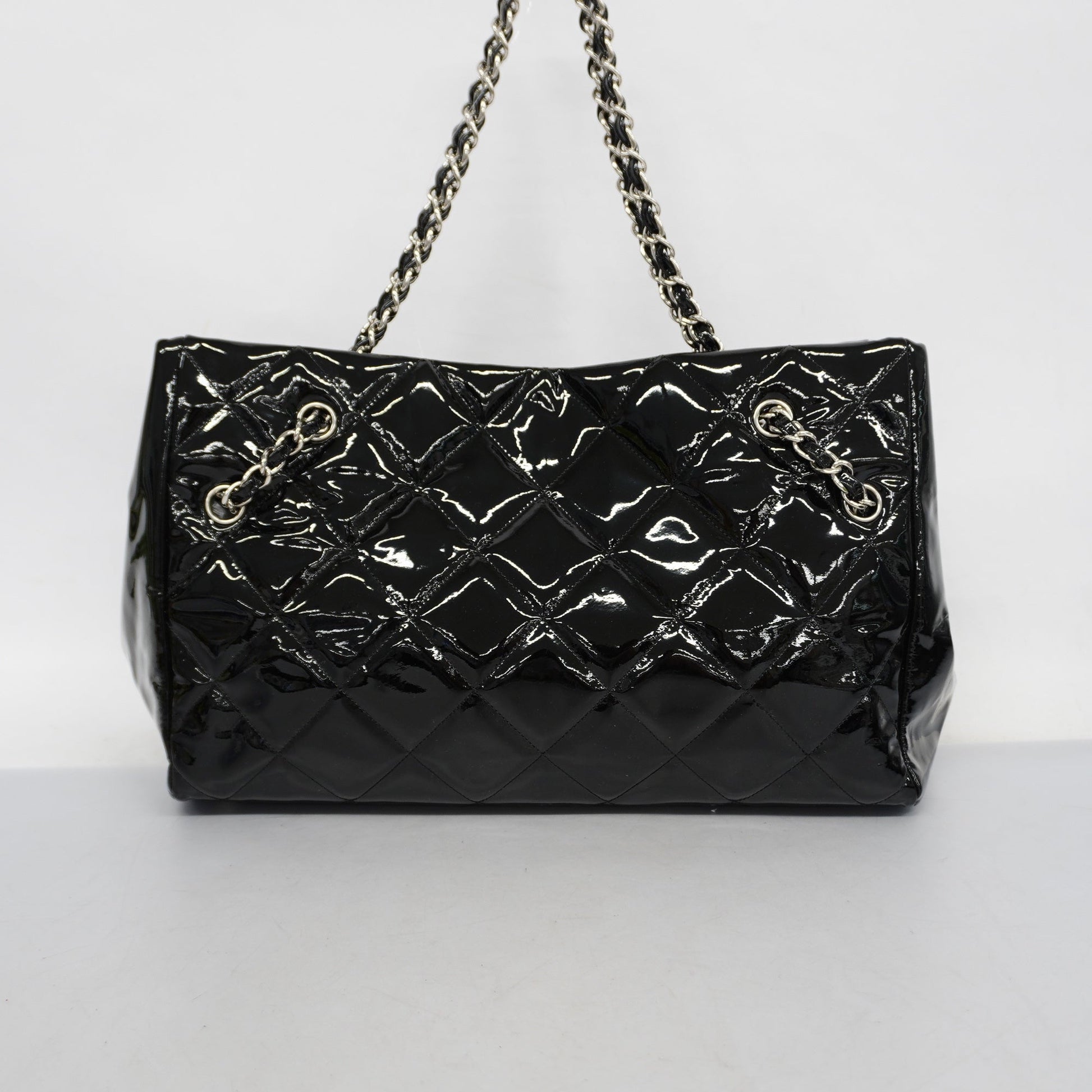 ChanelAuth Matelasse Chain Shoulder Bag Women's Patent Leather Black