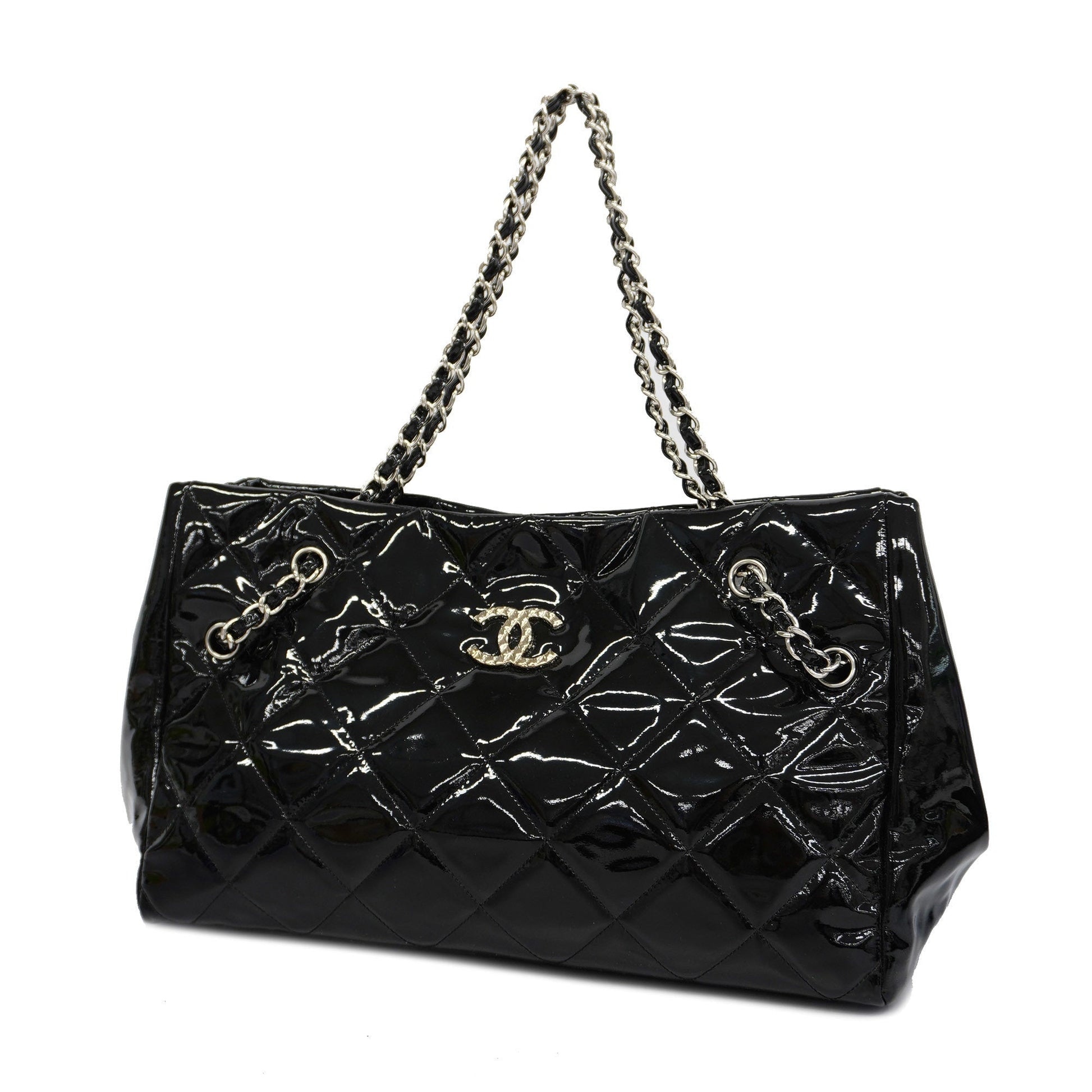Auth Chanel Matelasse Chain Shoulder Bag Women's Patent Leather Black