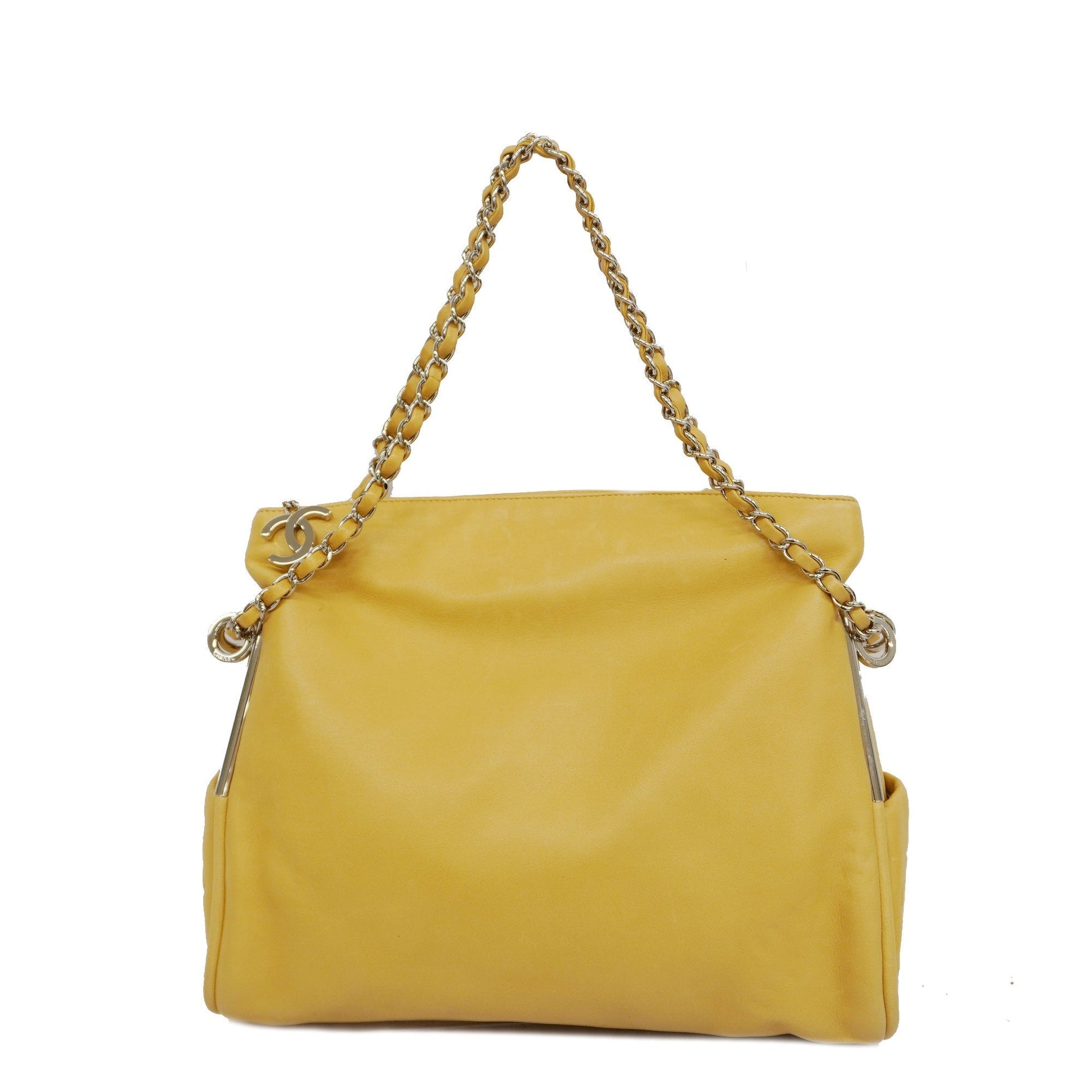 Auth Chanel Matelasse Chain Shoulder Lambskin Women's Leather Shoulder Bag Beige