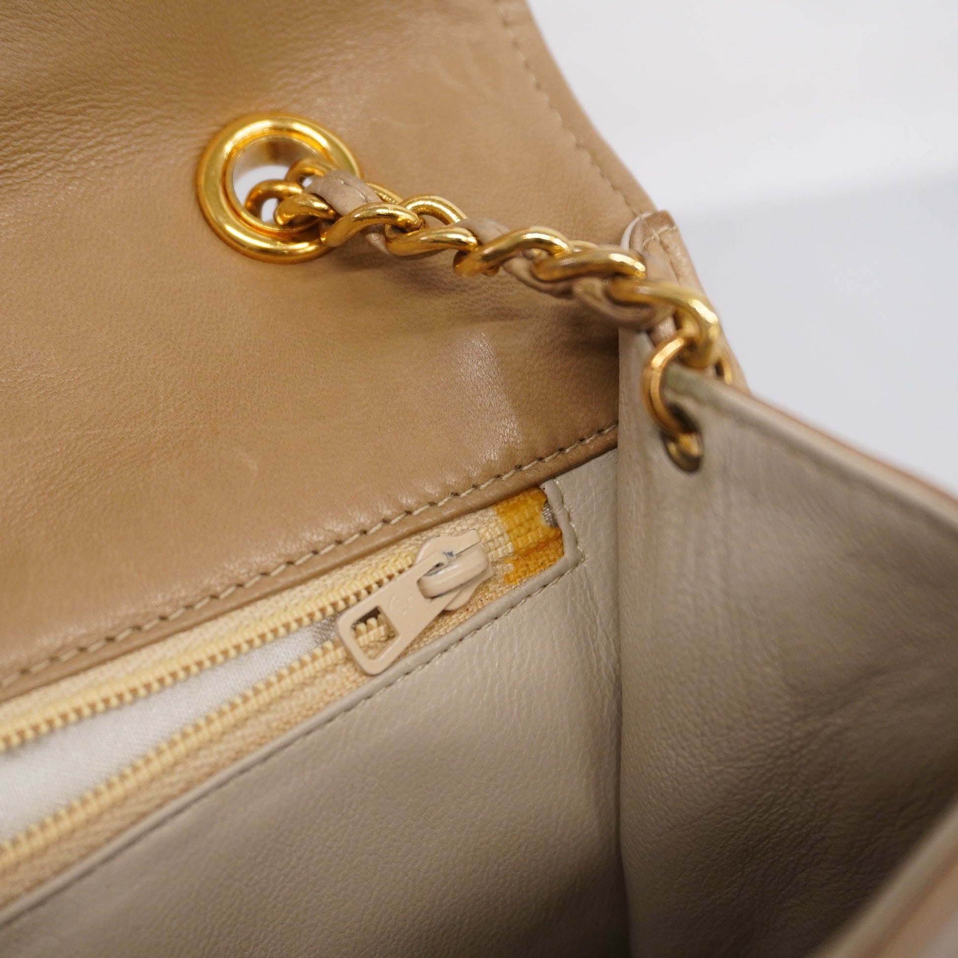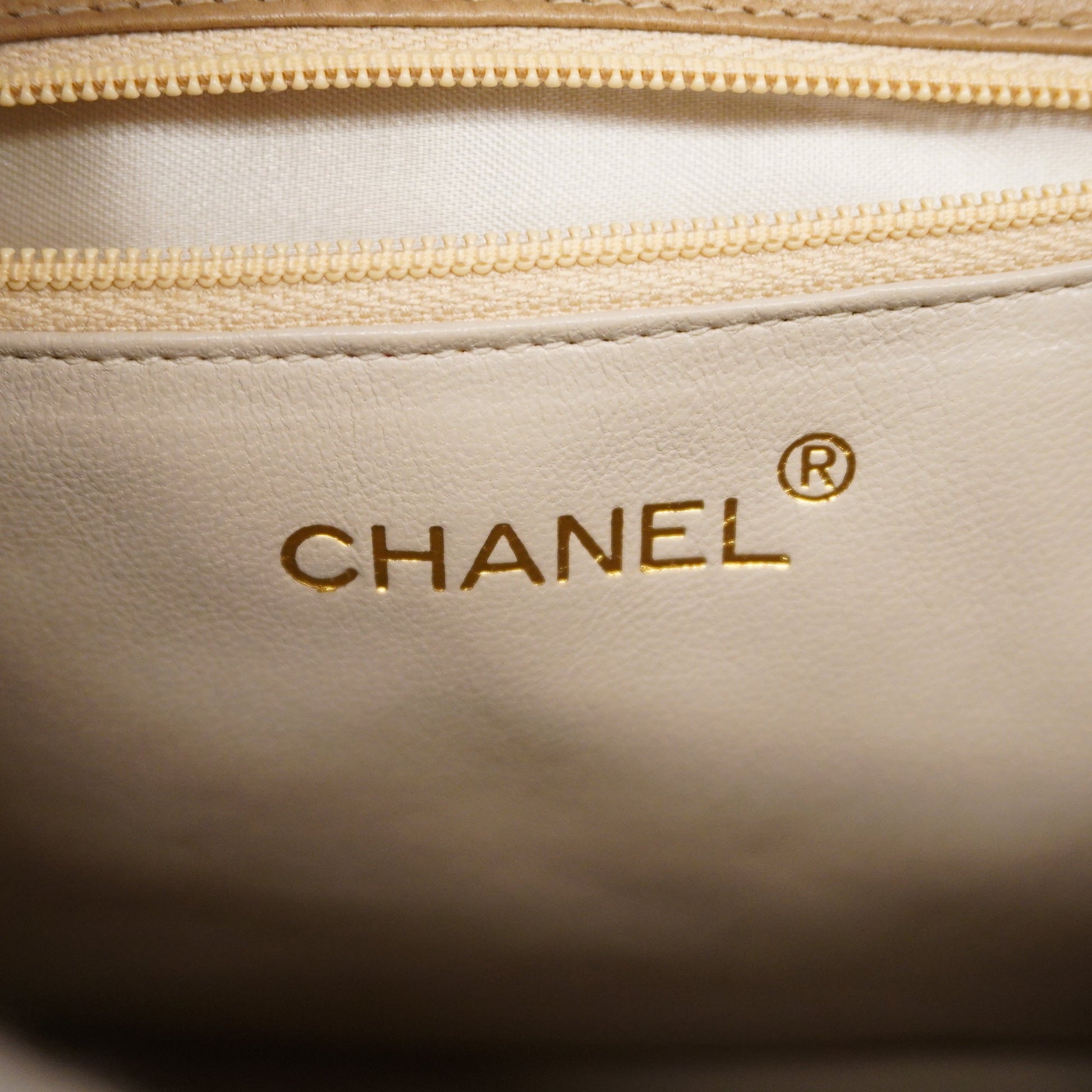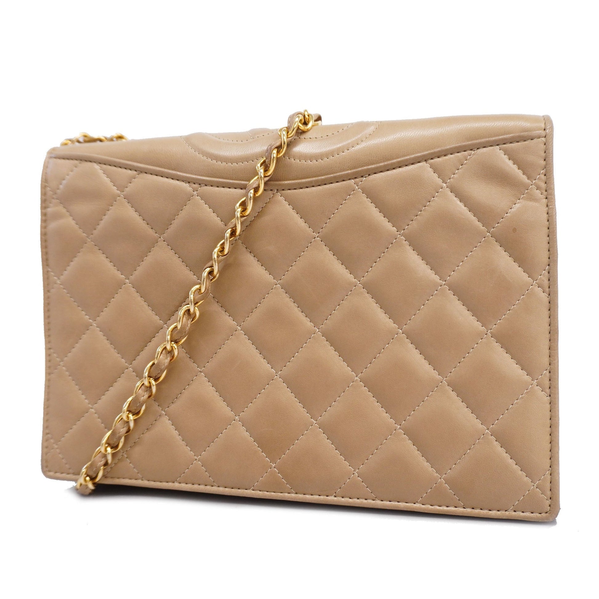 Auth Chanel Matelasse Chain Shoulder Lambskin Women's Leather Shoulder Bag Beige
