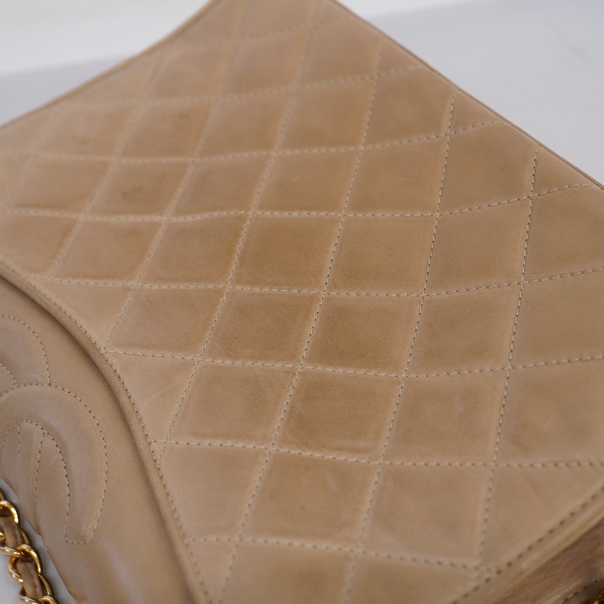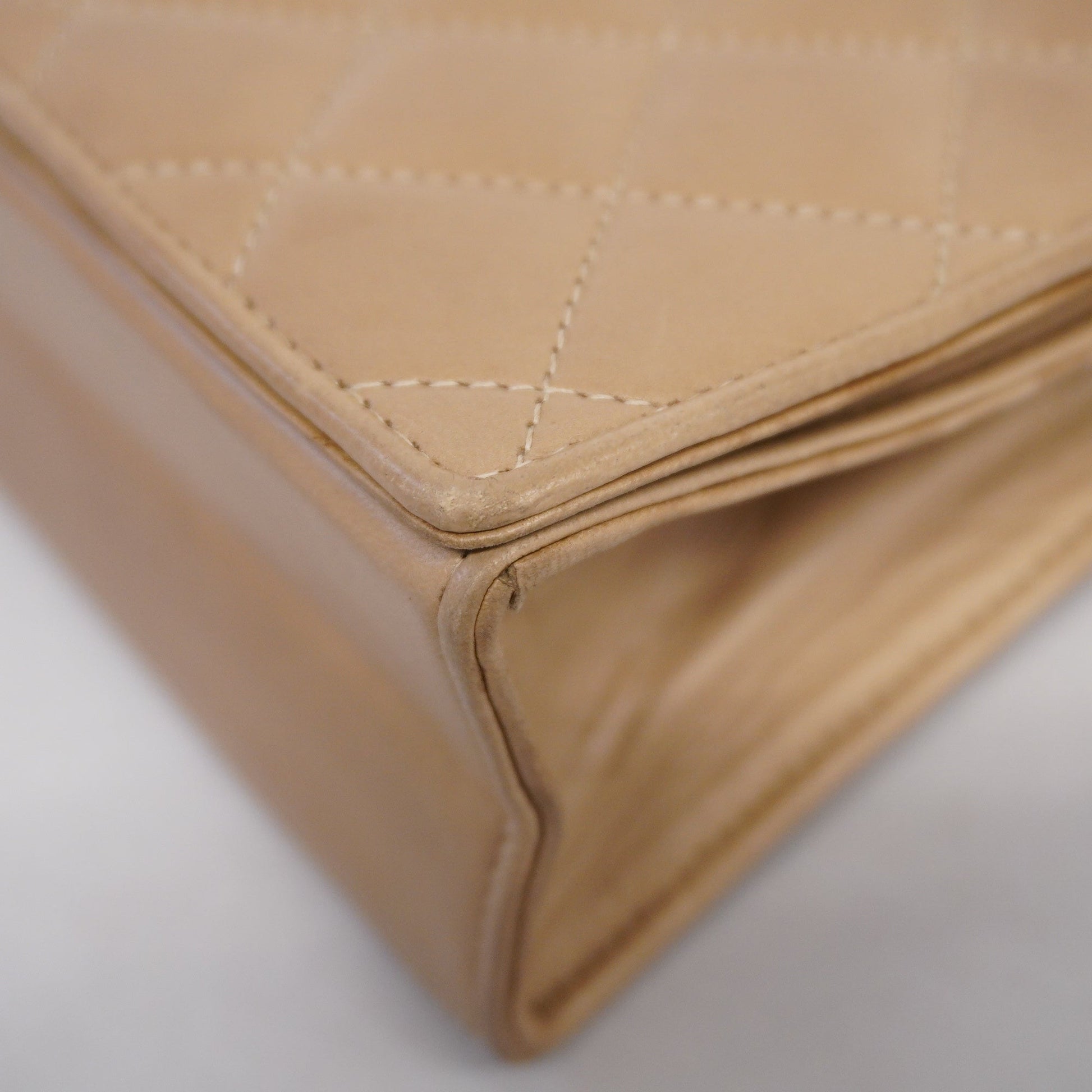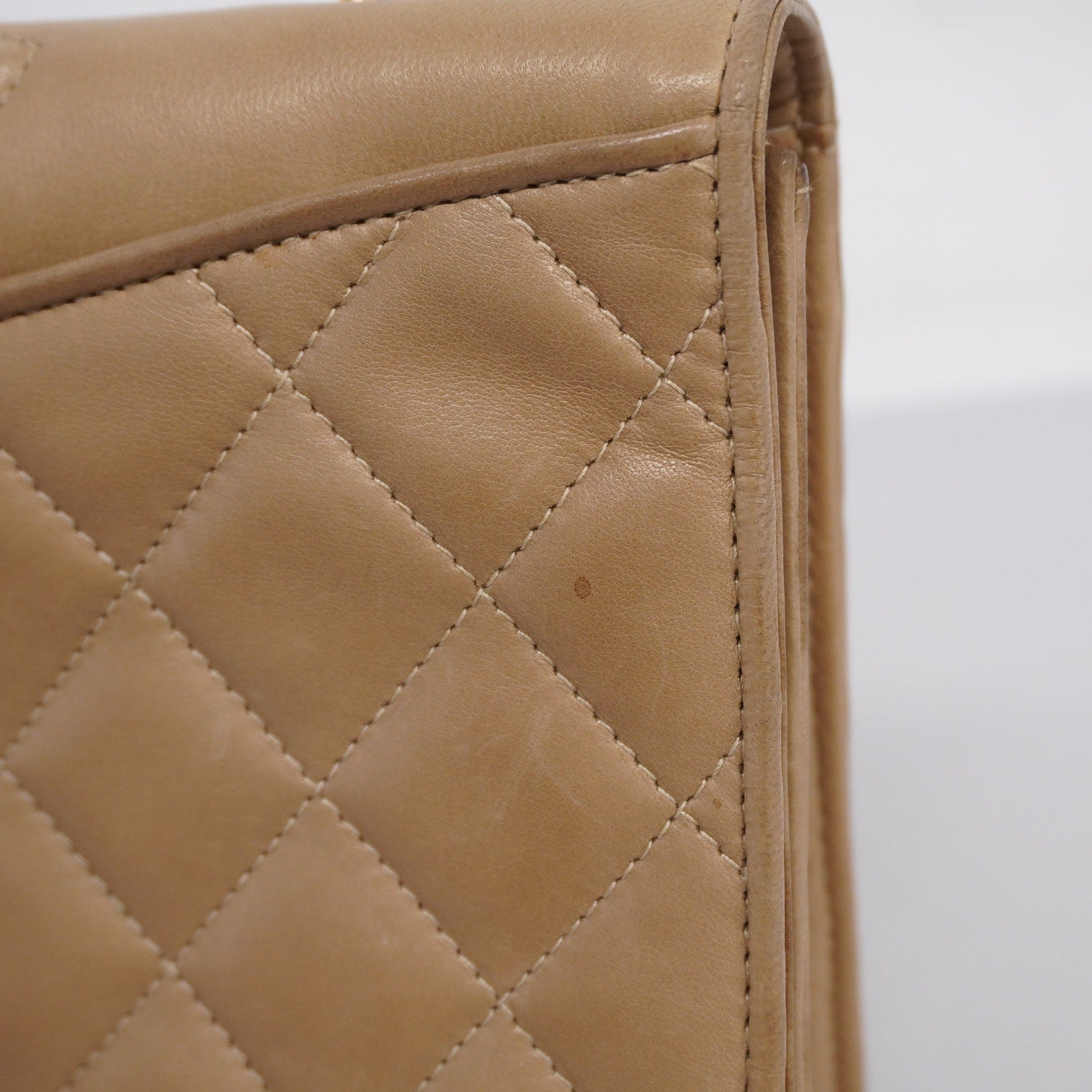 Auth Chanel Matelasse Chain Shoulder Lambskin Women's Leather Shoulder Bag Beige