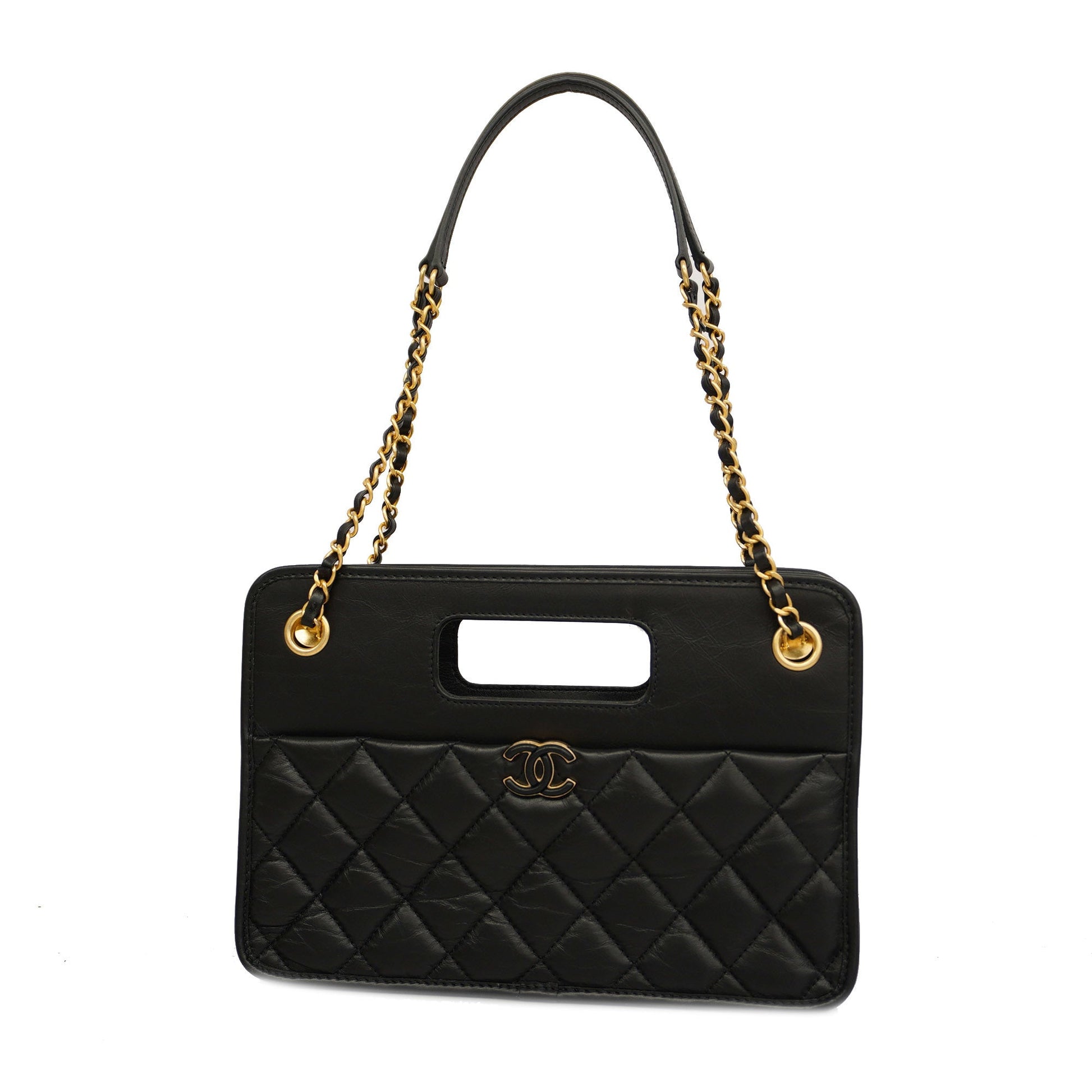 Auth Chanel Matelasse Chain Shoulder Lambskin Women's Leather Shoulder Bag Black