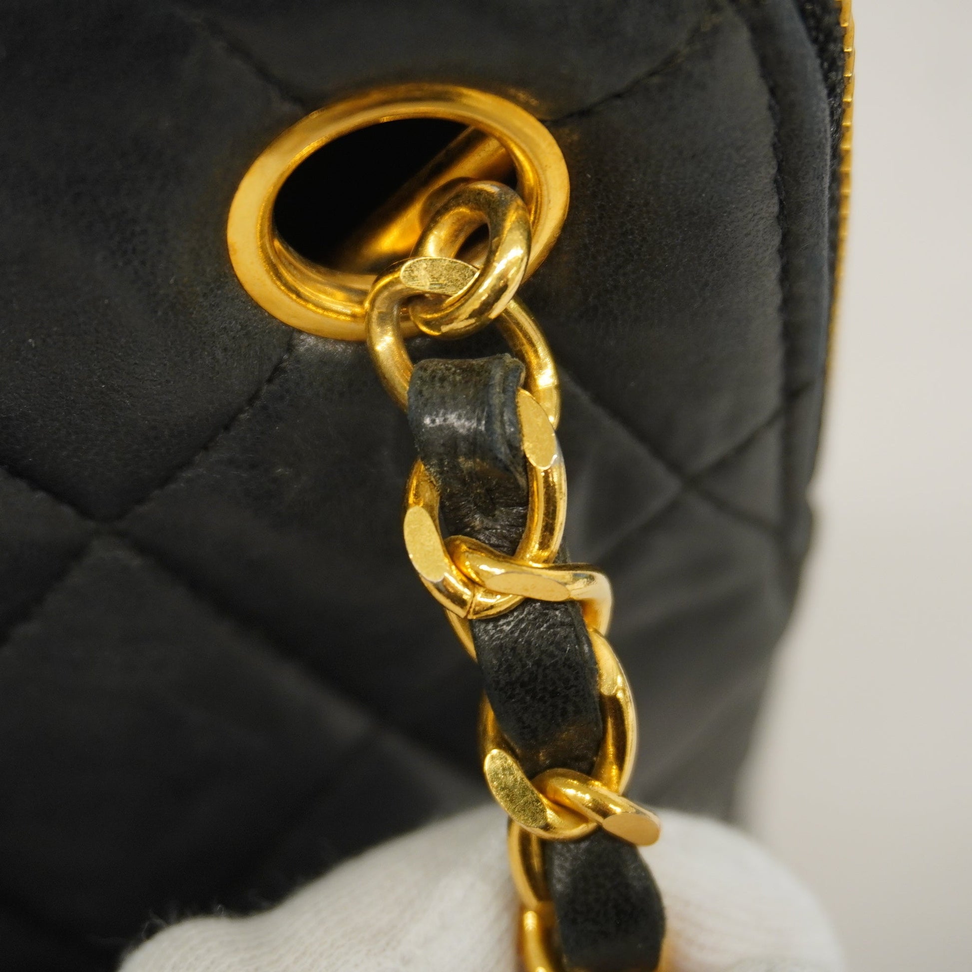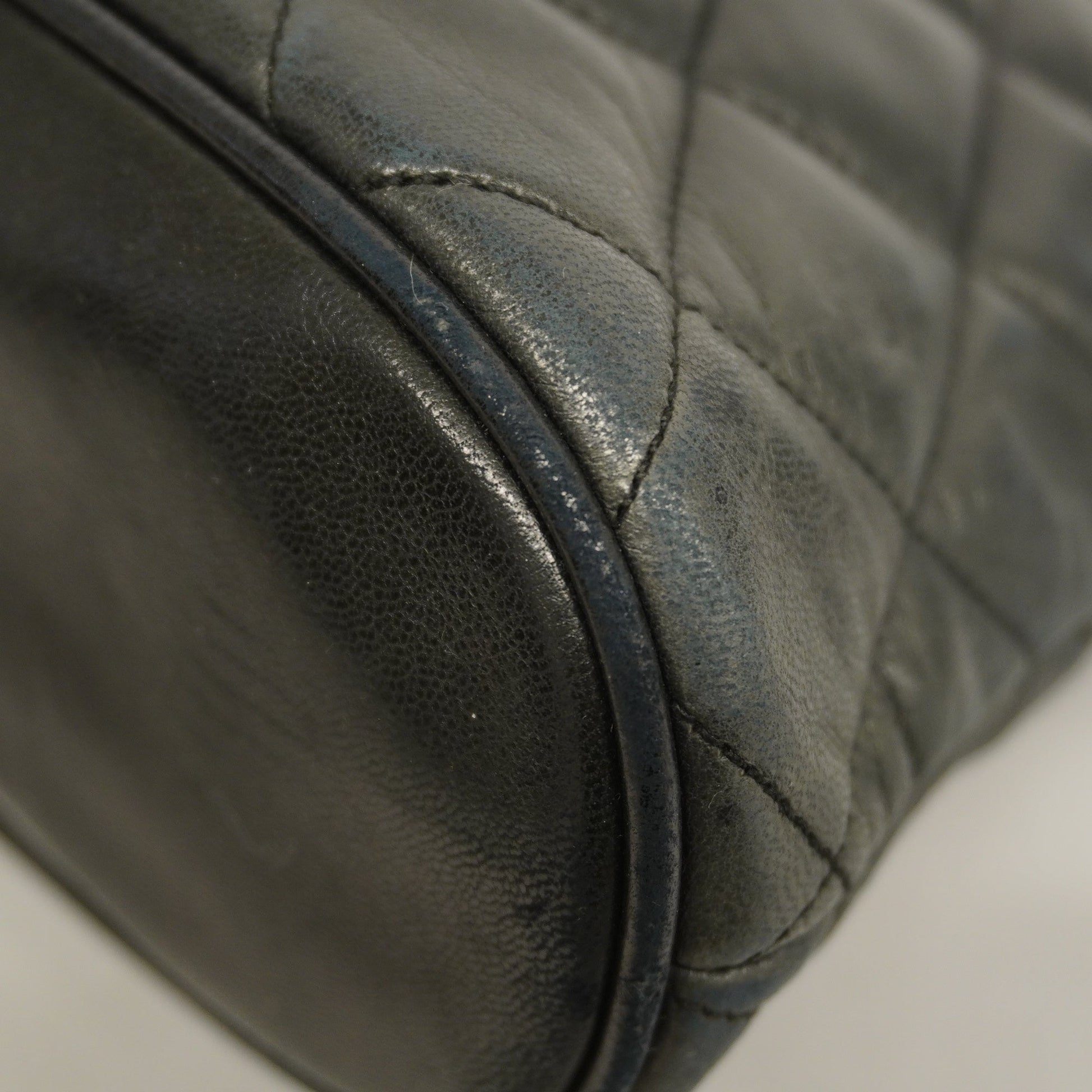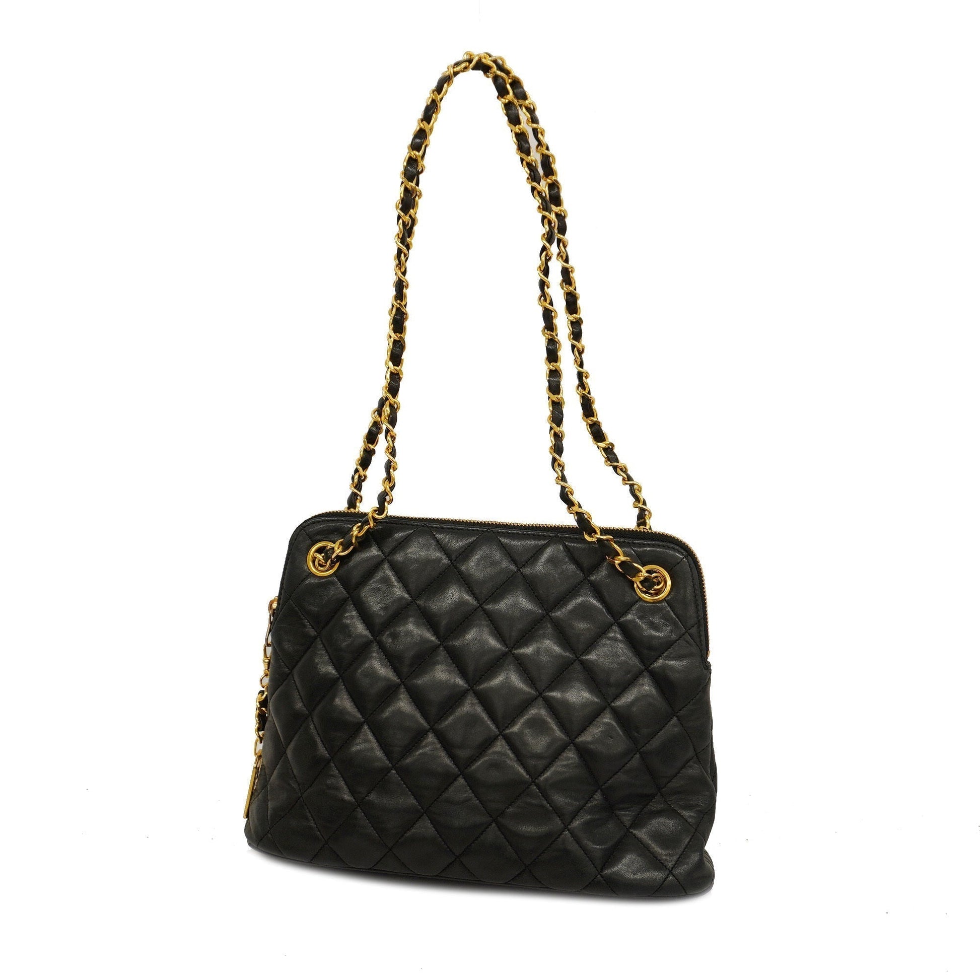 Auth Chanel Matelasse Chain Shoulder With Fringes Leather Shoulder Bag Black