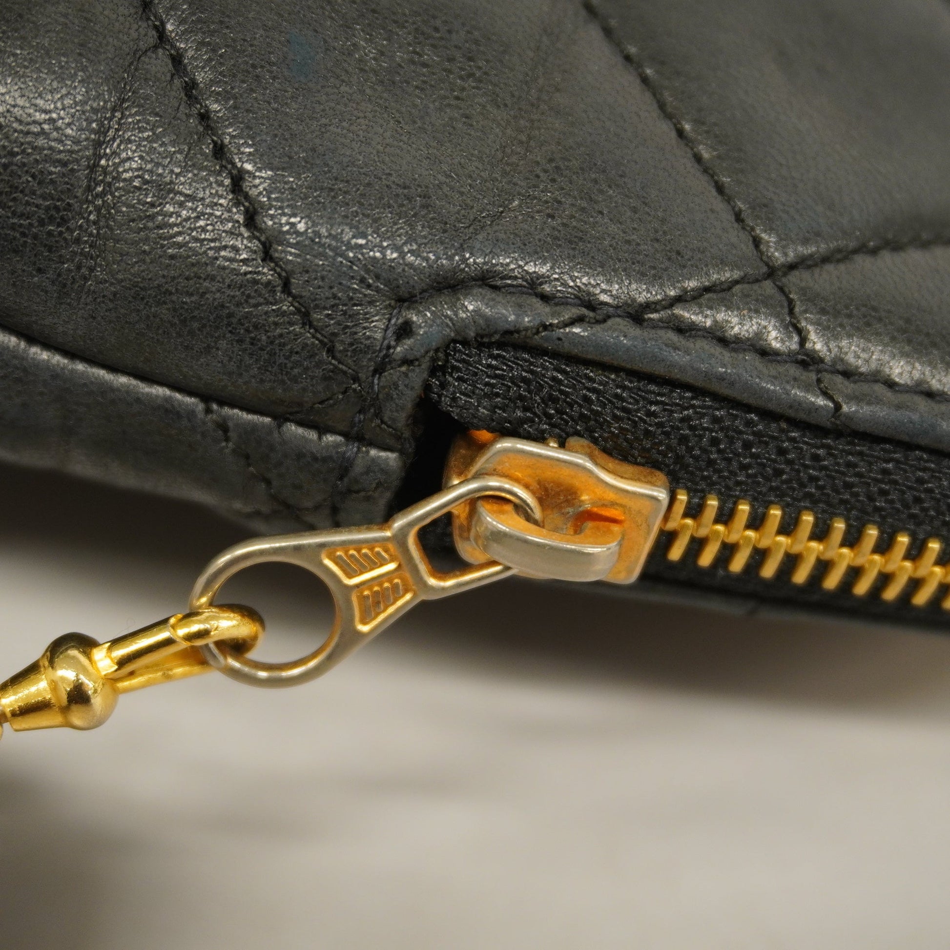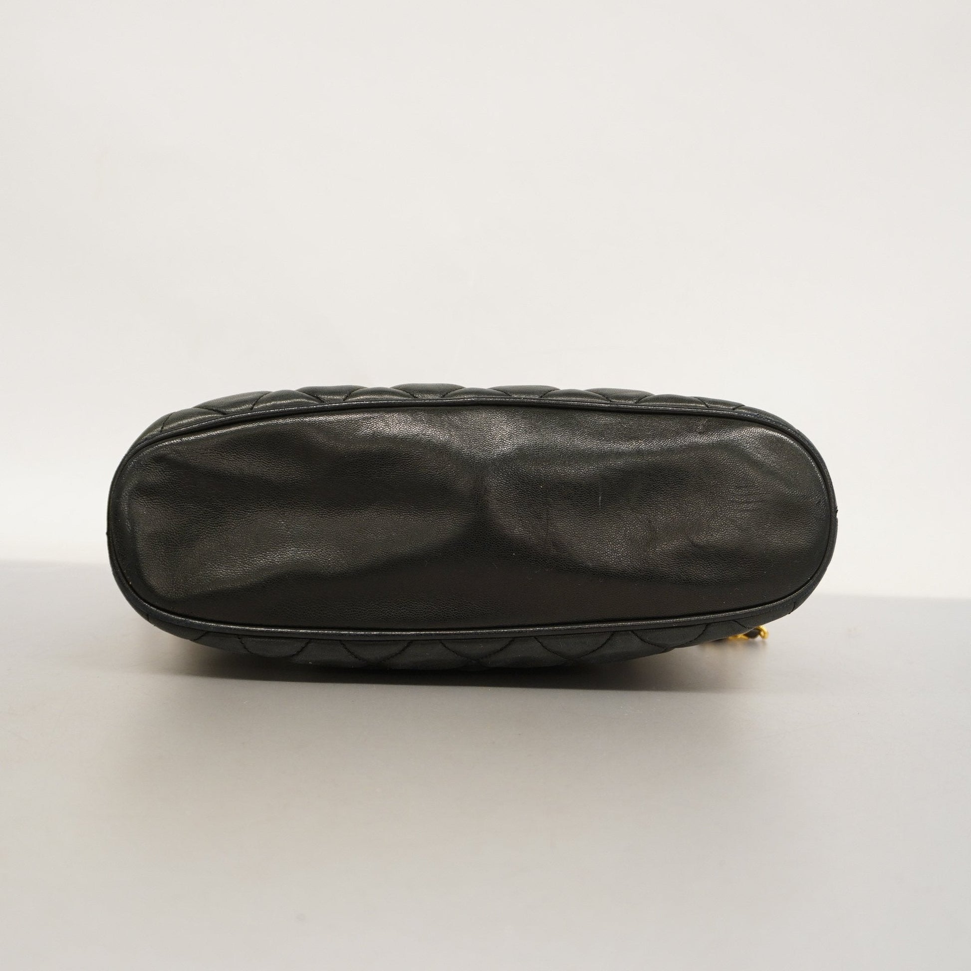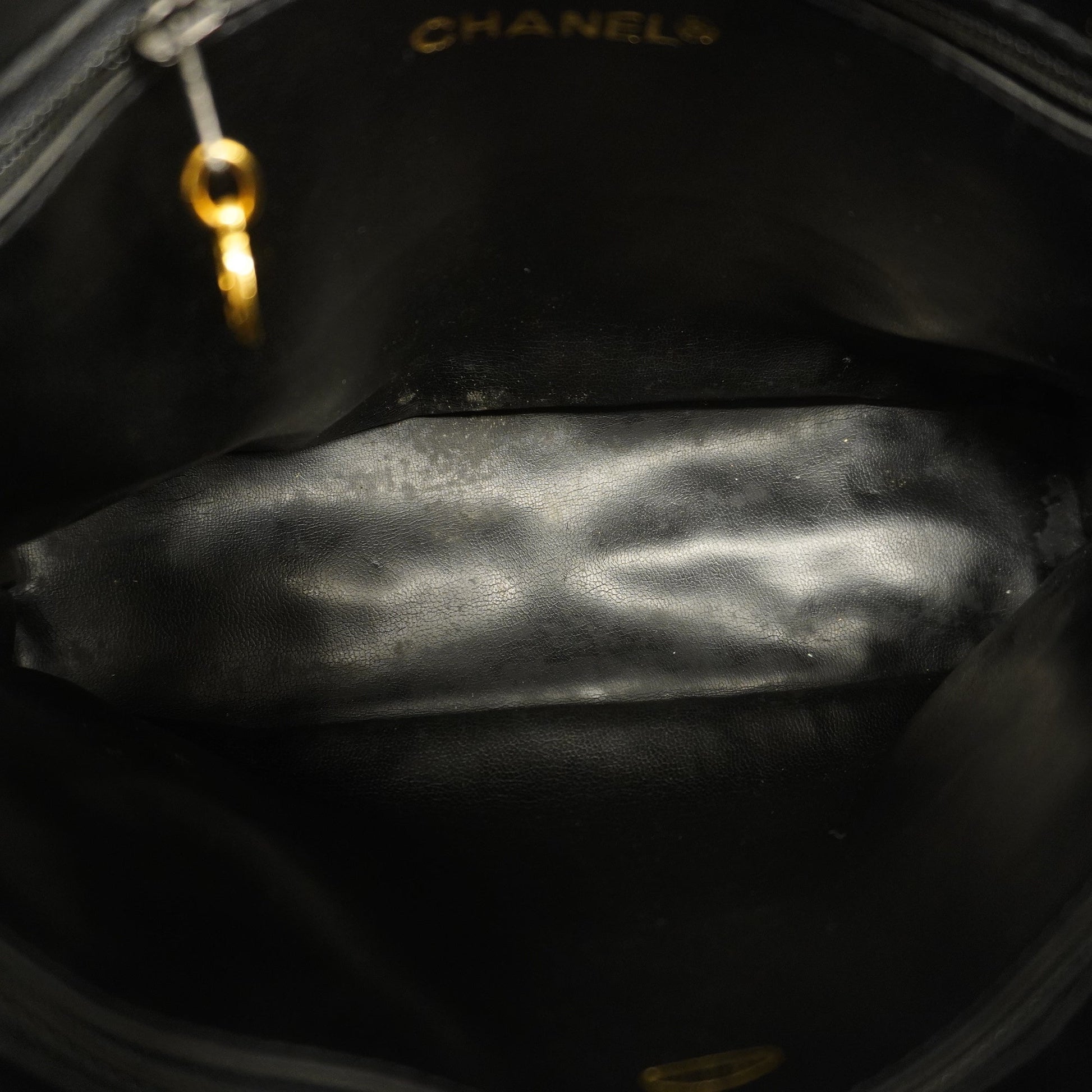 Auth Chanel Matelasse Chain Shoulder With Fringes Leather Shoulder Bag Black