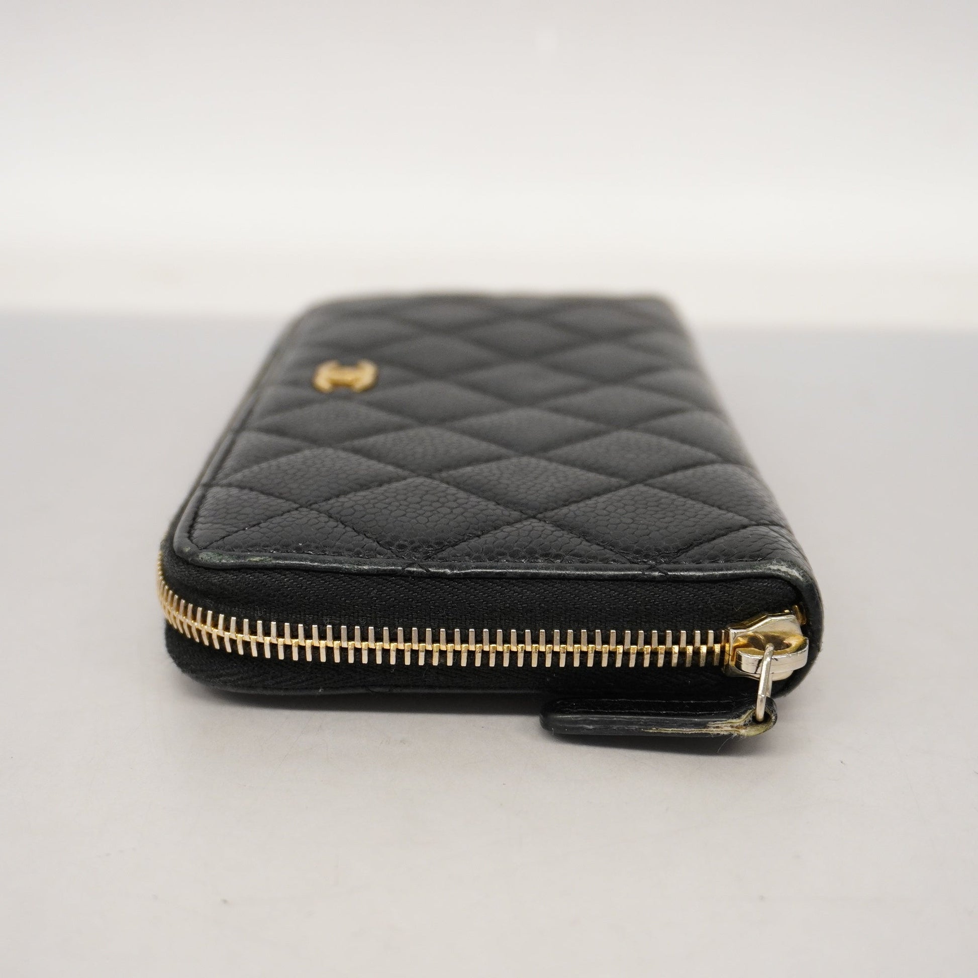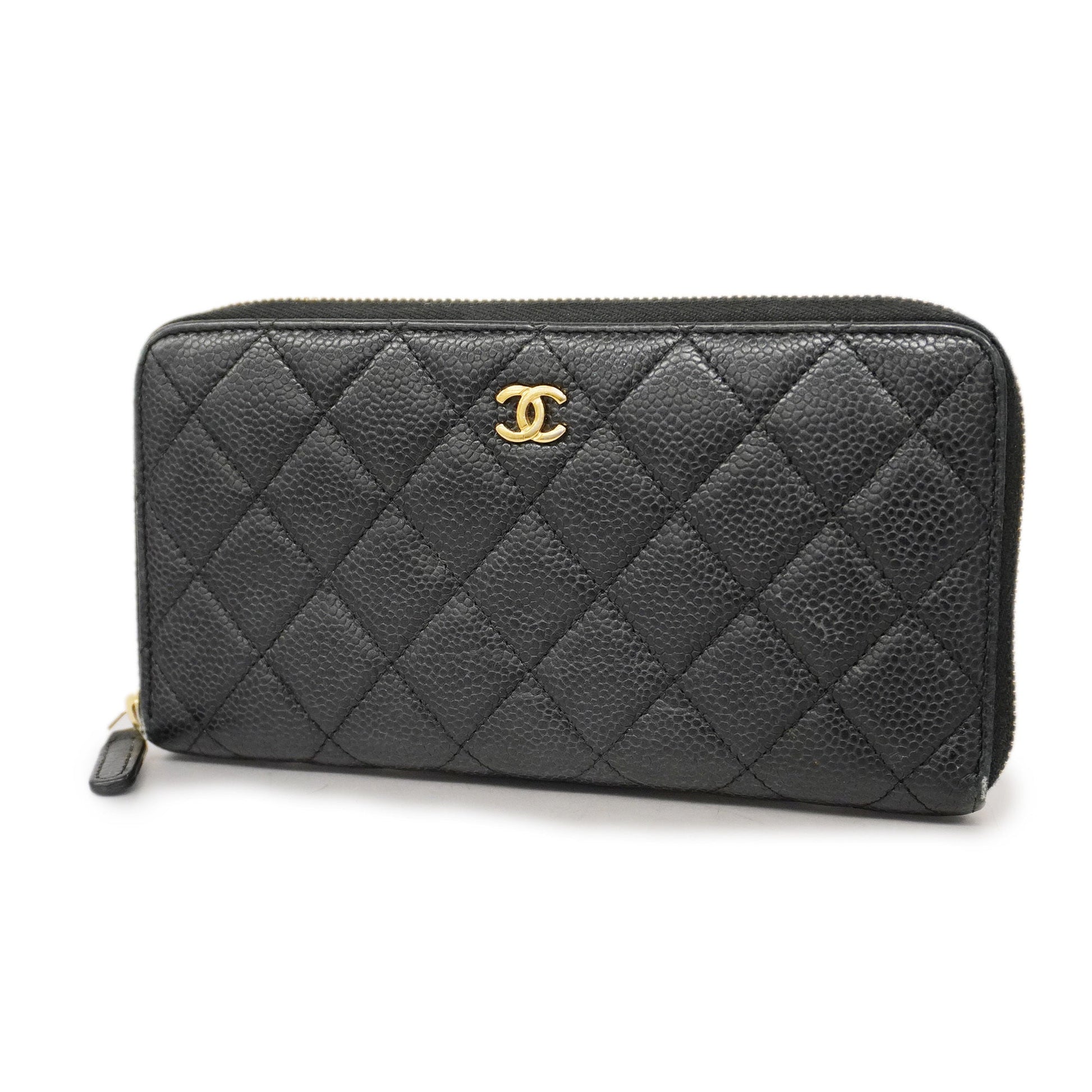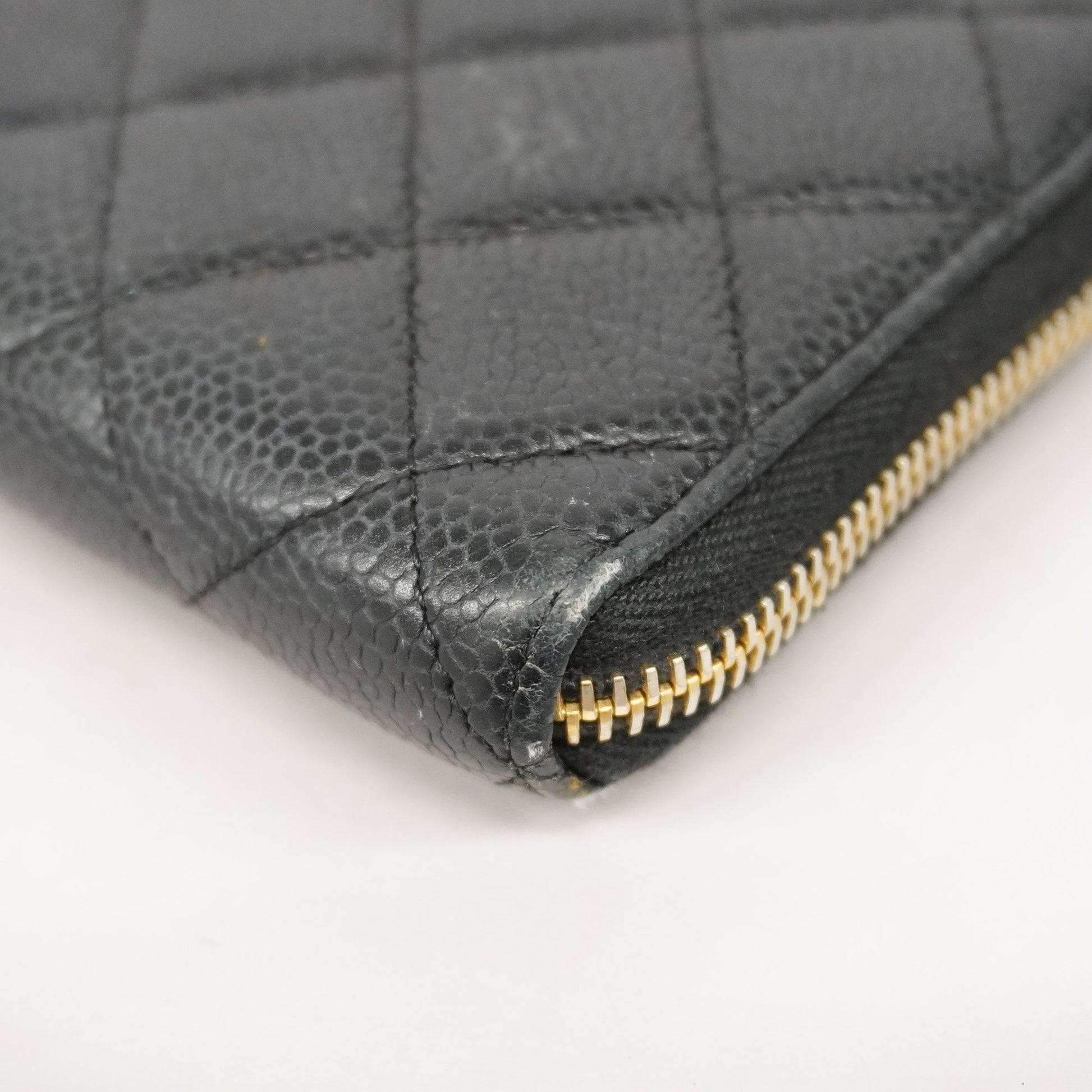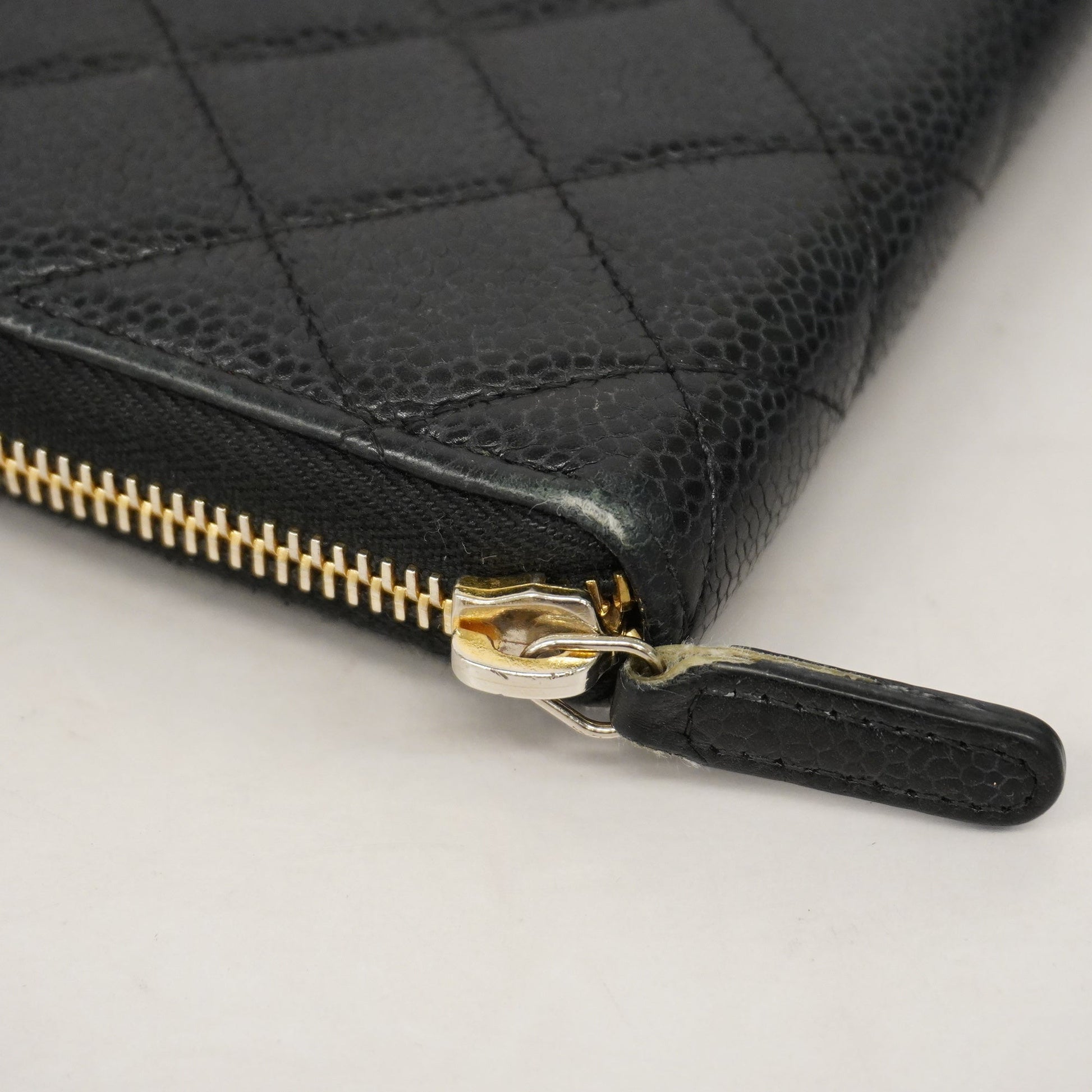 ChanelAuth Matelasse Gold Hardware Women's Caviar Leather Long Wallet Black