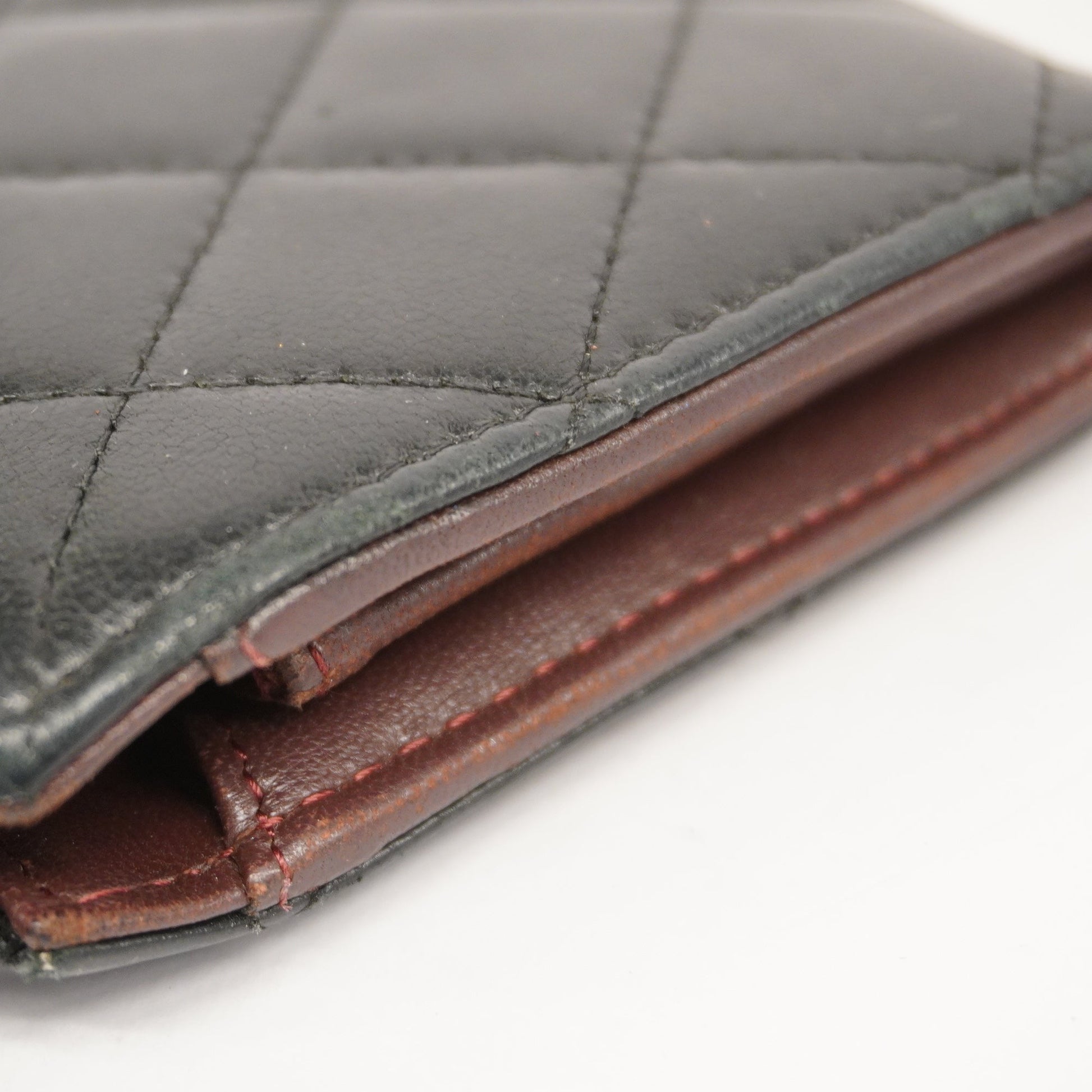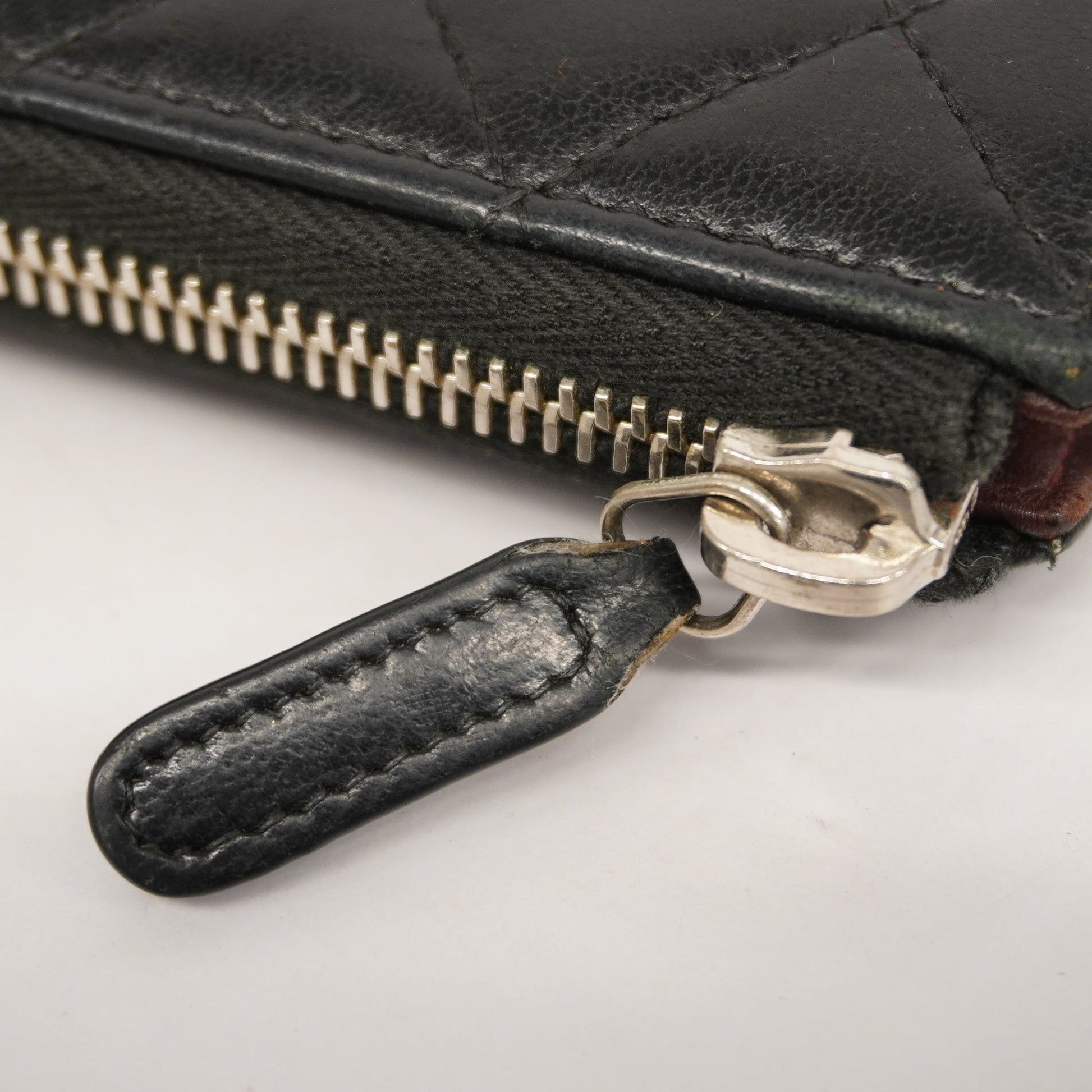 Auth Chanel Matelasse Long Wallet Silver Metal Fittings Women's Lambskin Black