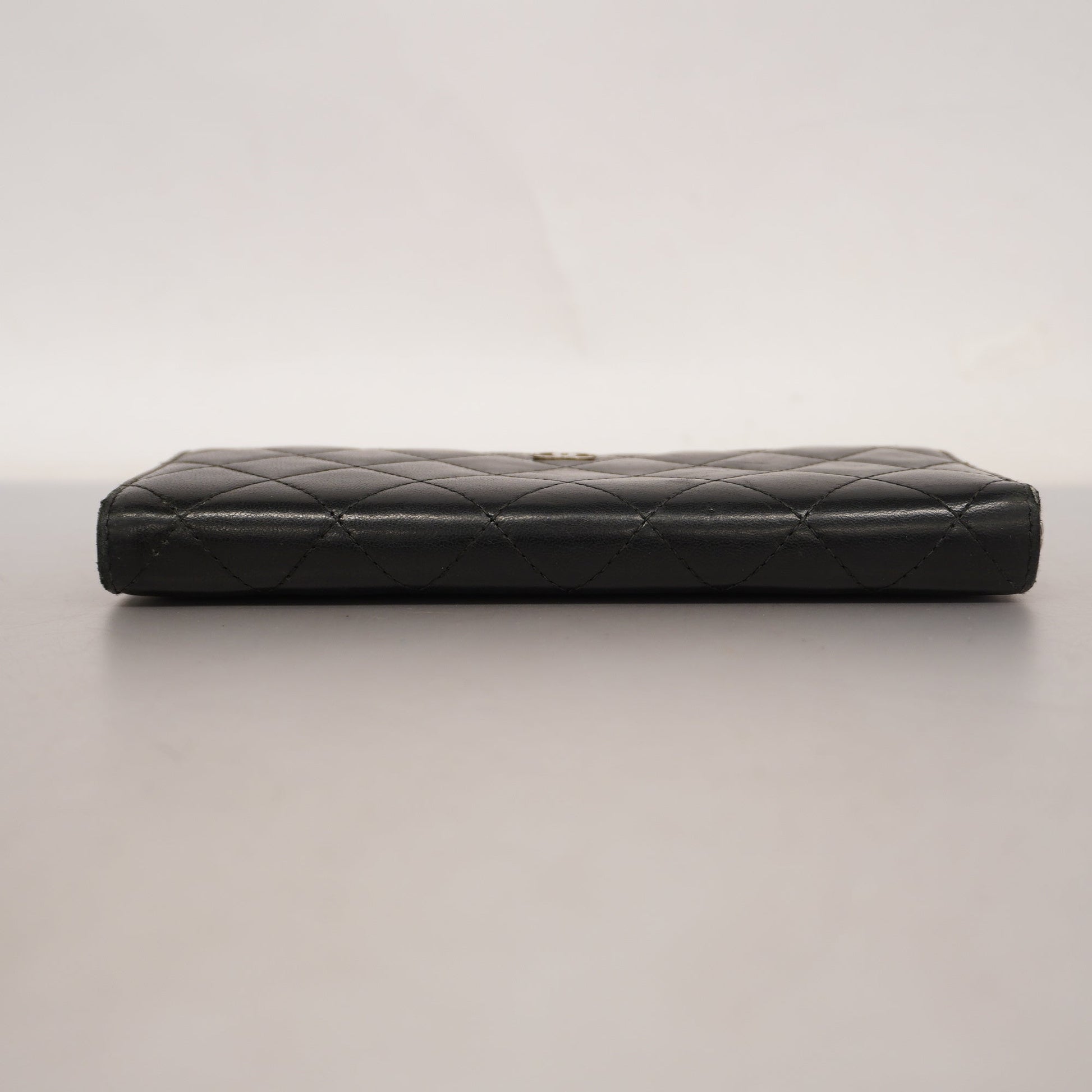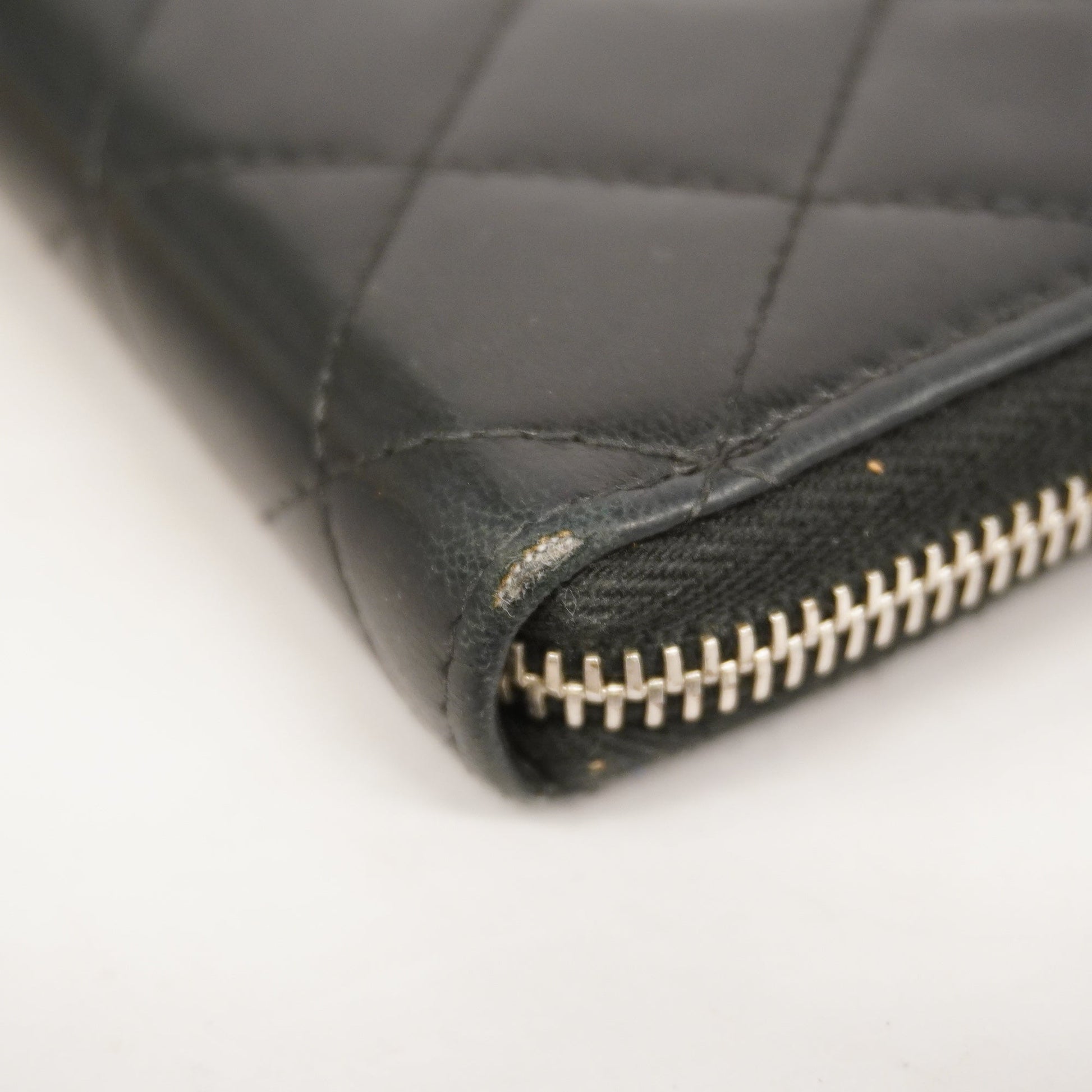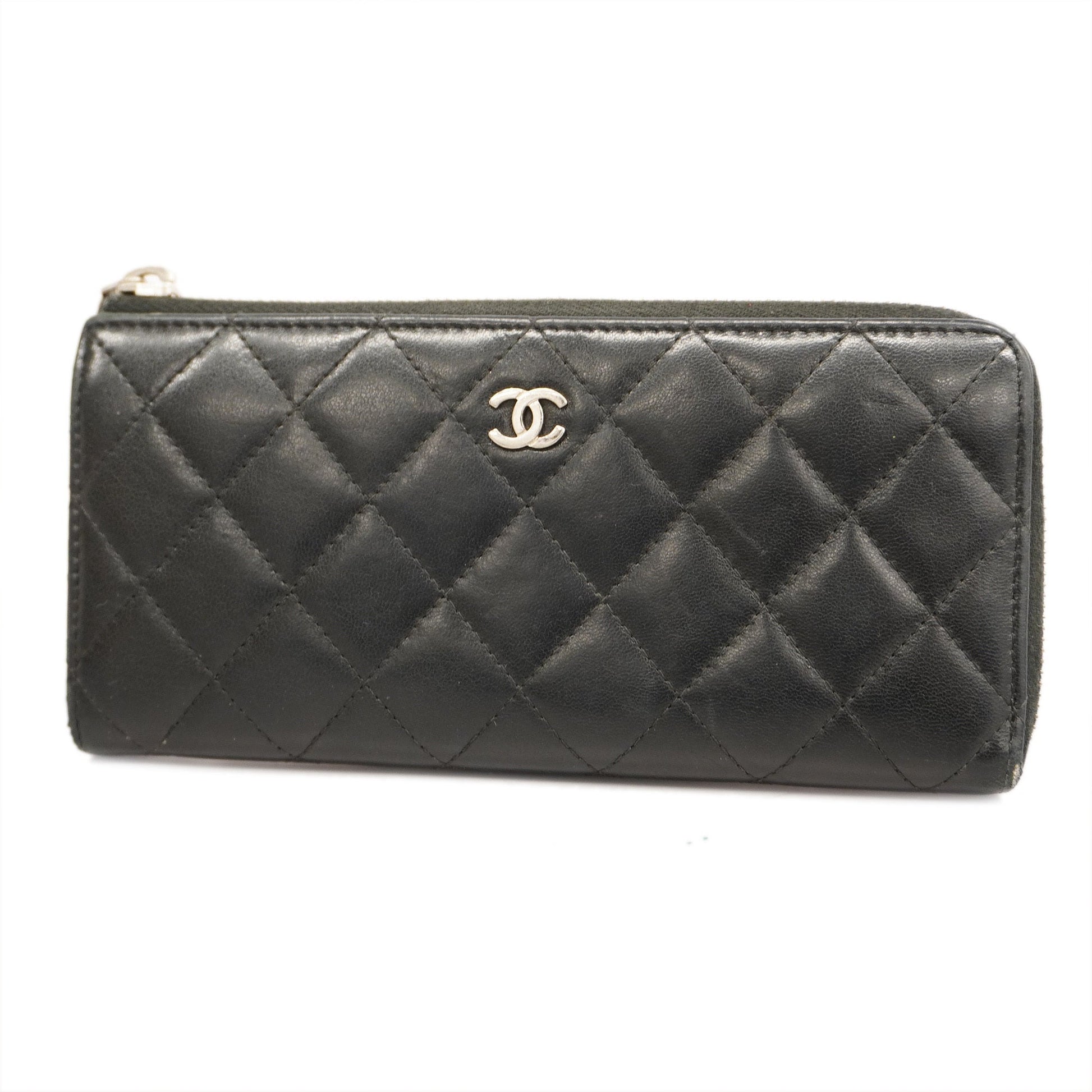 ChanelAuth Matelasse Long Wallet Silver Metal Fittings Women's Lambskin Black
