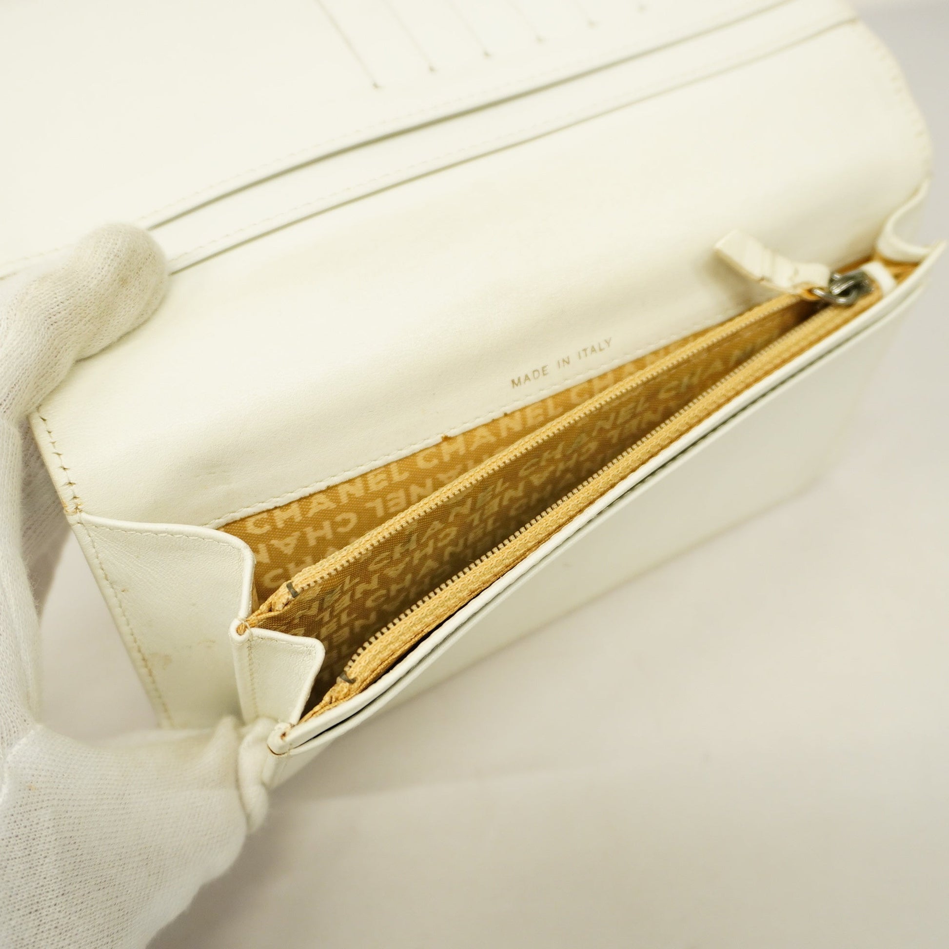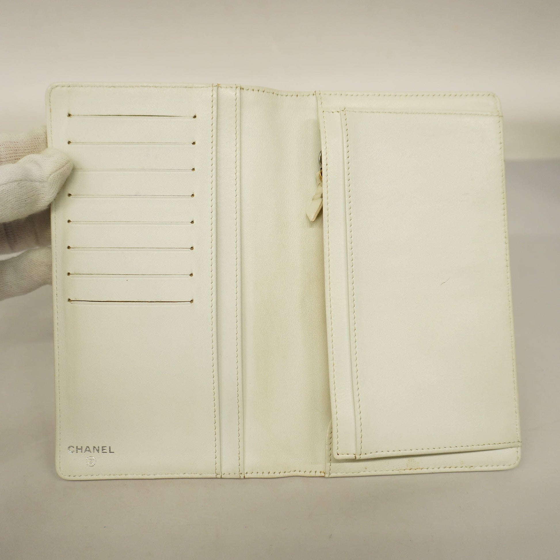 Auth Chanel Matelasse Long Wallet Silver Metal Fittings Women's Lambskin Wallet