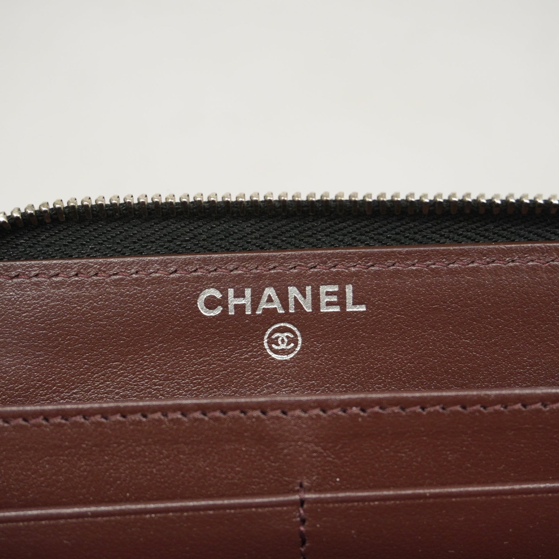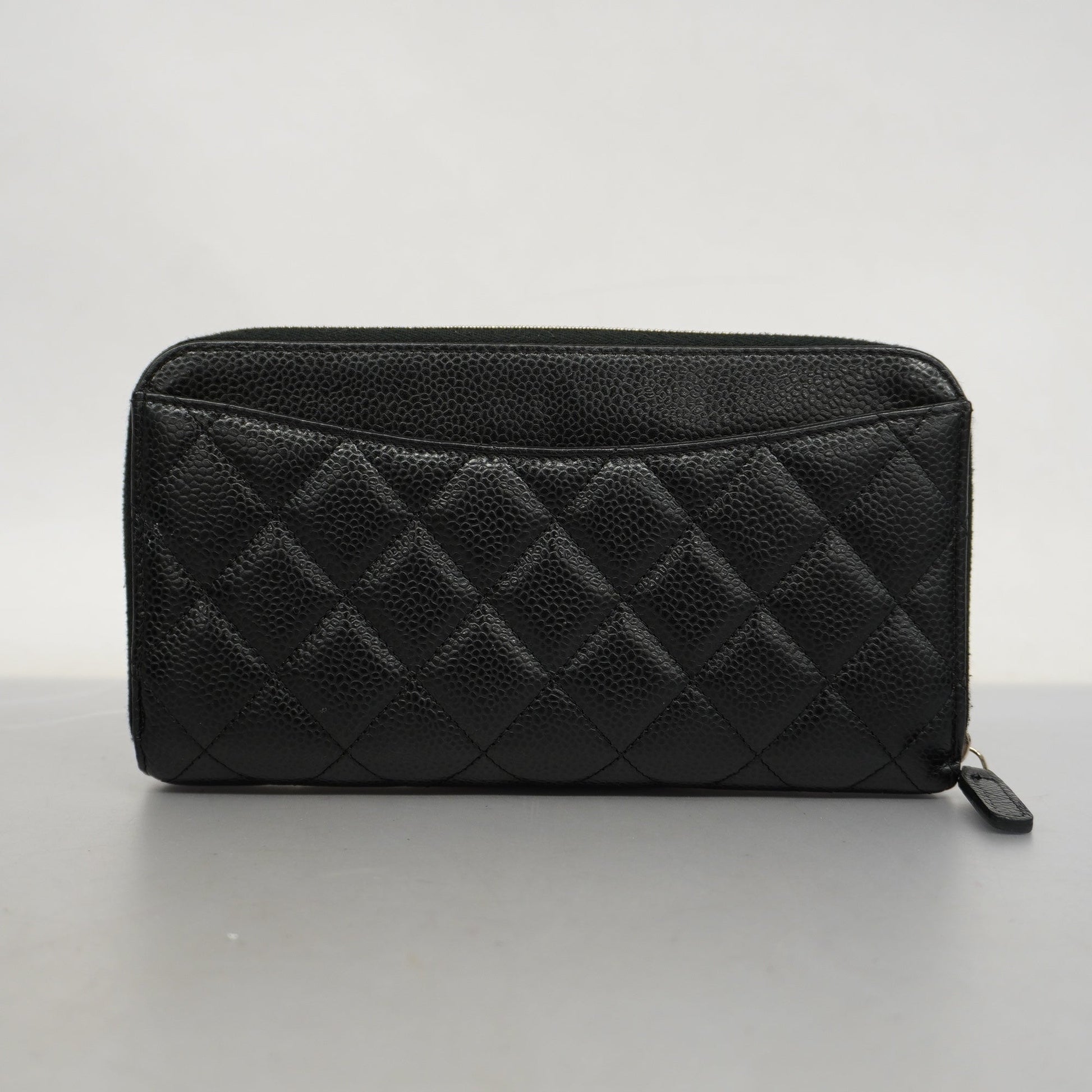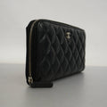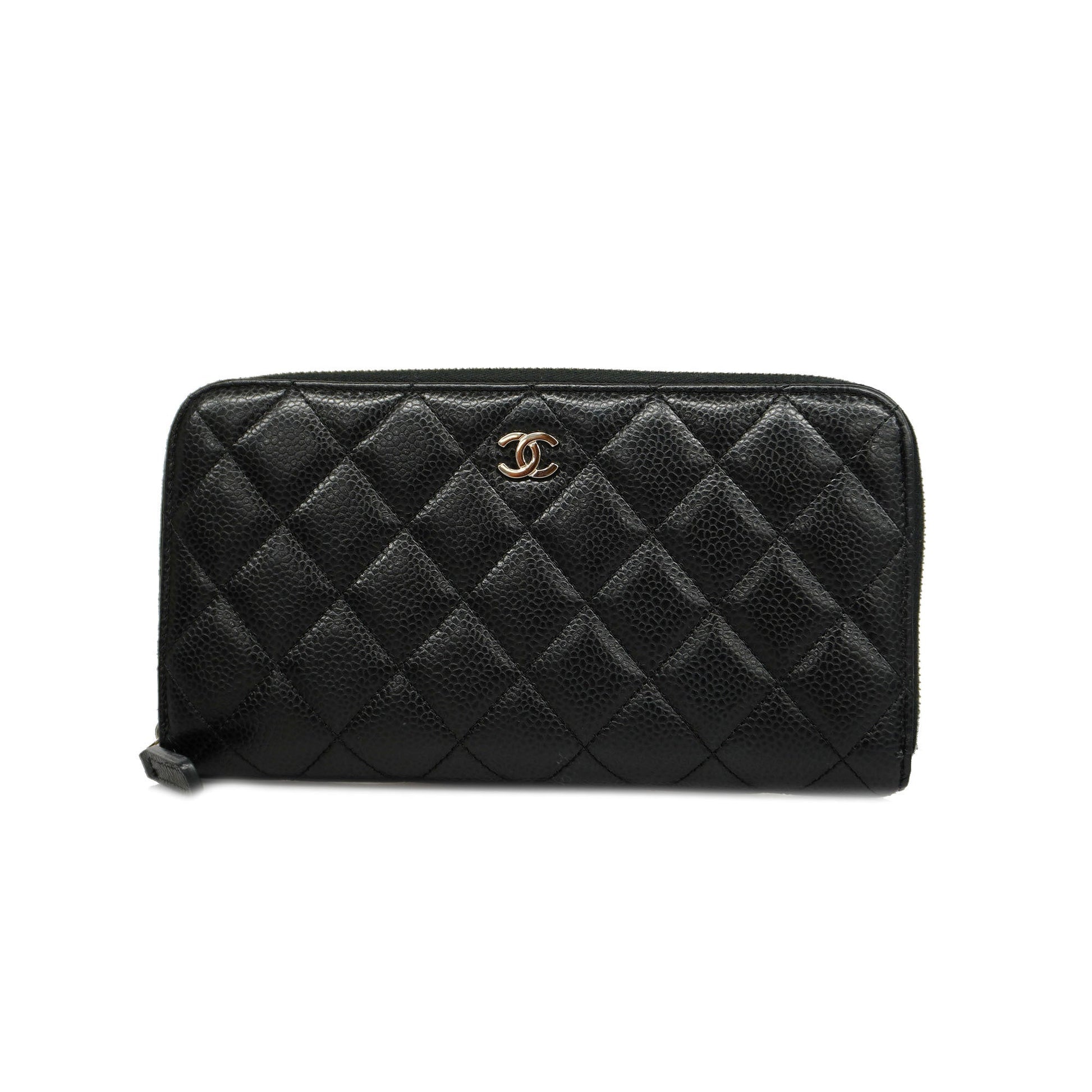 ChanelAuth Matelasse Silver Metal Fittings Women's Caviar Leather Long Wallet