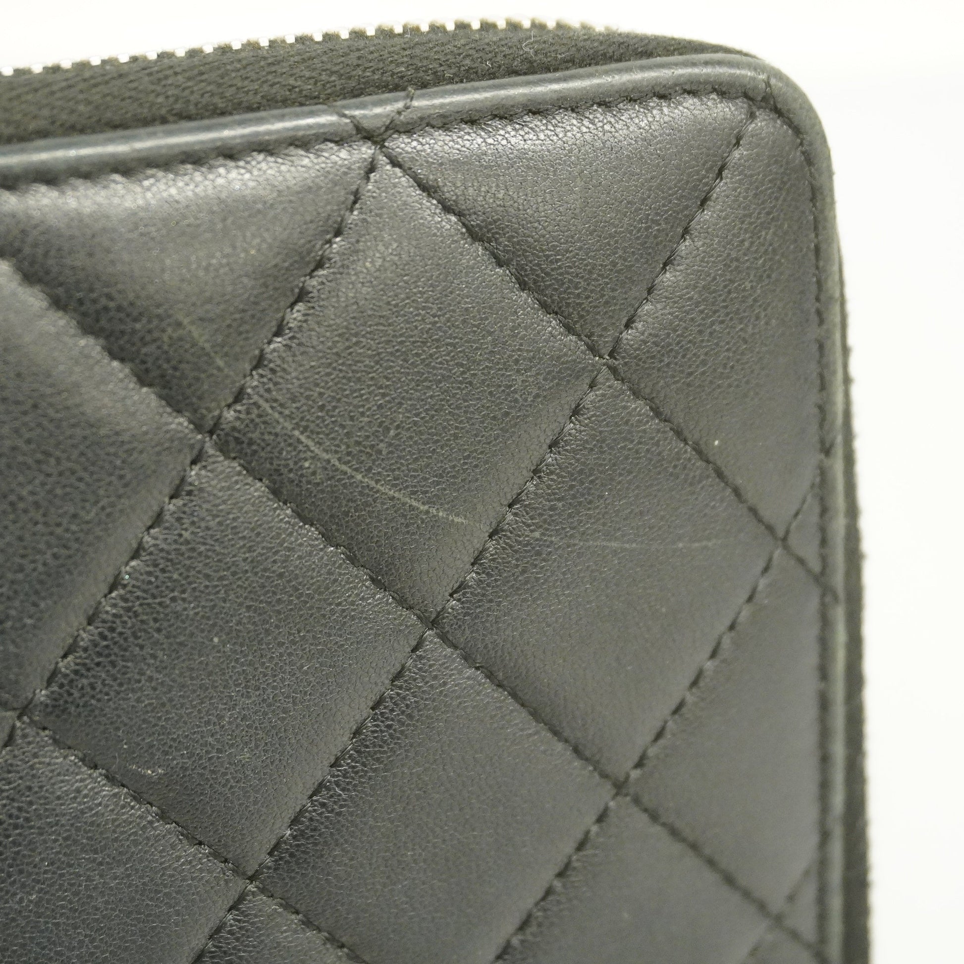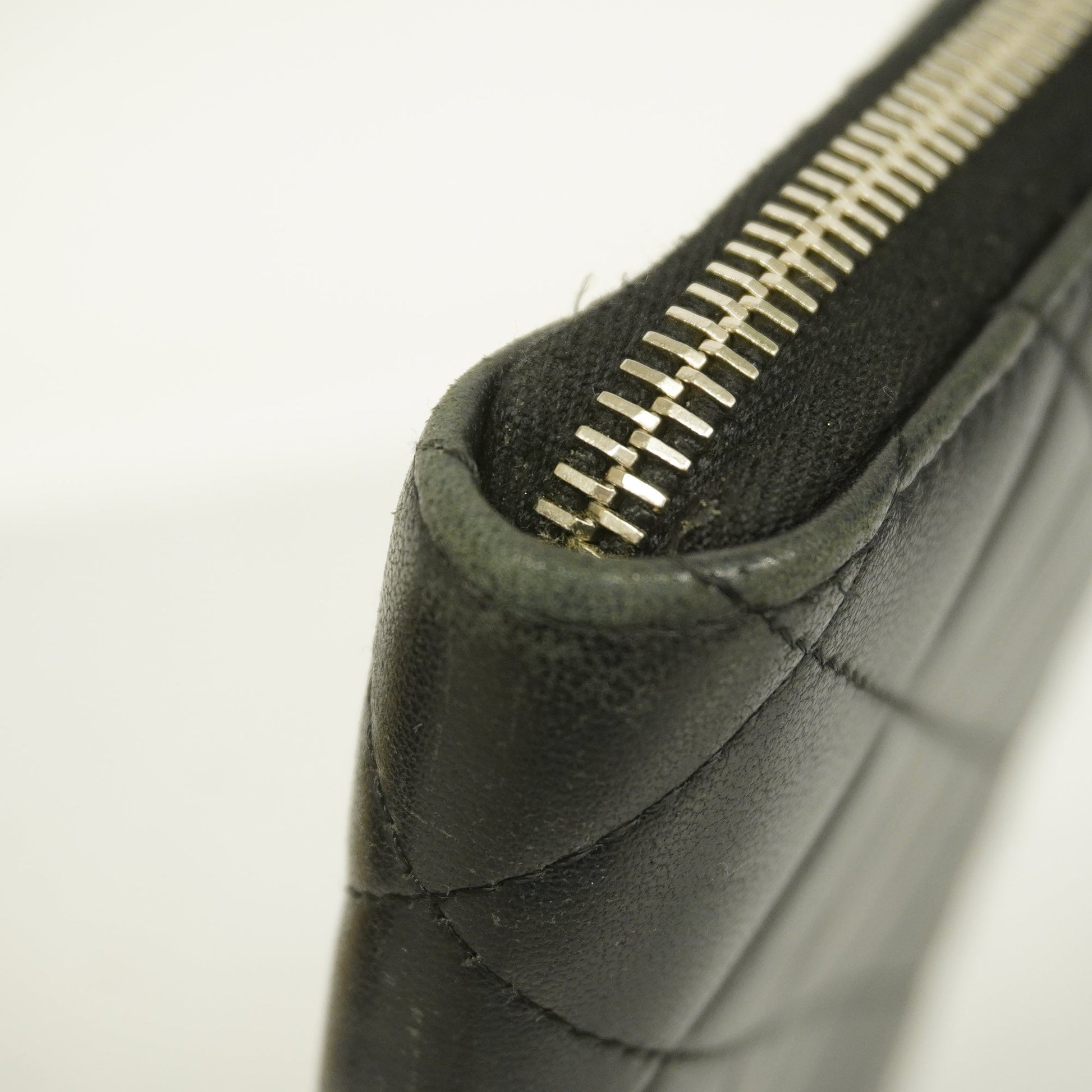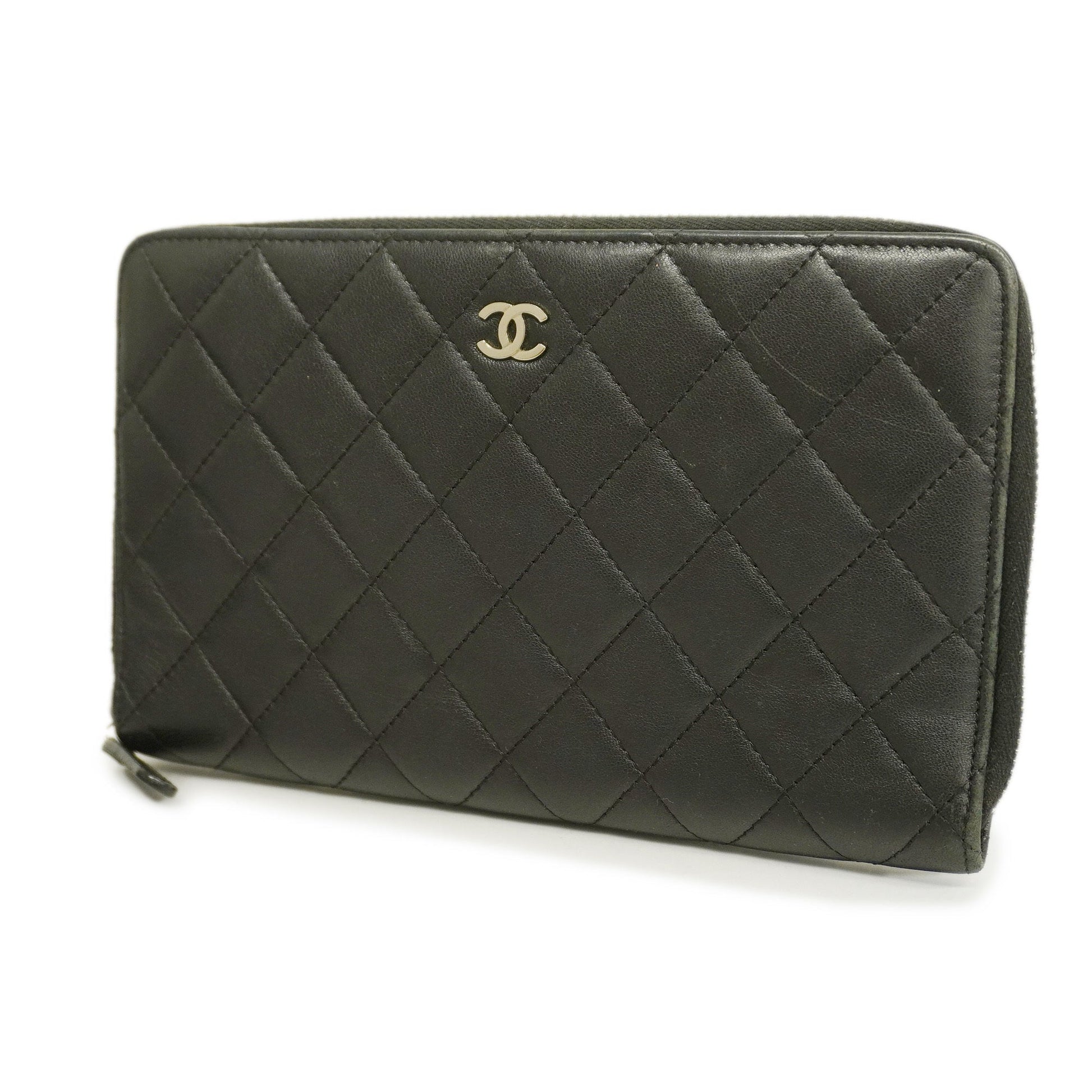 ChanelAuth Matelasse Silver Metal Fittings Women's Lambskin Long Wallet