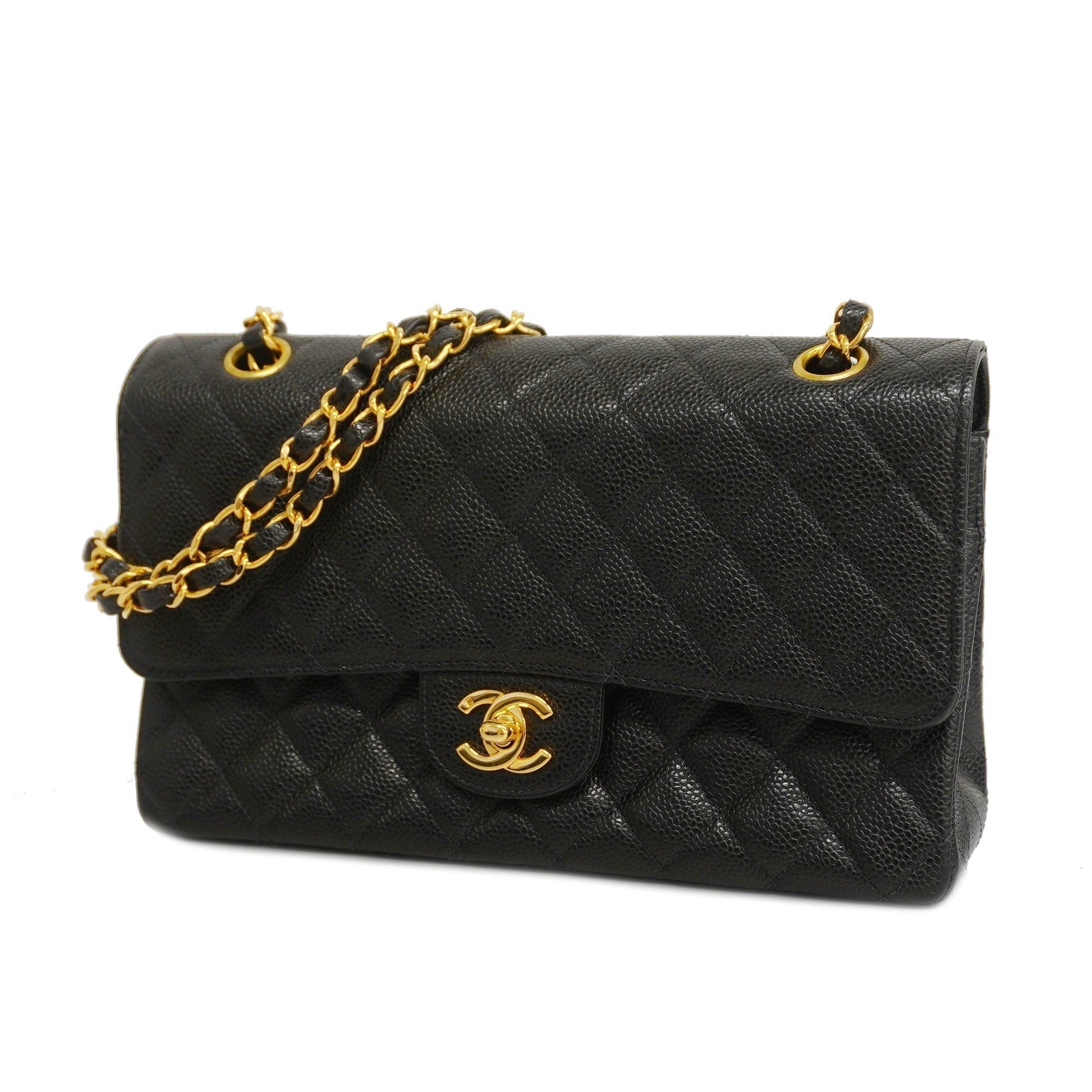 ChanelAuth Matelasse W Flap W Chain Lambskin Women's Leather Shoulder Bag Black