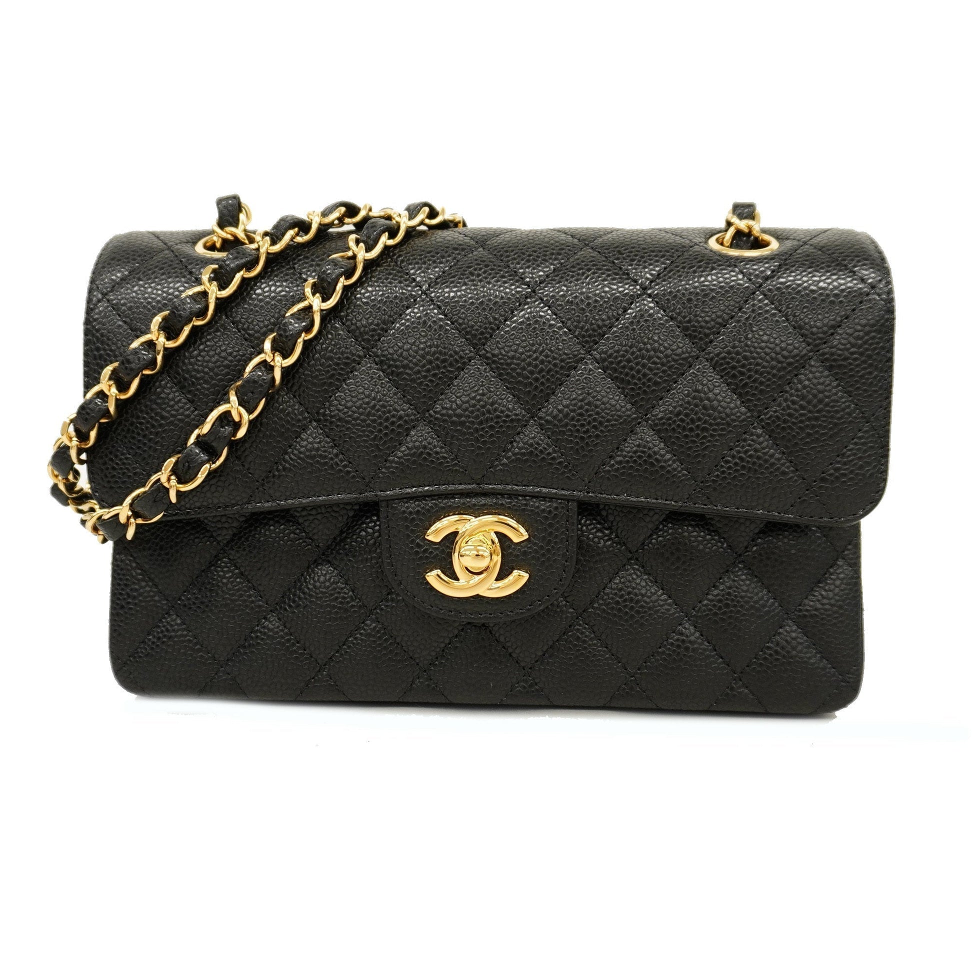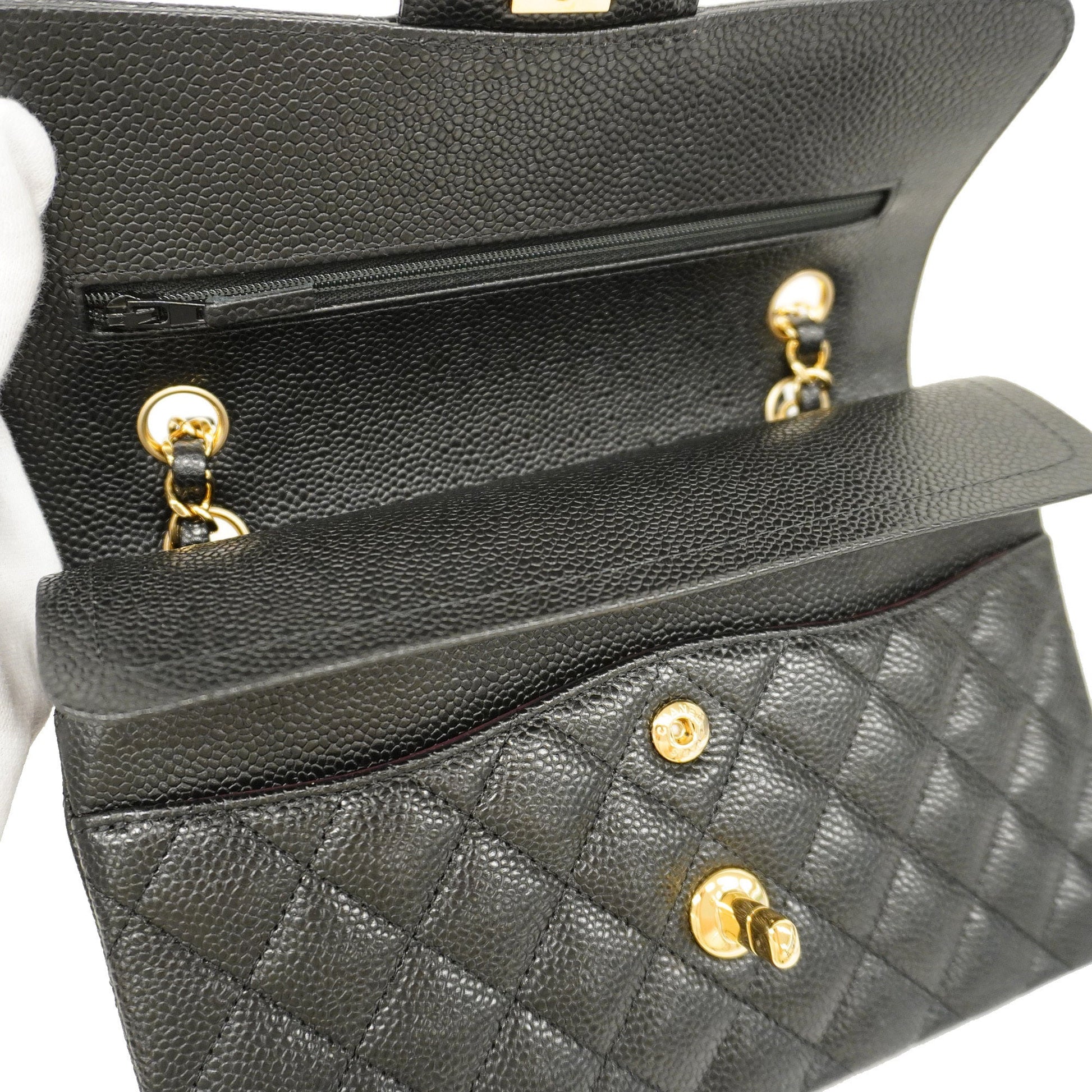 ChanelAuth Matelasse W Flap W Chain Women's Caviar Leather Shoulder Bag Black