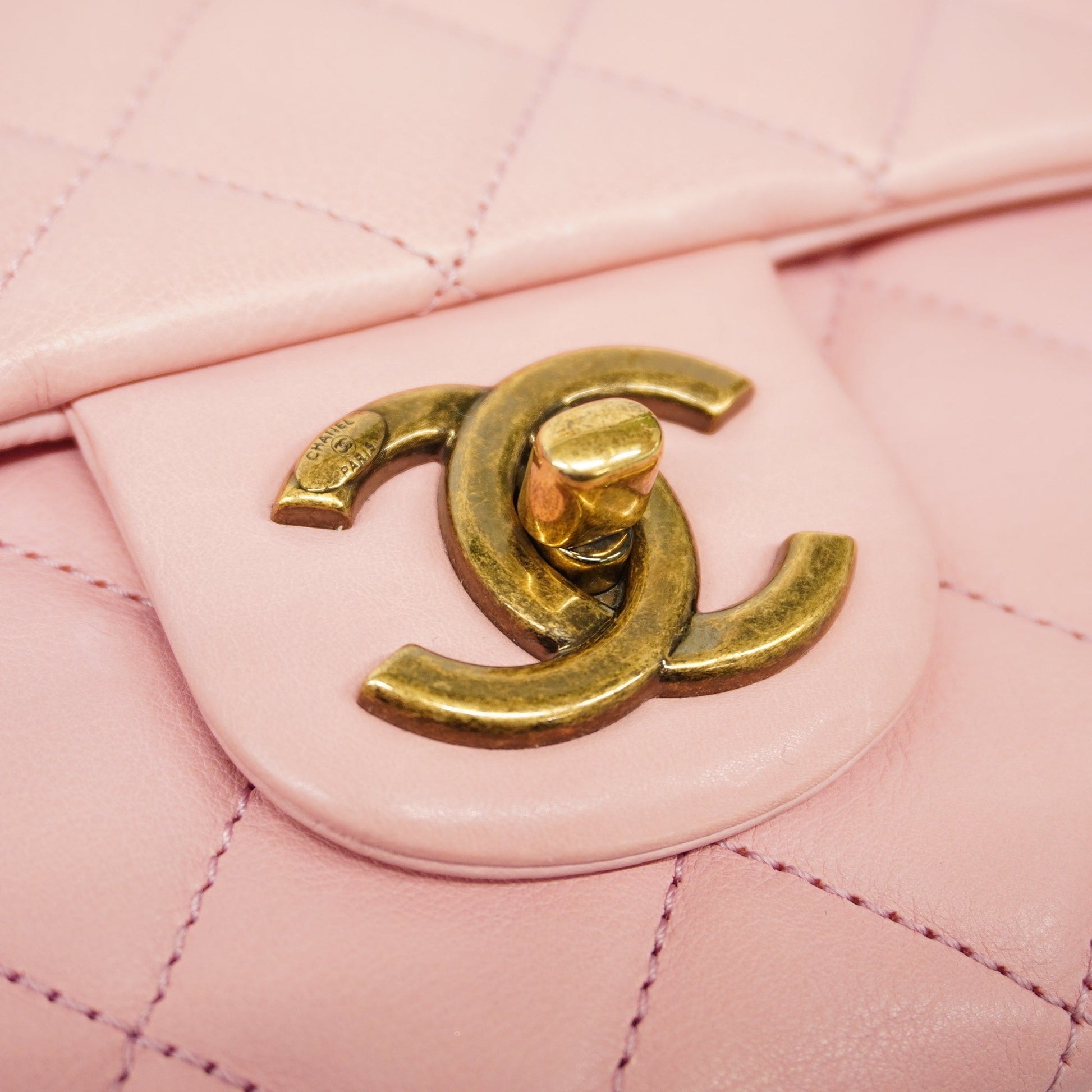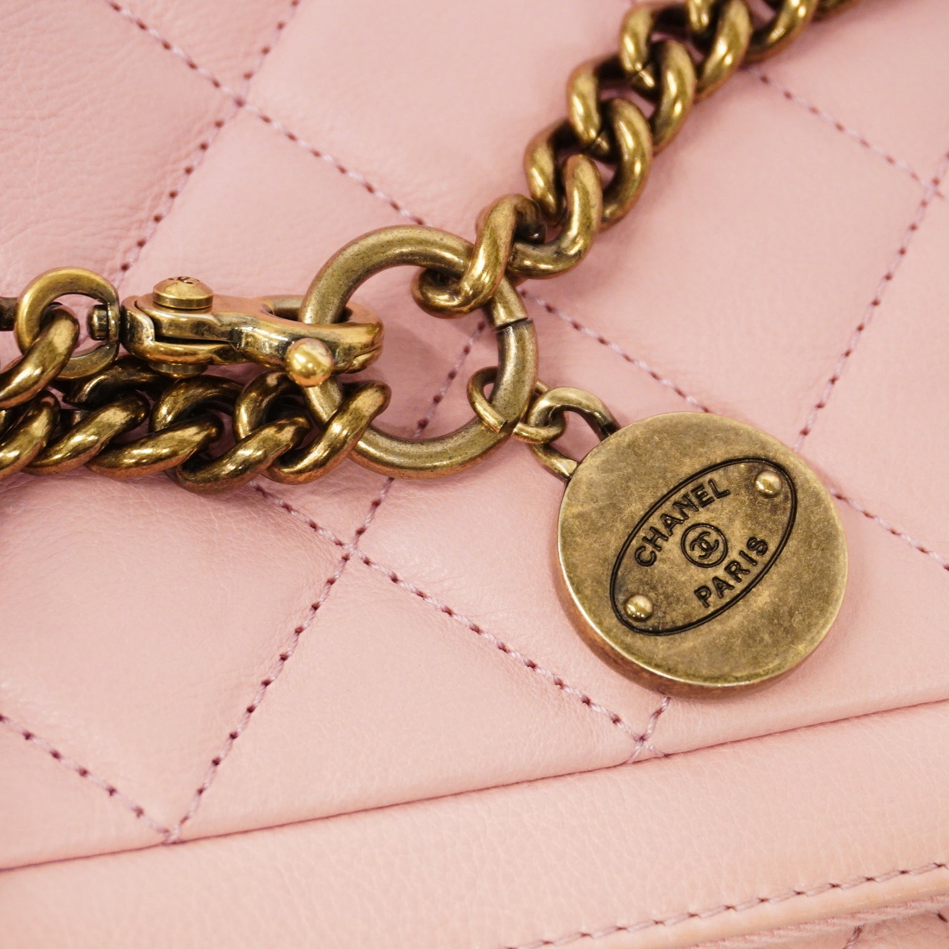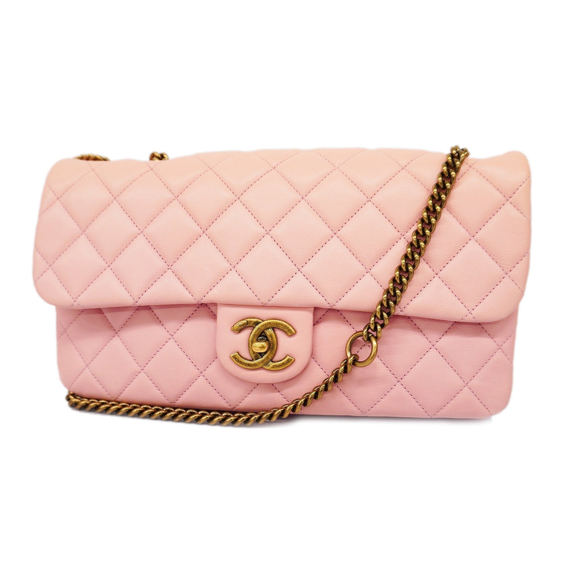 ChanelAuth Matelasse W Flap W Chain Women's Leather Shoulder Bag Pink