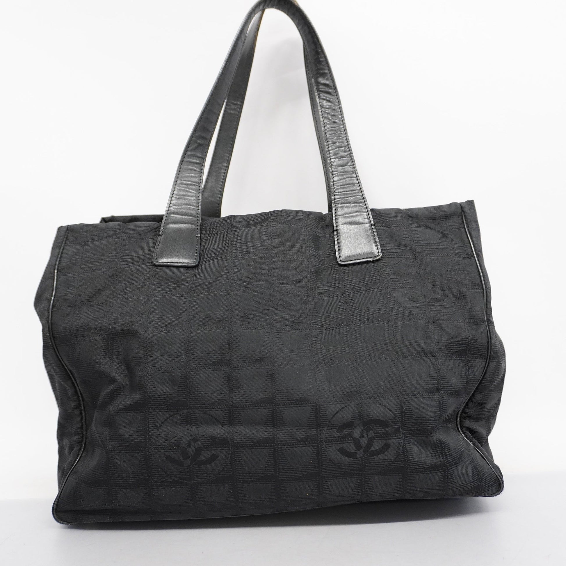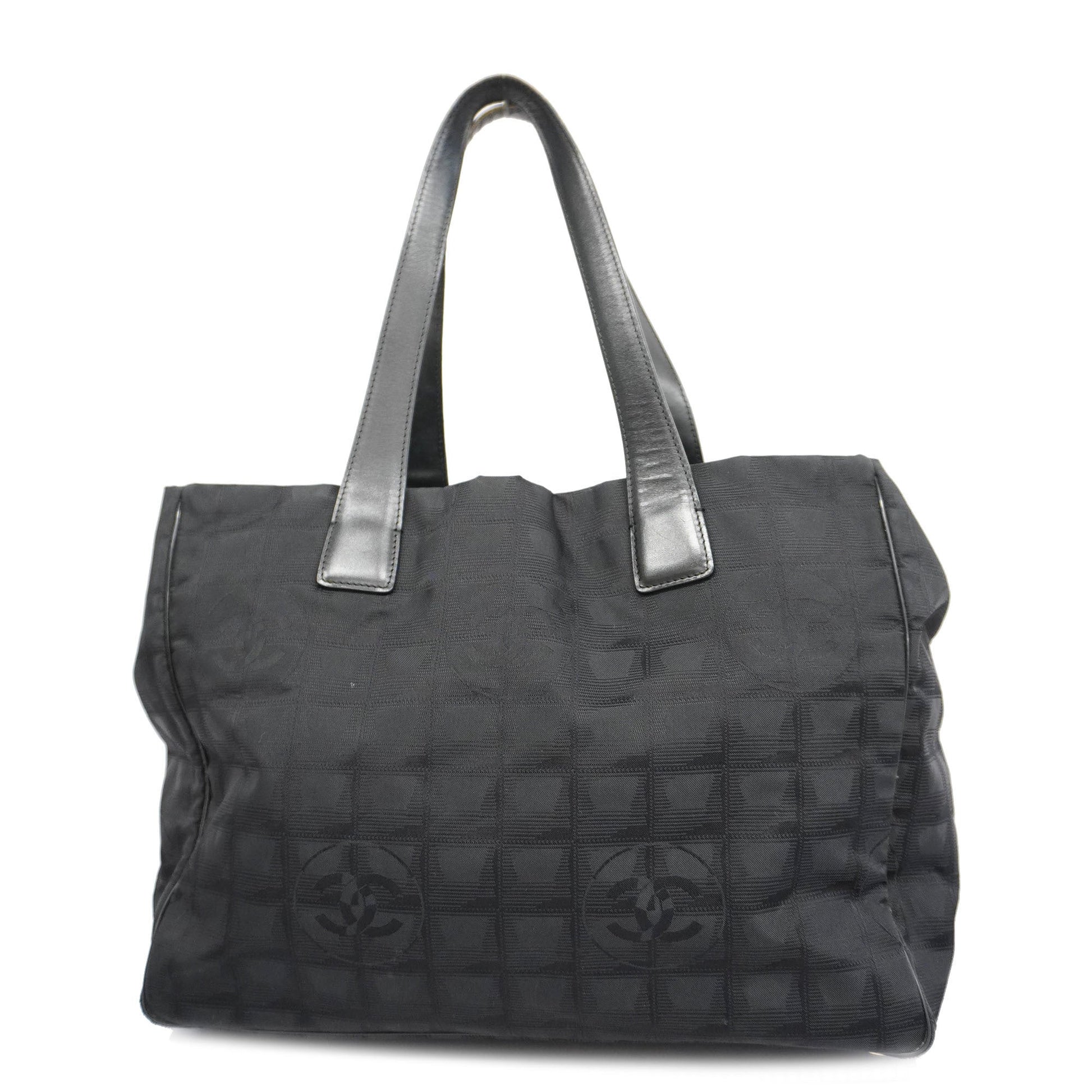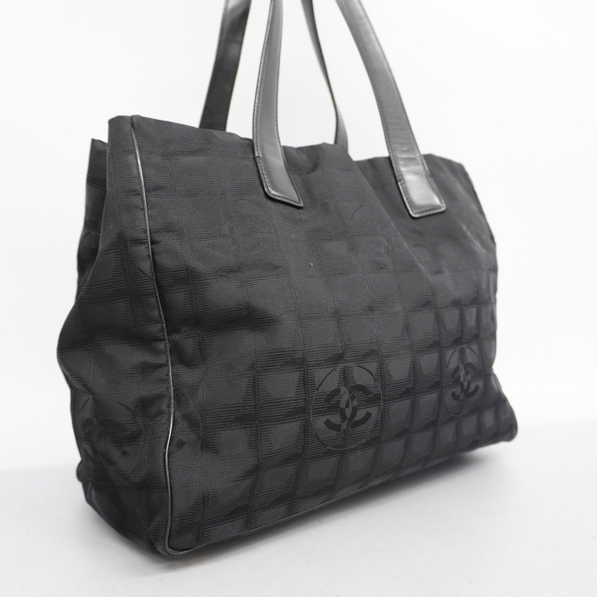 Auth Chanel New Travel Line Tote Bag Women's Nylon Canvas Tote Bag Black