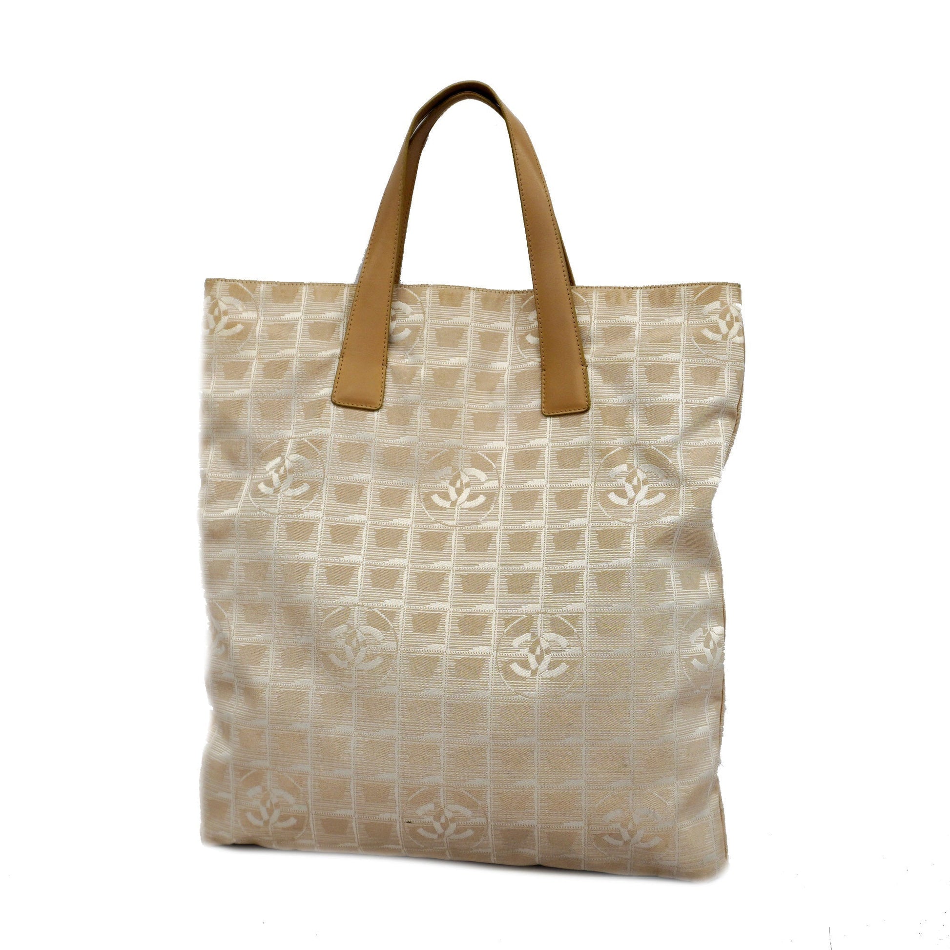 ChanelAuth New Travel Line Women's Leather,Nylon Tote Bag Beige