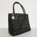 Auth Chanel Reprint Tote Women's Caviar Leather Tote Bag Black