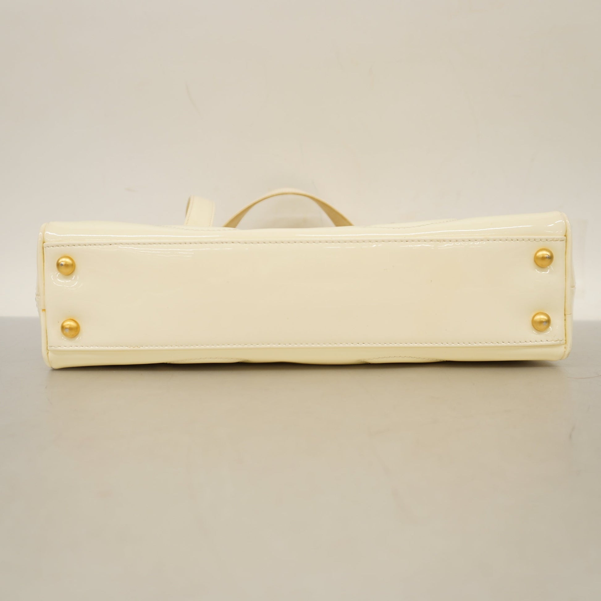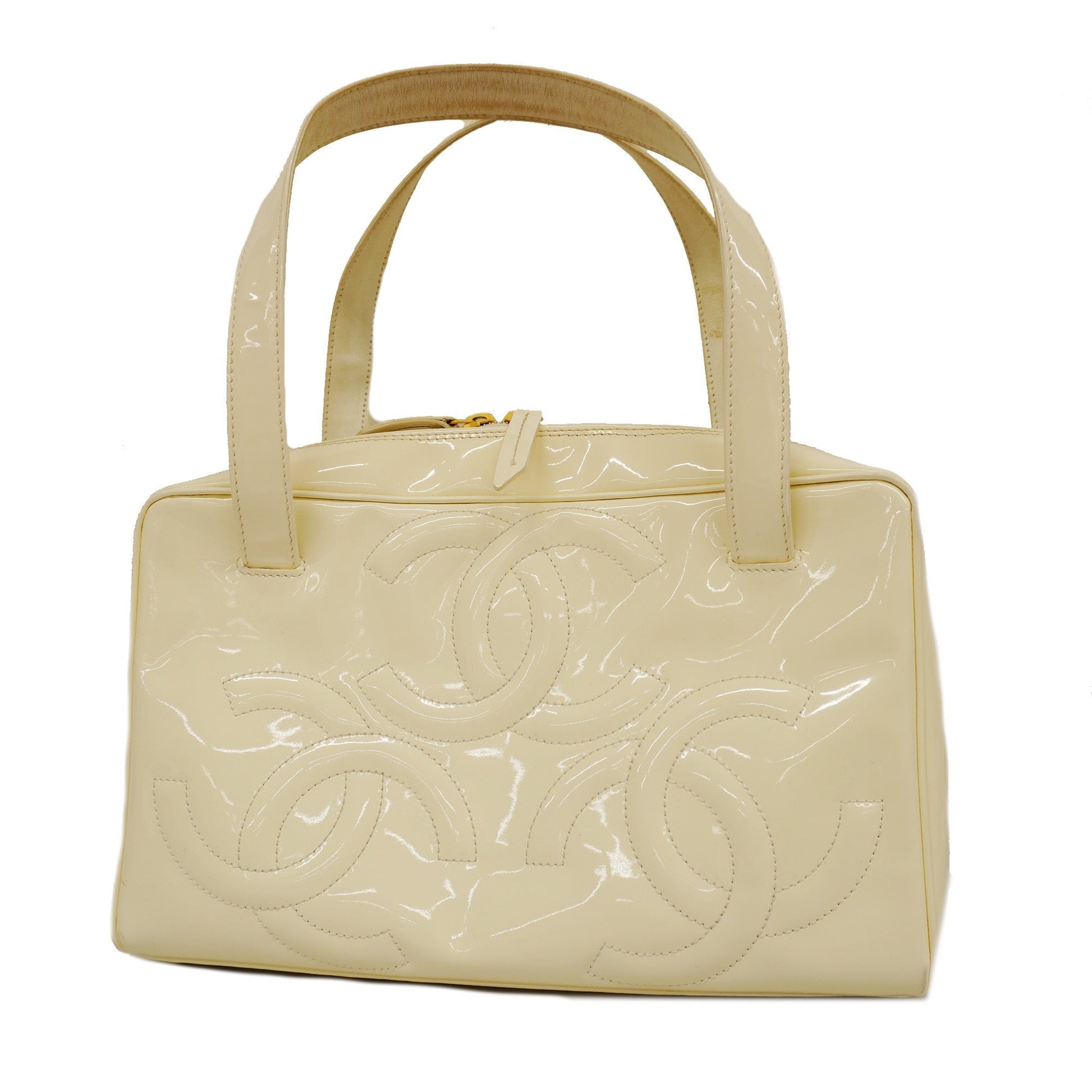 Auth Chanel Triple Coco Women's Patent Leather HandBag Ivory