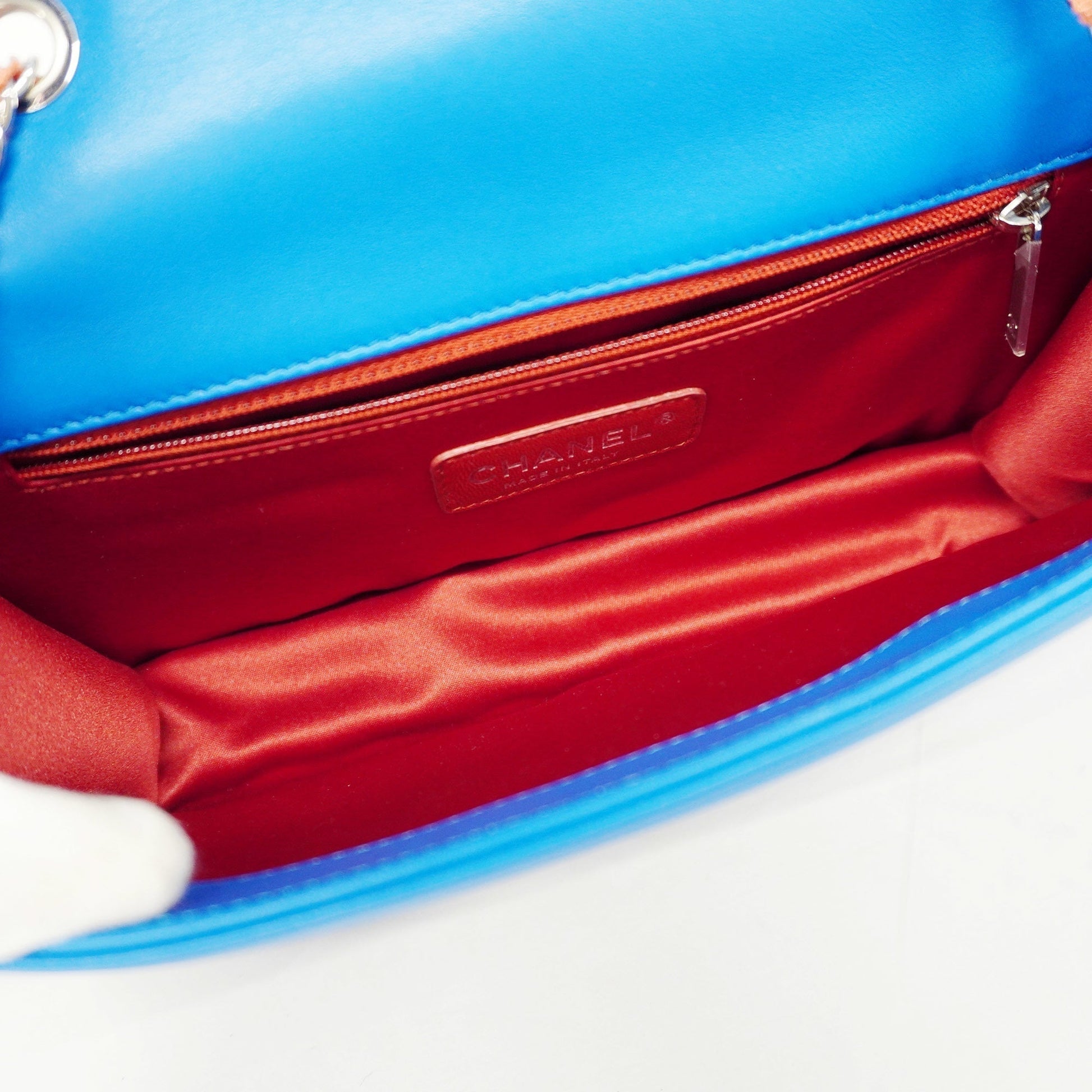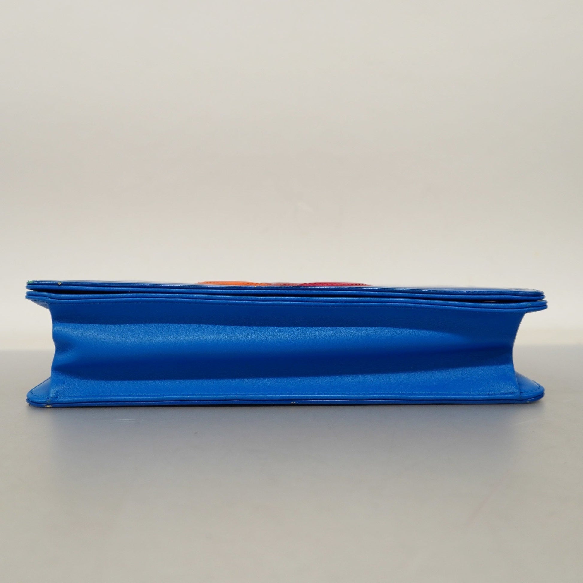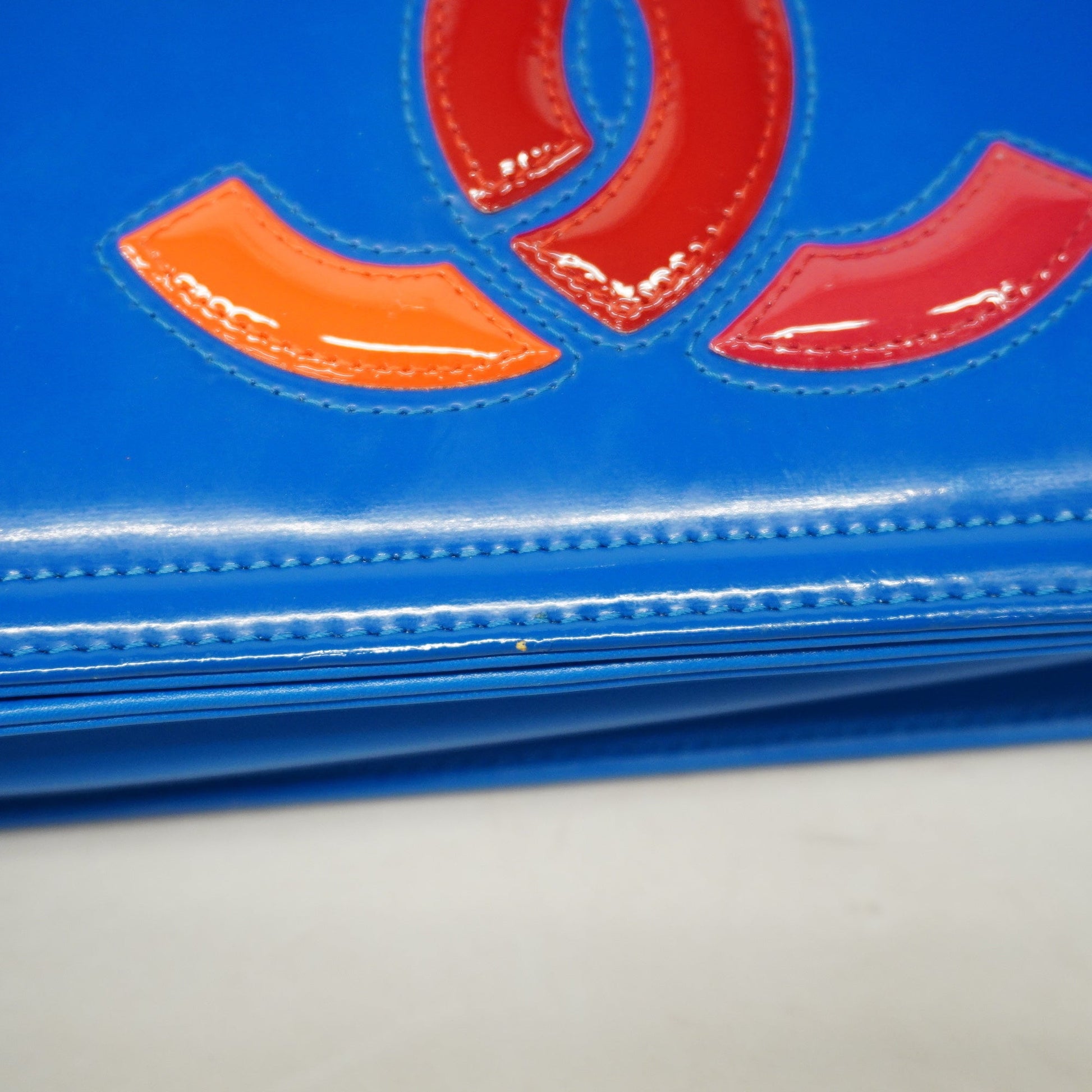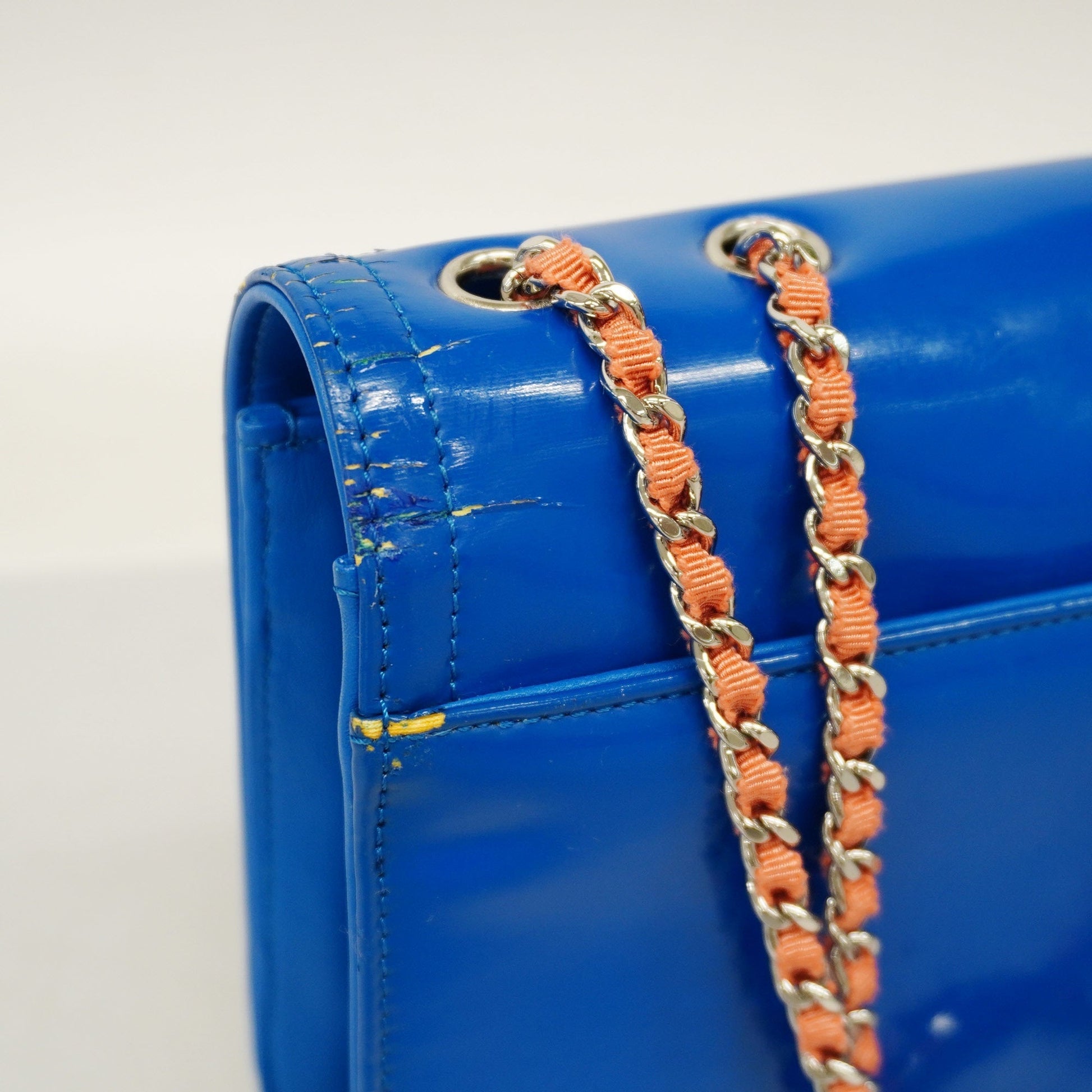 ChanelAuth W Chain Women's Patent Leather Shoulder Bag Blue