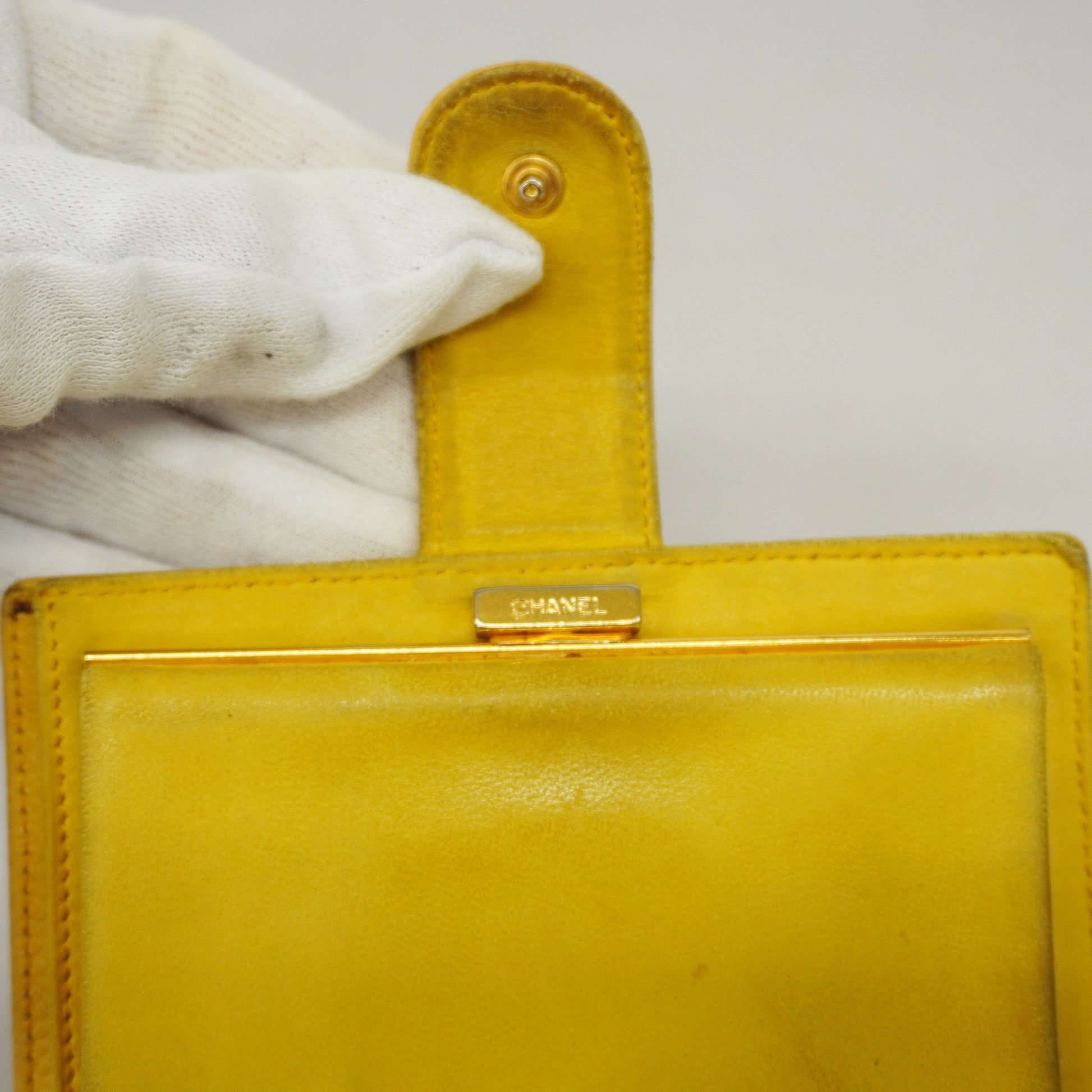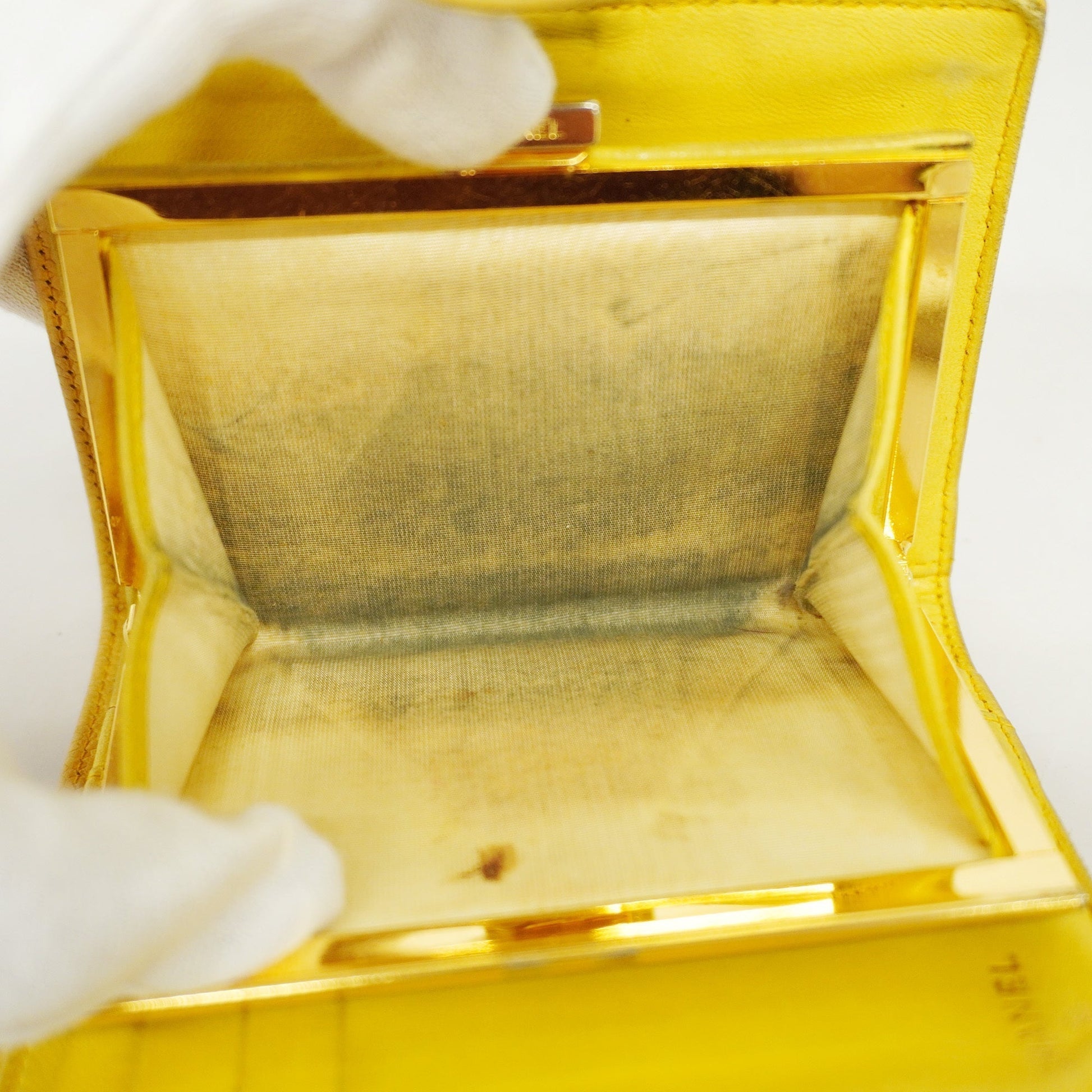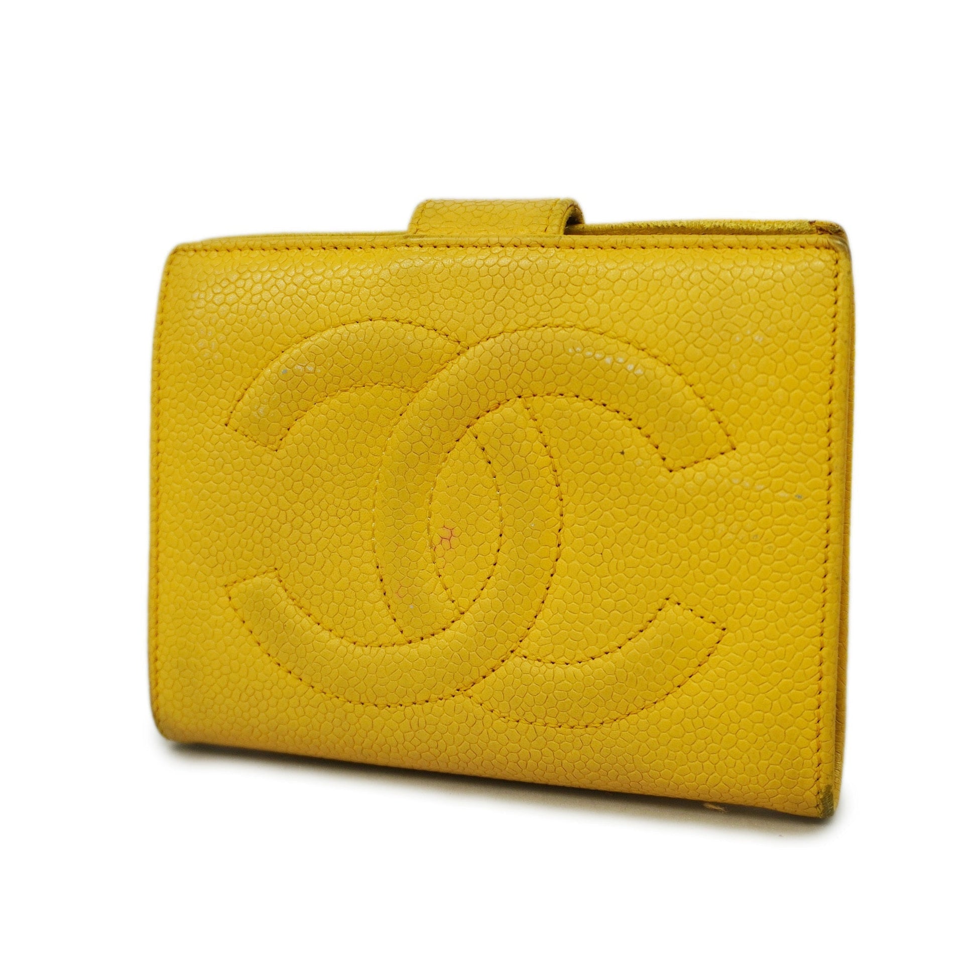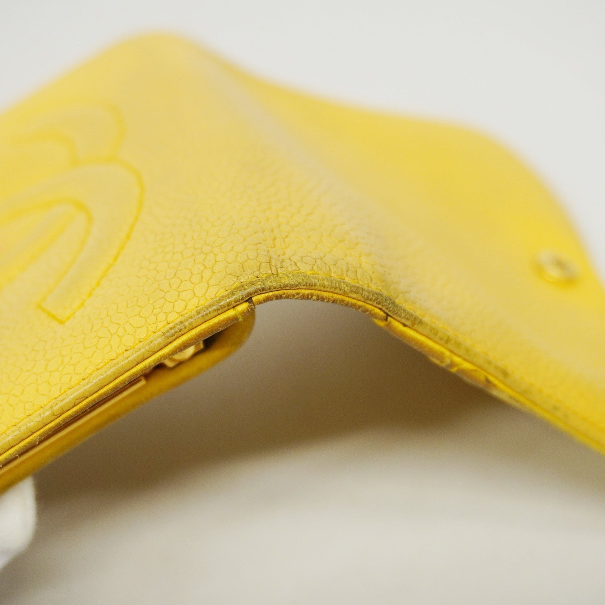 Auth Chanel Wallet Gold Hardware Women's Caviar Leather Yellow