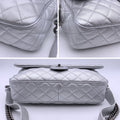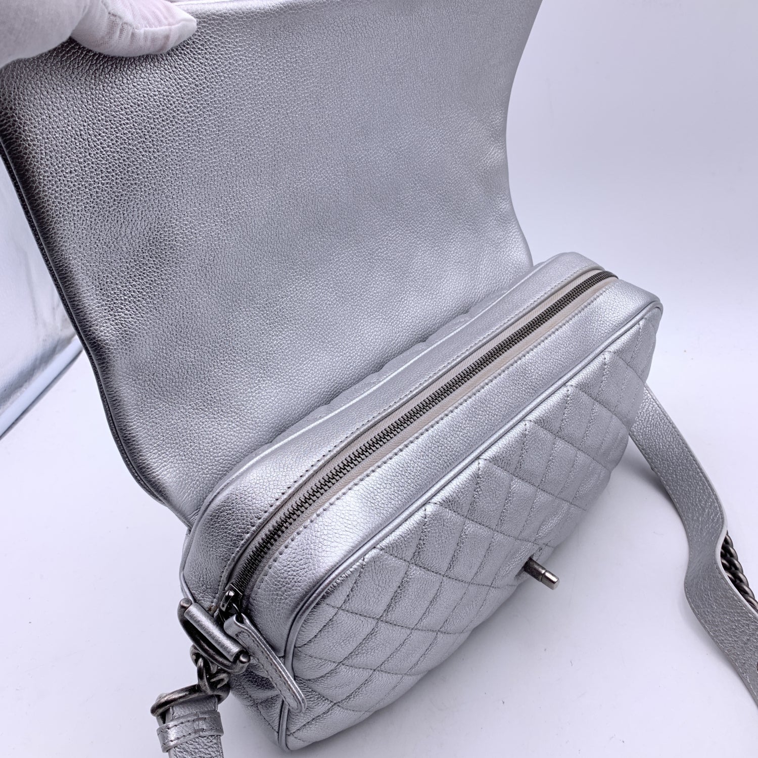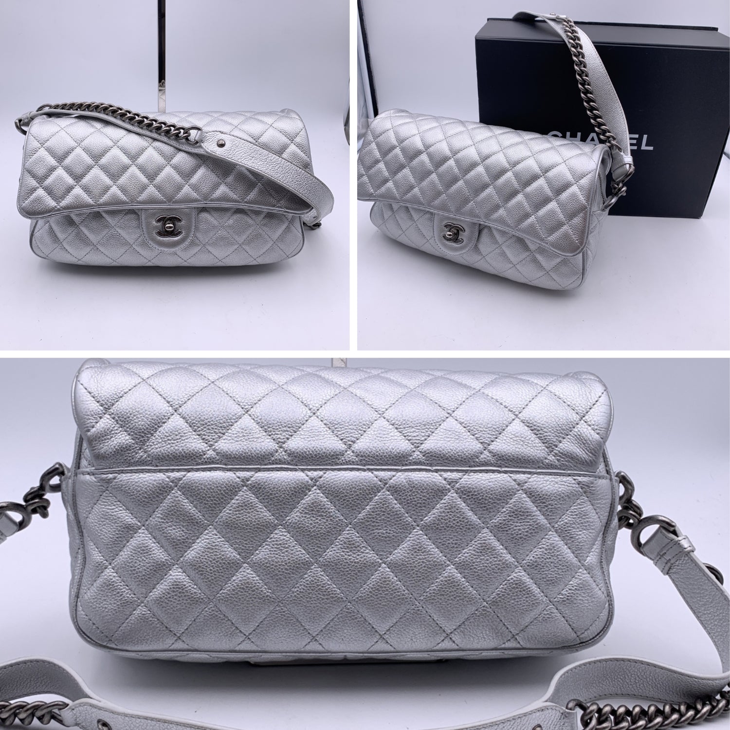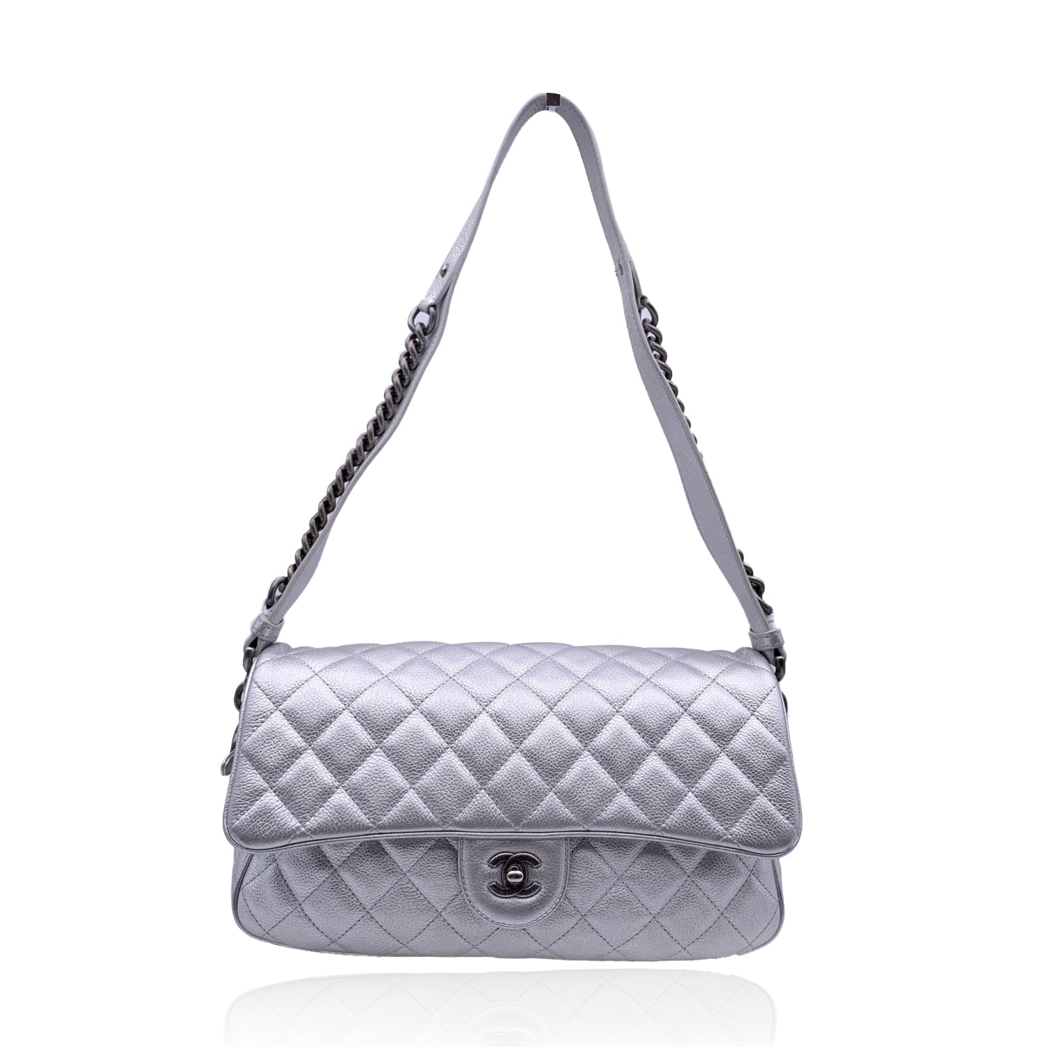 Chanel Limited Edition 'Easy Flap' Shoulder Bag From The 2016 'Airline' Collection In Silver Metal Quilted Leather. Silver Metal Hardware. Flap With Cc Logo Turn Lock Closure With Upper Zipper Closure Under The Flap. Grey Fabric Lining With 1 Side Zip Pocket And 2 Side Open Pockets. Silver Metal Chain Strap With Interwoven Tweed Fabric. 'Chanel - Made In Italy' Tag Inside. ity Hologram Tag Inside.