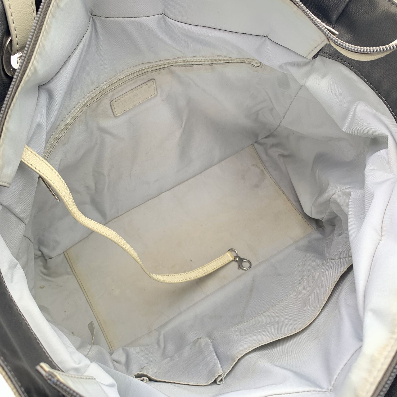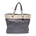 Beautiful Chanel 'Paris-biarritz' Bag In Gray Metallic Color With White Trim. The Bag Is Made Of Canvas With Quilted Stitchings. Silver Metal Hardware.Upper Zipper Closure. On The Inside The Bag Has a Light Gray Canvas Lining. One Zip Pocket, 2 Side Open Pockets, And a Keychain Inside. 'Chanel - Made In Italy' Tag Inside. ity Hologram Tag Inside