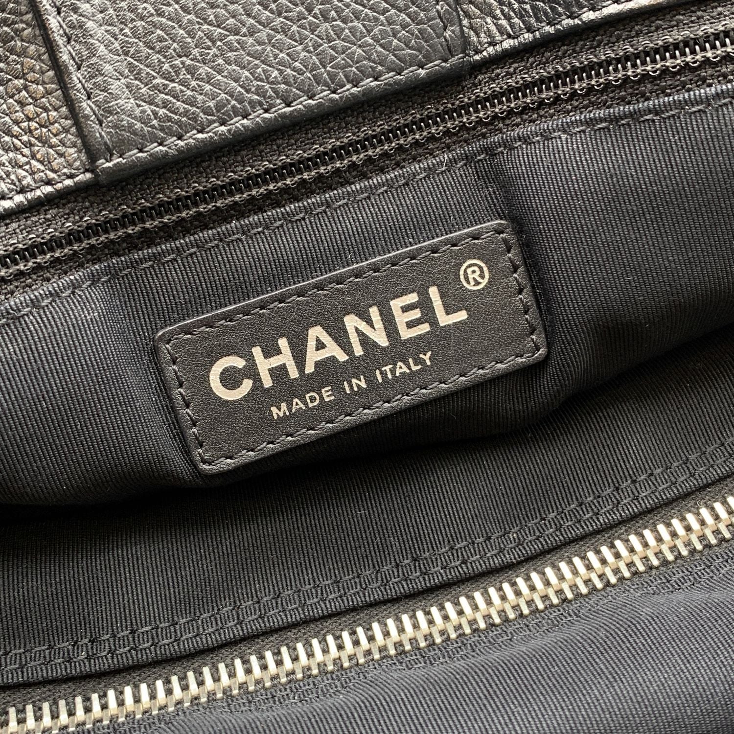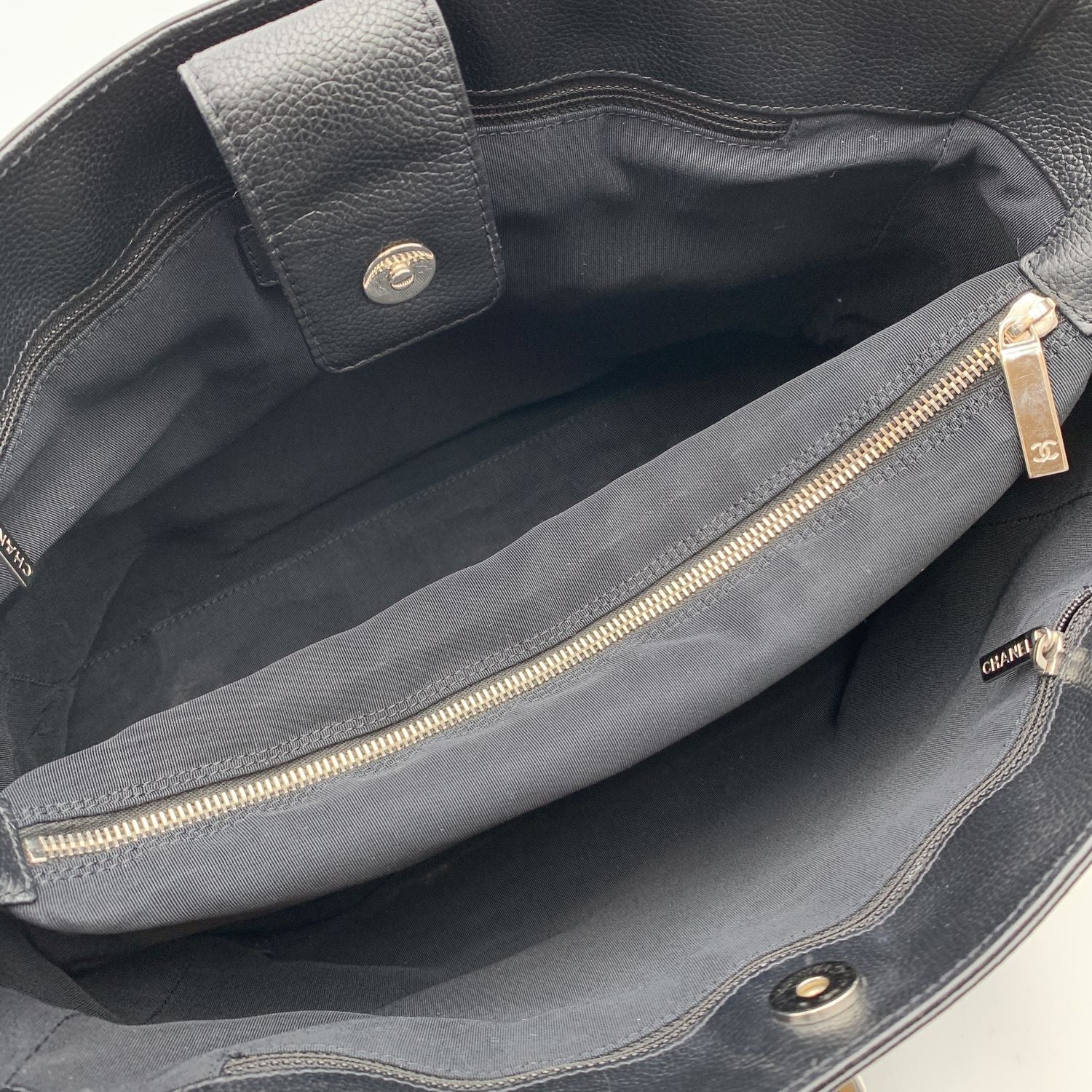 Stunning Chanel 'Executive' Tote Bag In Black Pebbled Leather. Period/era: 2010/2011. Silver Metal Cc - Chanel Logo On The Front. Double Top Handles And Removable Shoulder Strap. Double Magnetic Button Closure On Top. Front And Rear Pocket. Black Grosgrain Lining. 2 Side Zip Pockets Inside And a Fabric Removable Pouch Inside. 'Chanel - Made In Italy' Tag Inside. ity Hologram Tag Inside.