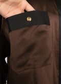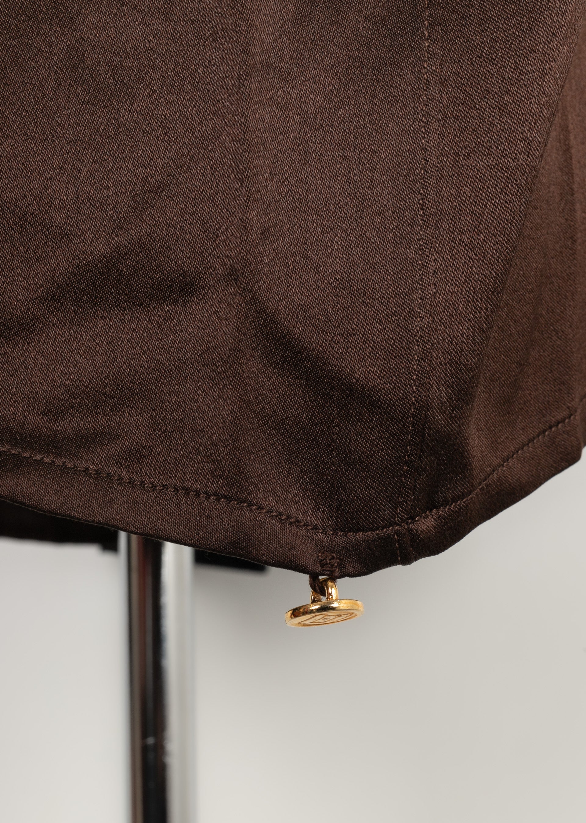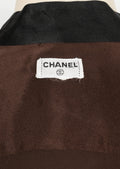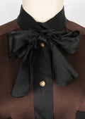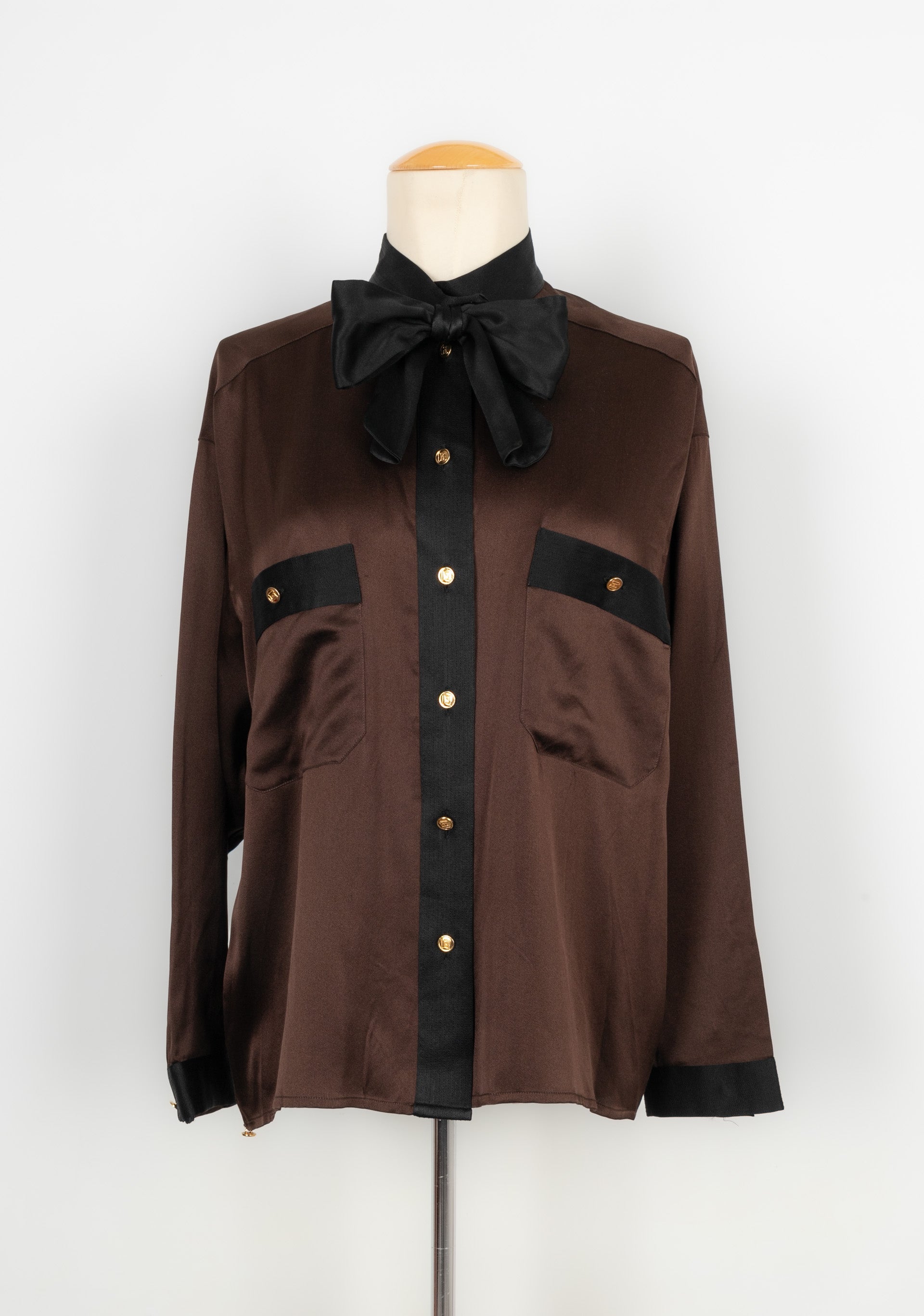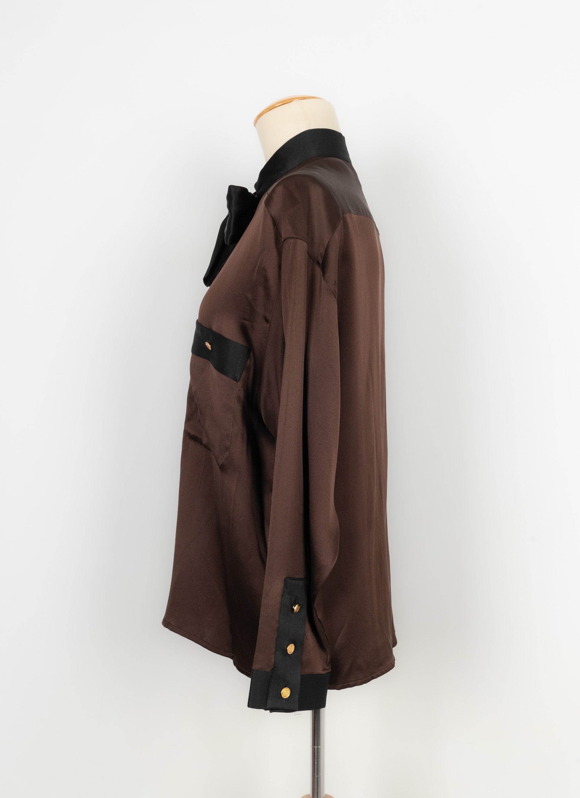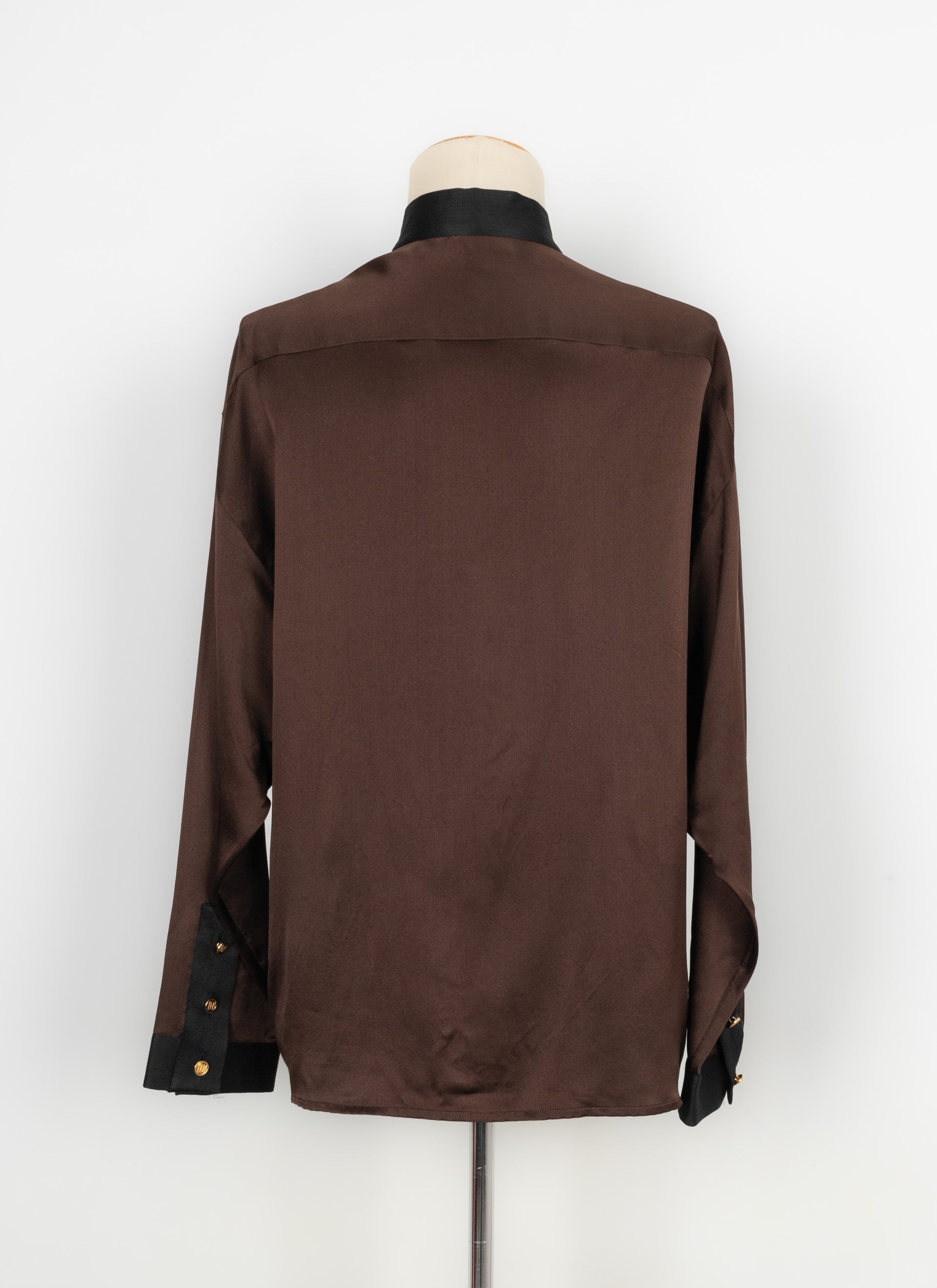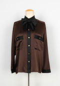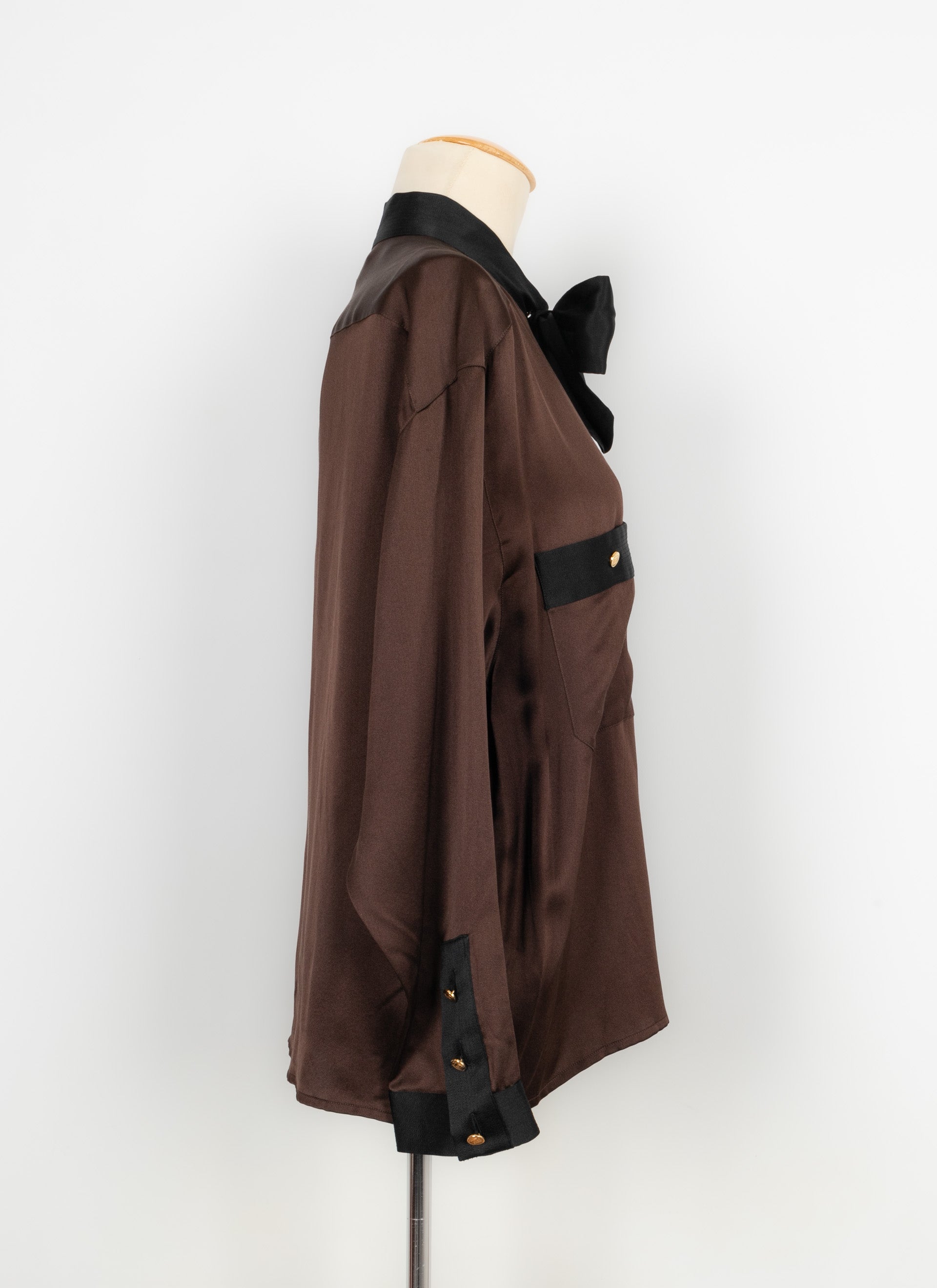 CHANEL - Chemisier en soie marron et noire datant des années 1990. Etiquette de taille et de composition absente, il convient à un 44FR.