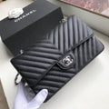 CHL Chevron Classic Handbag Silver Hardware Black For WomTLM, WomTLM’s Bags, Shoulder And Crossbody Bags 10.2in/26cm